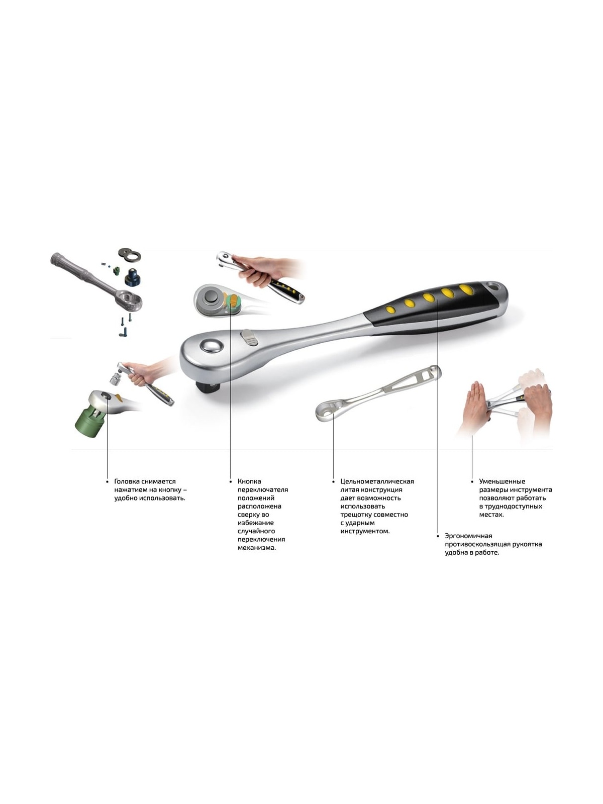 Посадочный размер трещотки - 1/4; 1/2 дюйма