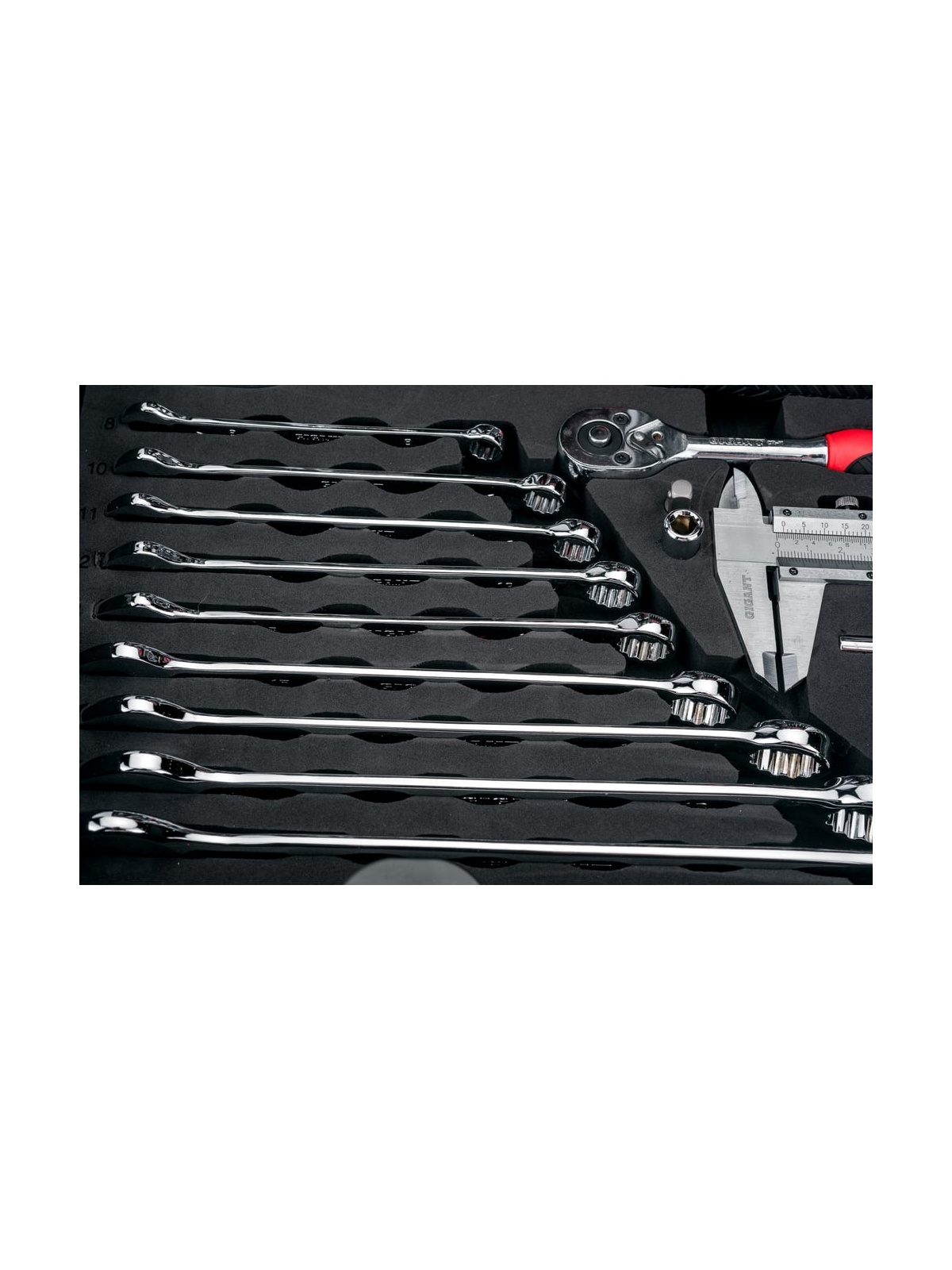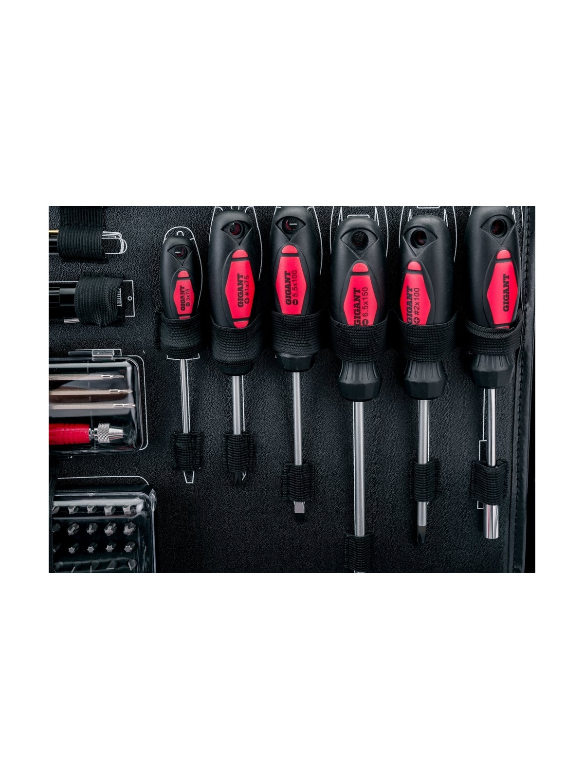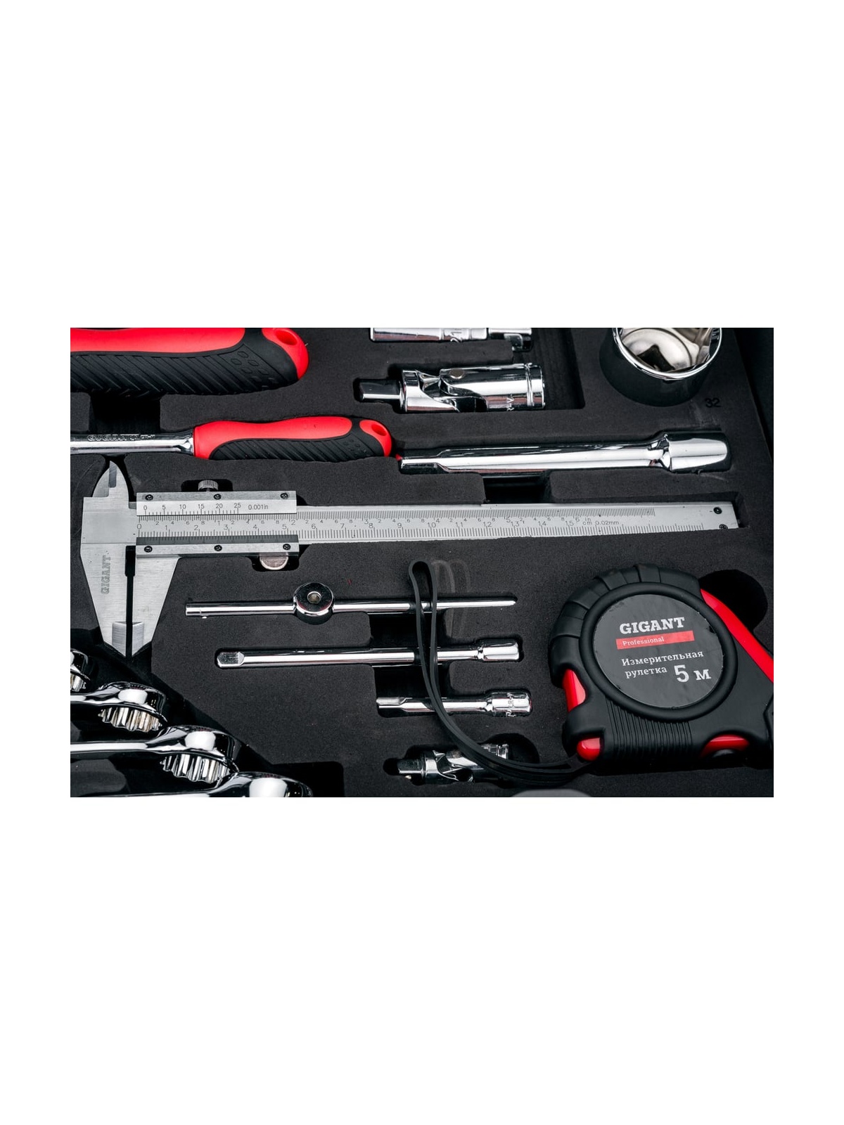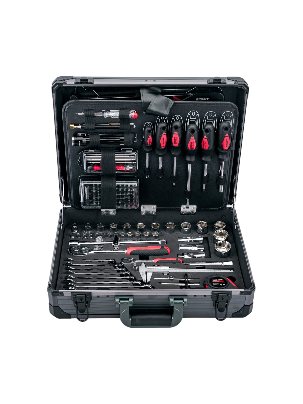 Набор инструментов в кейсе 1/2" и 1/4" 151 предмет Gigant Professional GPS 151 является прочным, многофункциональным и долговечным комплектом, который подойдет для проведения множества ремонтных и обслуживающих работ. Набор поставляется в компактном и стильном кейсе для удобного хранения и транспортировки. Благодаря разделению на несколько подложек можно без труда получить доступ к любому из отделений кейса. Инструменты выполнены из высокопрочной хромованадиевой стали с сатинированием. Продукция представлена профессиональными и бытовыми инструментами, имеет доступную цену и высокое качество. При изготовлении товаров Gigant используется современное оборудование и прочные материалы. Производство осуществляется на современных предприятиях России и Азии. Тестирование товаров осуществляется в два этапа, каждая партия инструментов проходит проверку на соответствие стандартам и заявленным техническим характеристикам. Это является залогом качества и надежности готового продукта. Продукция представлена широкой линейкой инструментов. У нас можно приобрести ручной инструмент, строительный, садовый, сантехнический, климатический, крепежный, автогаражный, а также станки, расходные материалы и многое другое.