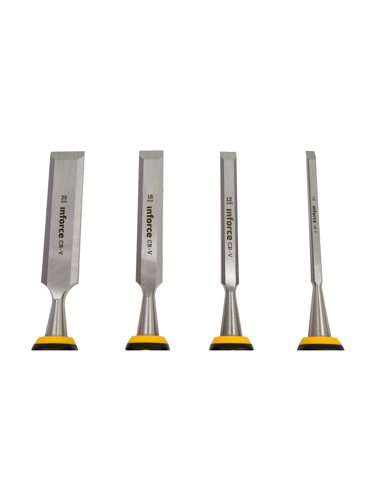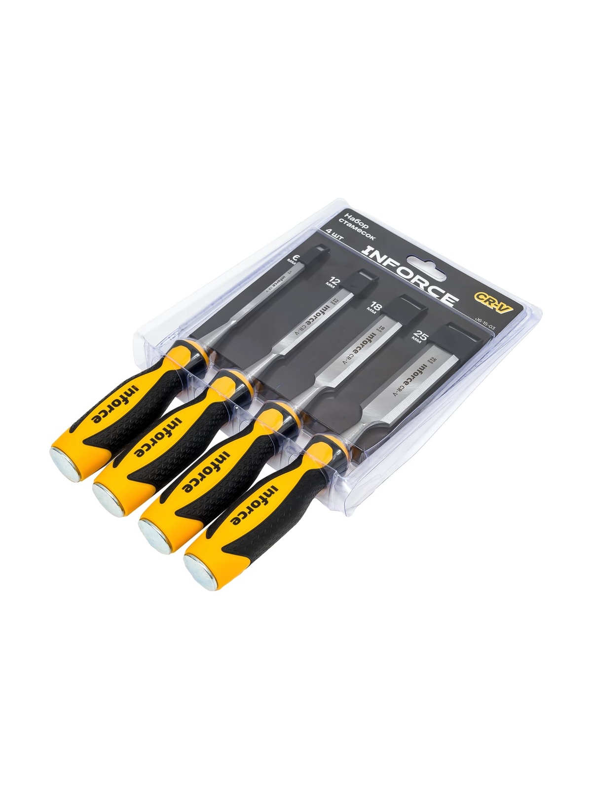 Набор из стамесок Inforce 4 шт., 6, 12, 18, 25 мм 06-15-03 предназначен для обработки древесины. Инструменты выполнены из высококачественной стали, что обеспечивает высокий запас прочности. Трехкомпонентные эргономичные рукоятки с резиновыми вставками обеспечивают надежный захват.