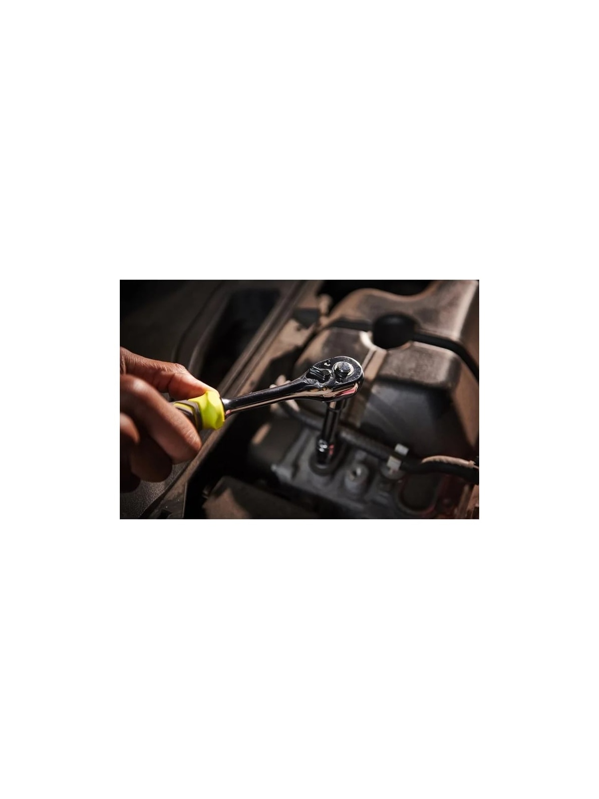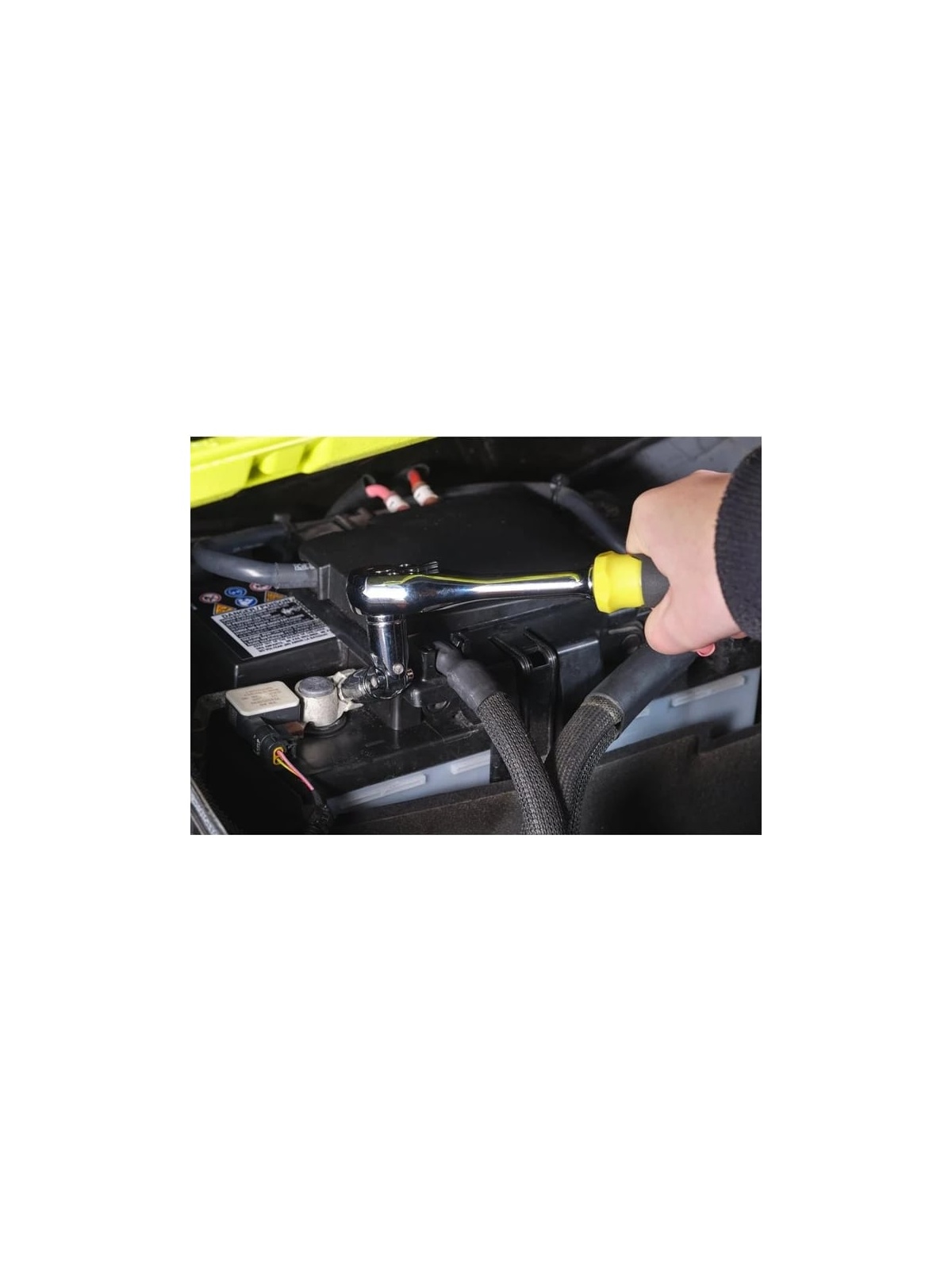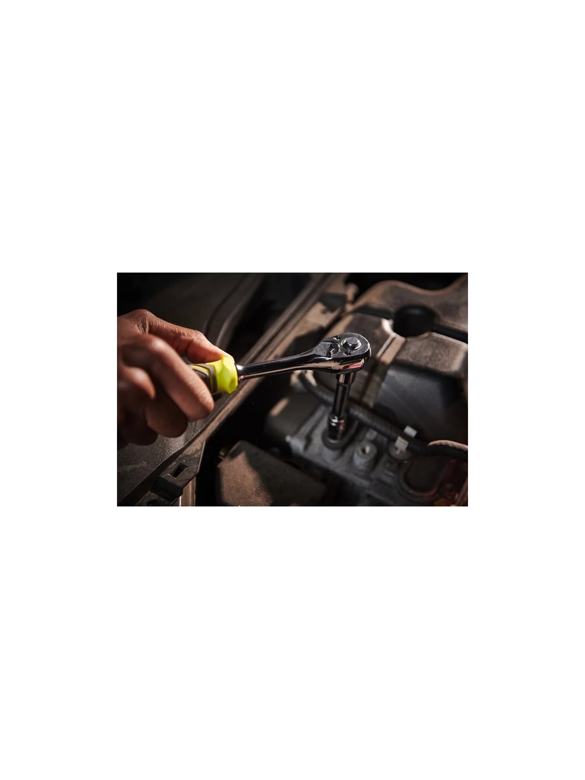 Отвертка со сменными битами предназначена для работы с крепежом различного размера в ограниченном пространстве. Трещотка с обрезиненной рукояткой обеспечивает максимальный комфорт и надежность. Конструкция храпового механизма с 90 зубьями срабатывает при угле поворота 4 градуса для быстрого и плавного применения в ограниченном пространстве. Набор комплектуется шестигранными торцевыми головками для передачи максимального крутящего момента. Полированное хромированное покрытие обеспечивает устойчивость к коррозии и простоту очистки. Большая штампованная маркировка в миллиметрах для удобства идентификации. Быстрая и простая замена торцевых головок.