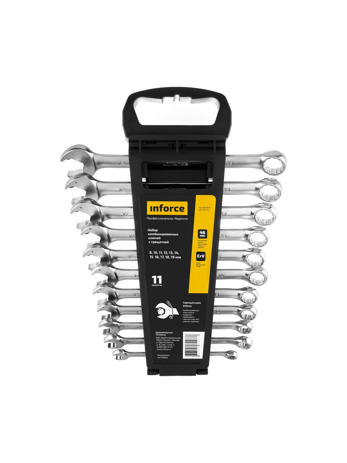 Набор комбинированных ключей 11 предметов Inforce 06-05-55 охватывает мелкие и средние размеры шестигранного крепежа. Присутствует рожковая головка, которая позволяет работать с труднодоступным крепежом. Металл закален до 46 HRC.