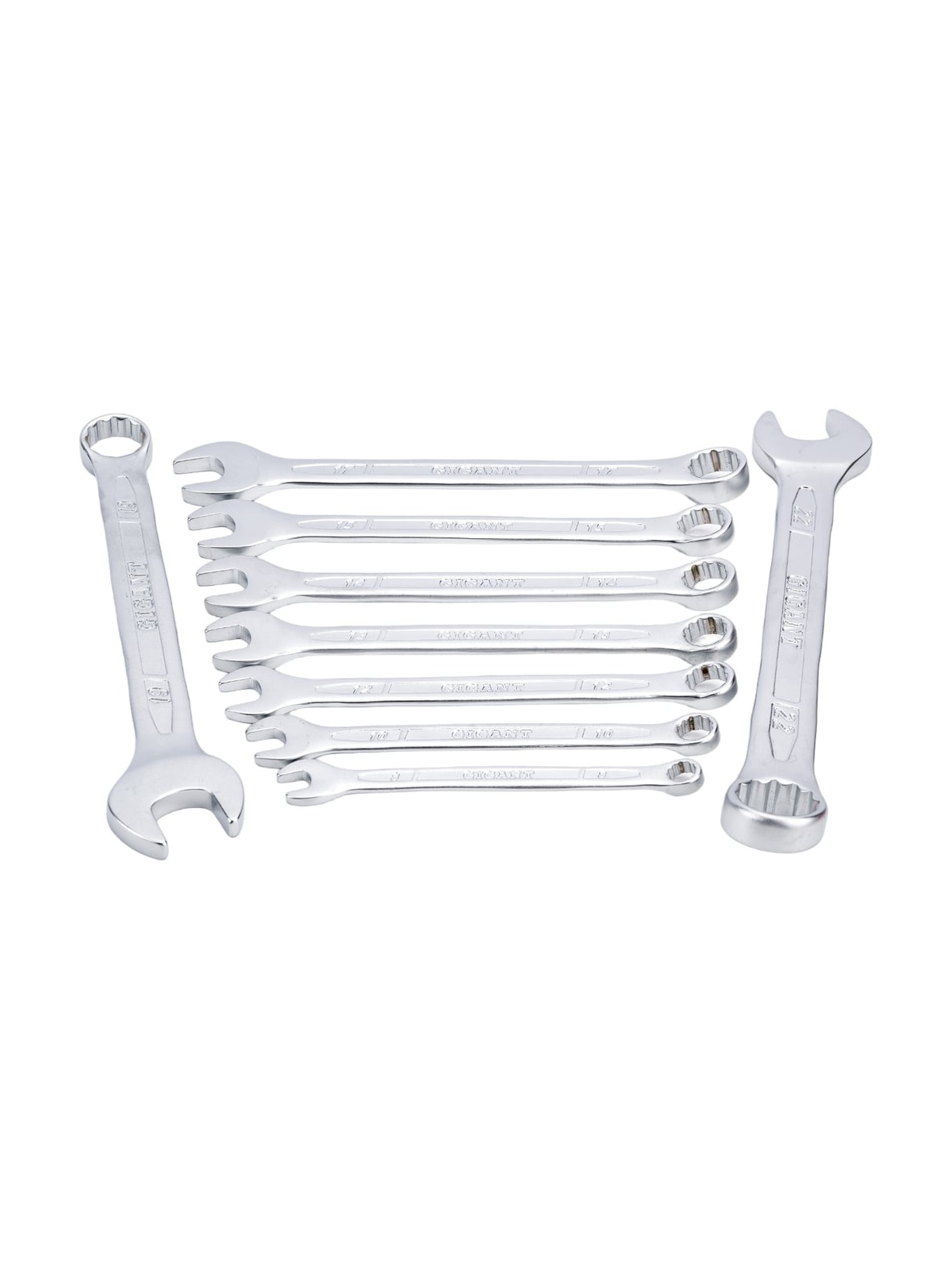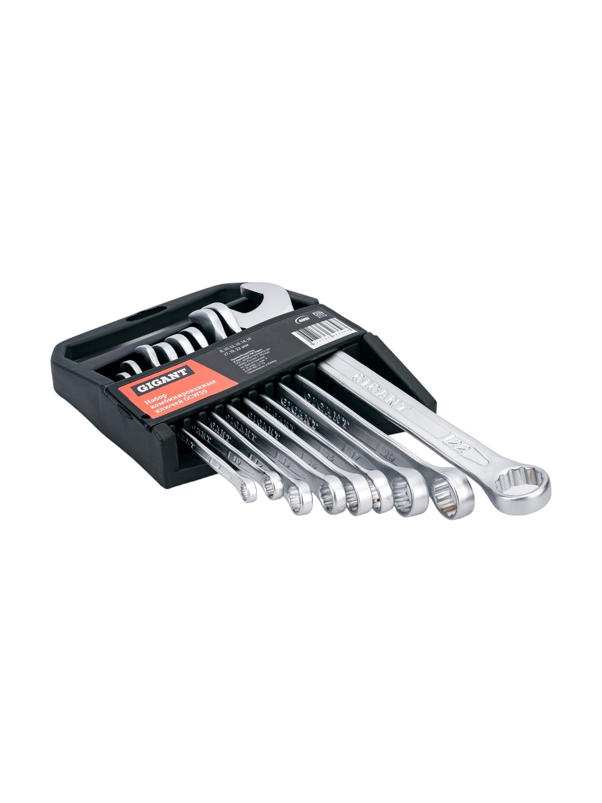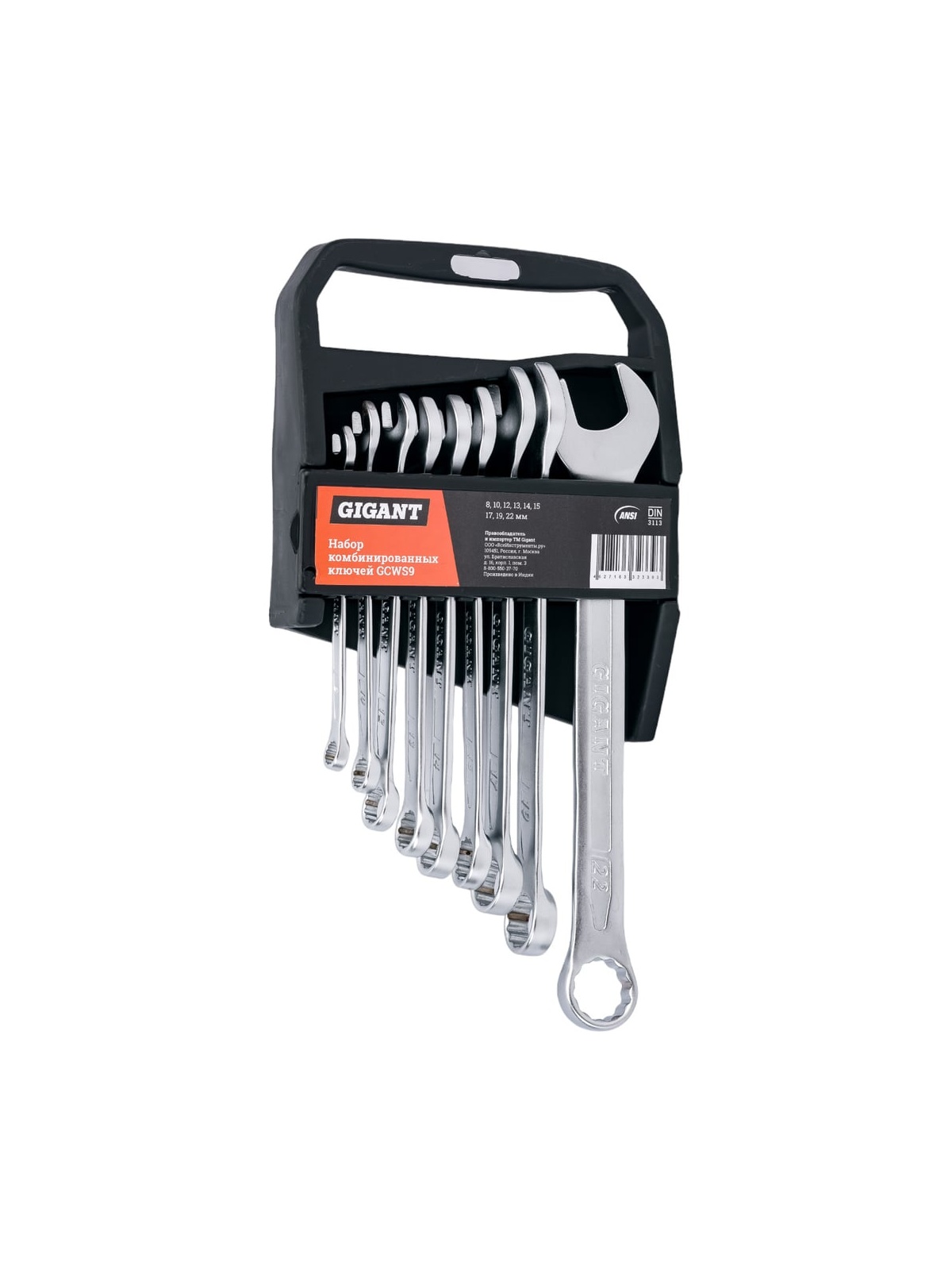 Набор комбинированных ключей 9 шт. Gigant GCWS9 представлен в оптимальной комплектации и включает в себя самые популярные размеры. Каждый элемент набора сочетает в себе два вида ключа - рожковый и накидной. Все модели изготовлены из Cr-V стали и обладают особой прочностью. Имеют высокую стойкость к износу и долгий срок службы. Хромированное покрытие надежно защищает инструмент от коррозии. Продукция представлена профессиональными и бытовыми инструментами, имеет доступную цену и высокое качество. При изготовлении товаров Gigant используется современное оборудование и прочные материалы. Производство осуществляется на современных предприятиях России и Азии. Тестирование товаров осуществляется в два этапа, каждая партия инструментов проходит проверку на соответствие стандартам и заявленным техническим характеристикам. Это является залогом качества и надежности готового продукта. Продукция представлена широкой линейкой инструментов. У нас можно приобрести ручной инструмент, строительный, садовый, сантехнический, климатический, крепежный, автогаражный, а также станки, расходные материалы и многое другое.
