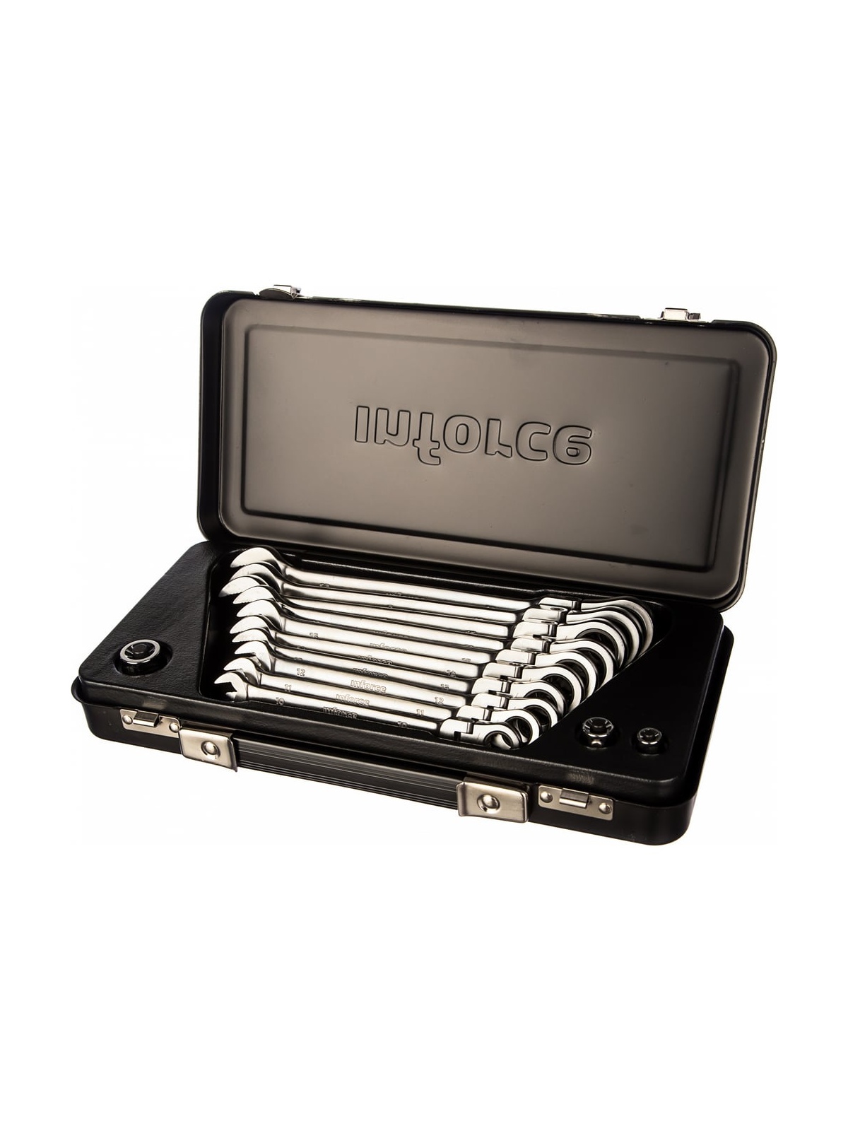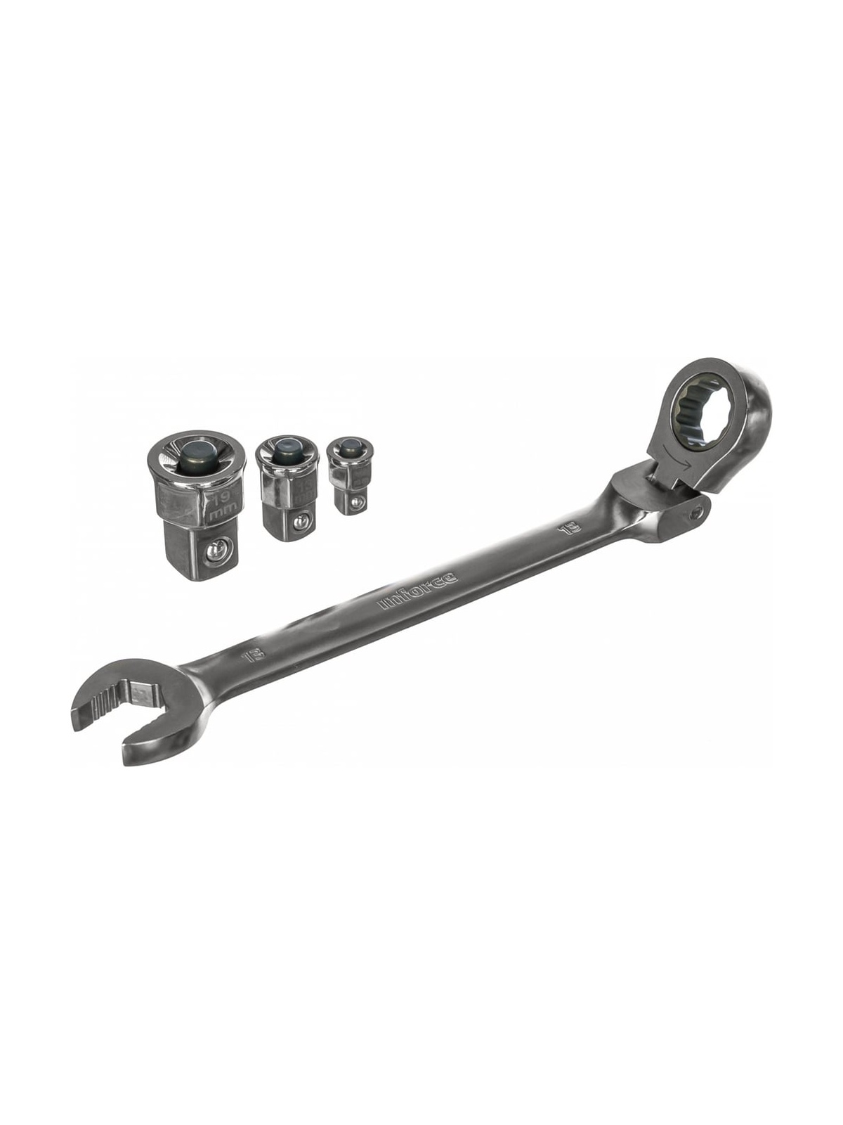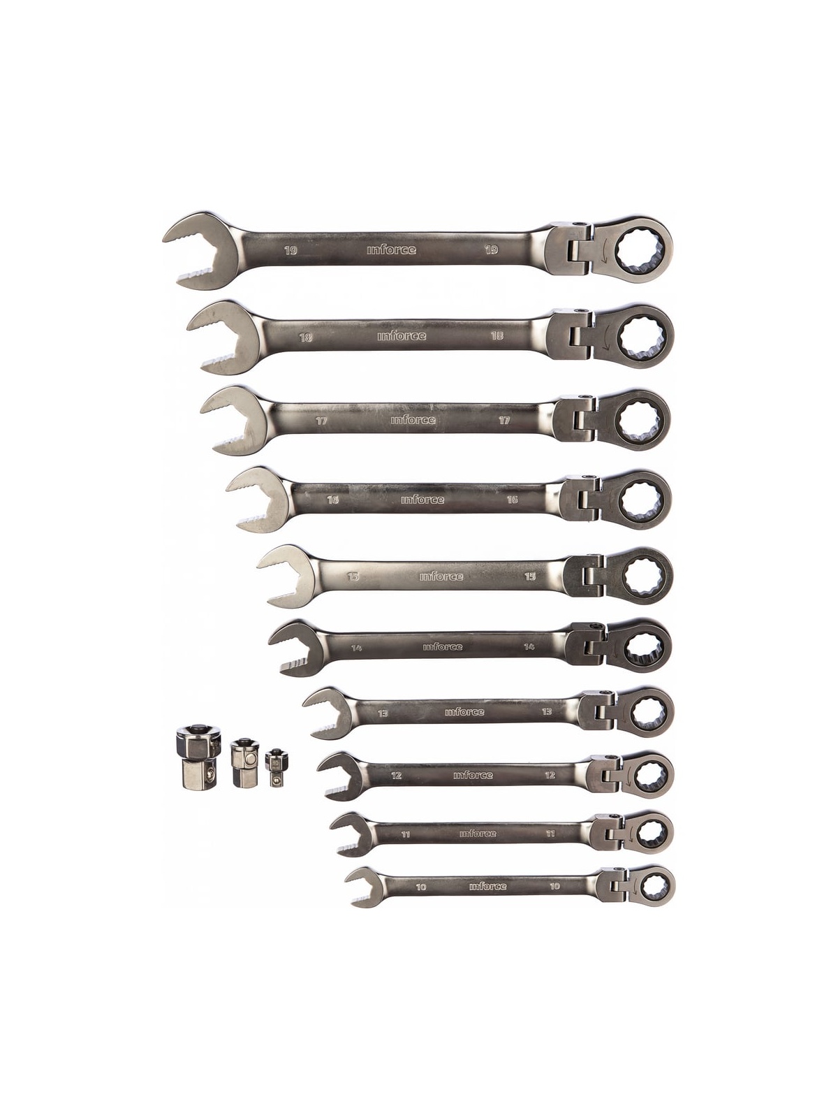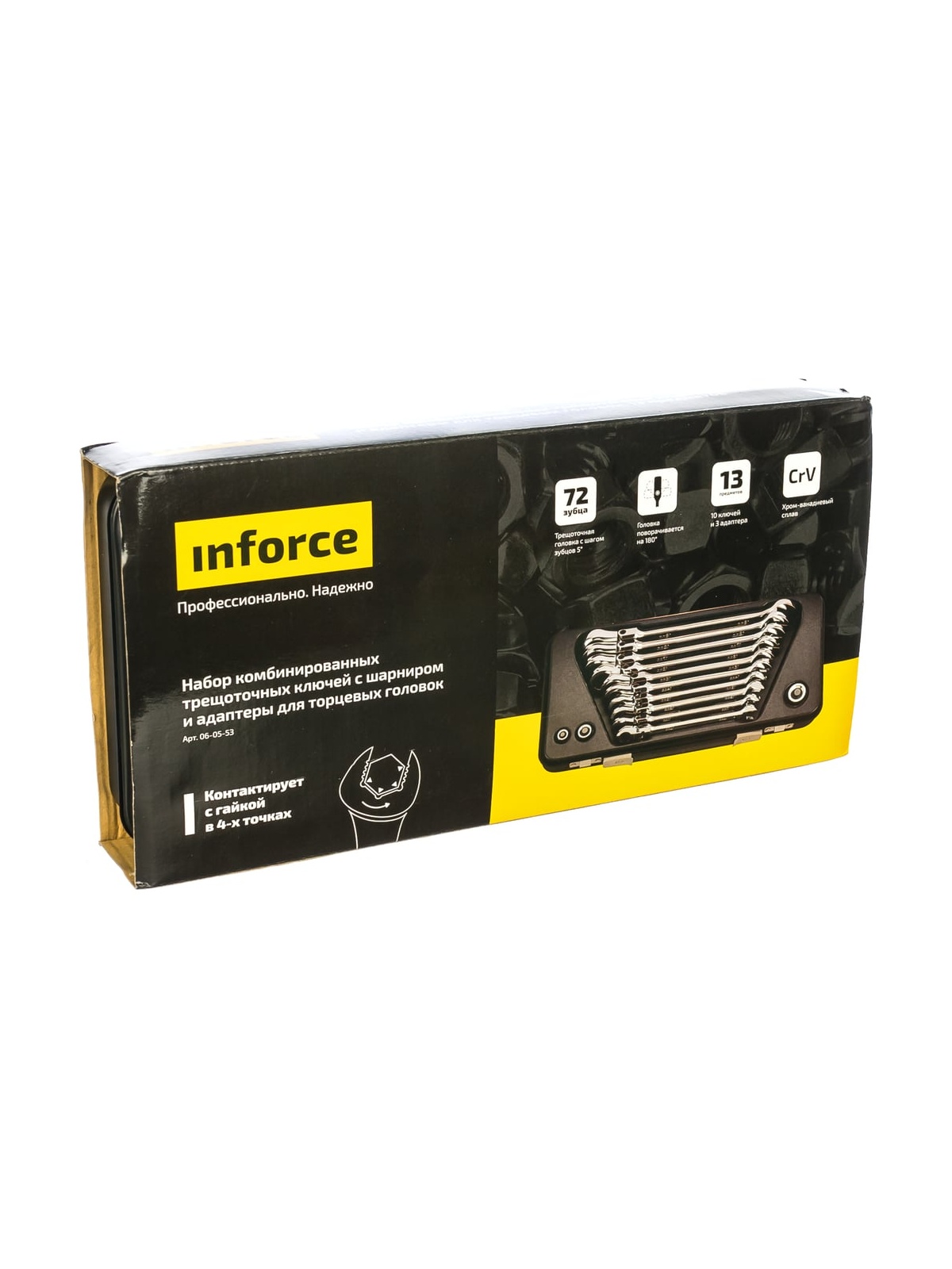 Набор комбинированных шарнирных ключей с трещоткой 13 предметов Inforce 06-05-53 позволяет эффективно работать с крепежом любой сложности. Комплект состоит из 10 ключей и трех адаптеров. Благодаря наличию шарнира можно работать с шестигранниками, которые расположены под углом или в неудобном месте. Защитное сатинирование продлевает срок службы каждого ключа. Наличие трех адаптеров расширяет возможности данного набора, позволяя работать головками с посадкой 1/4, 3/8 и 1/2.