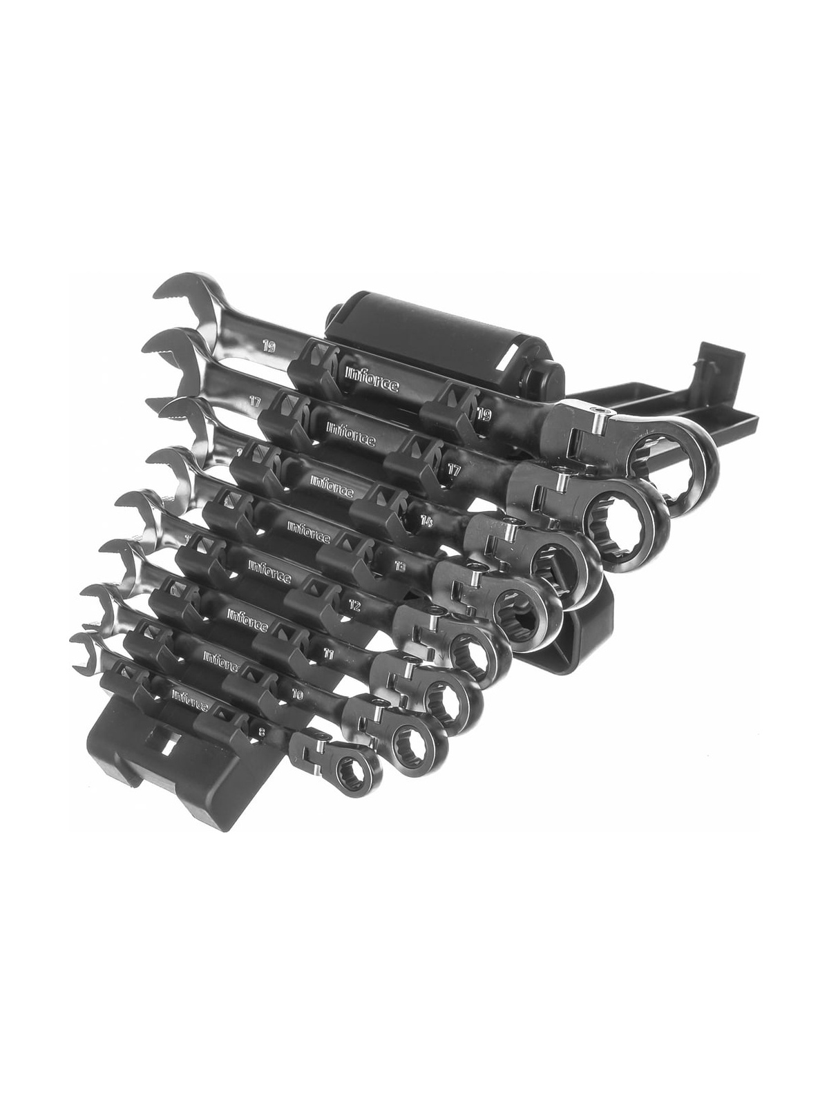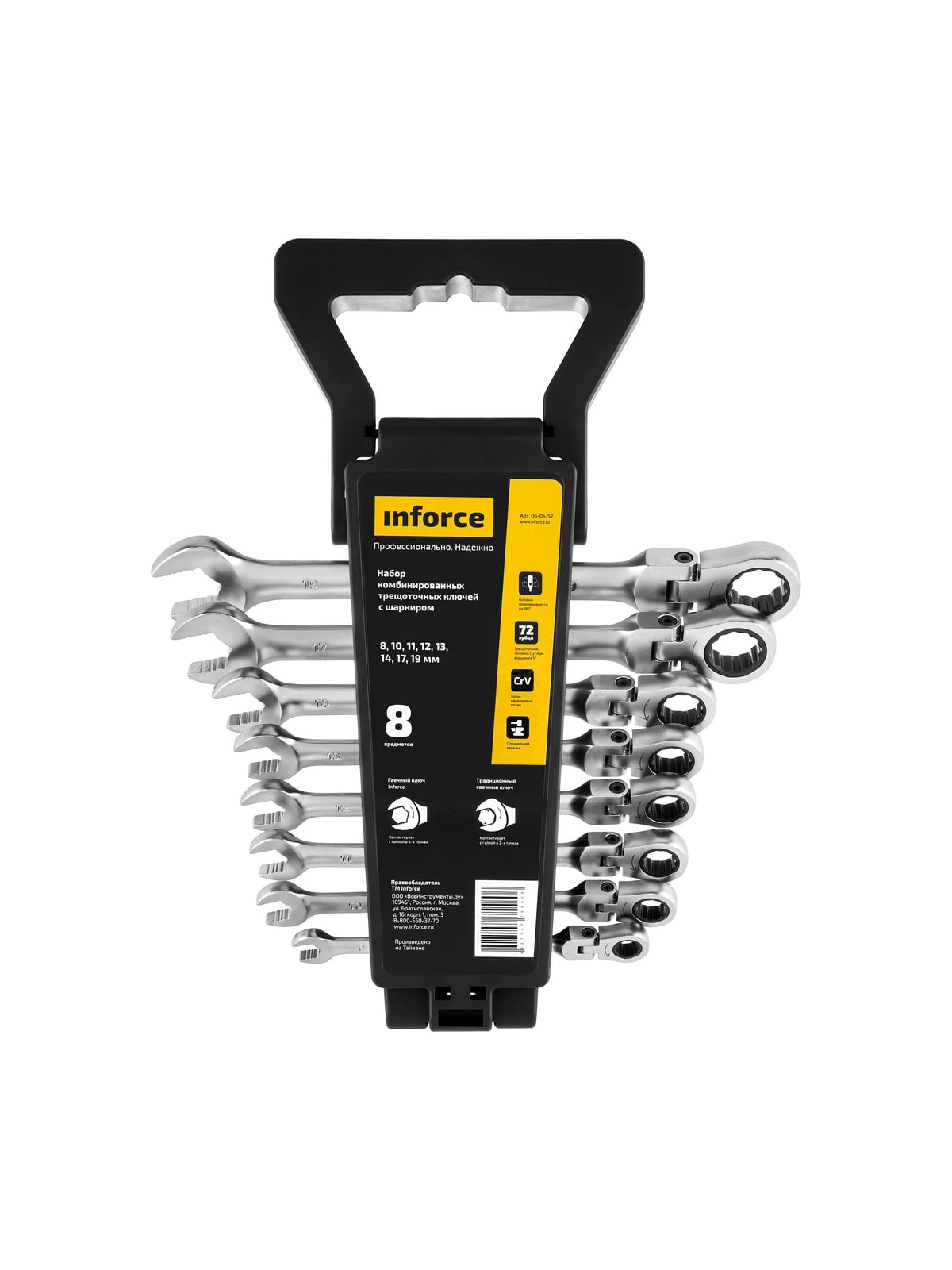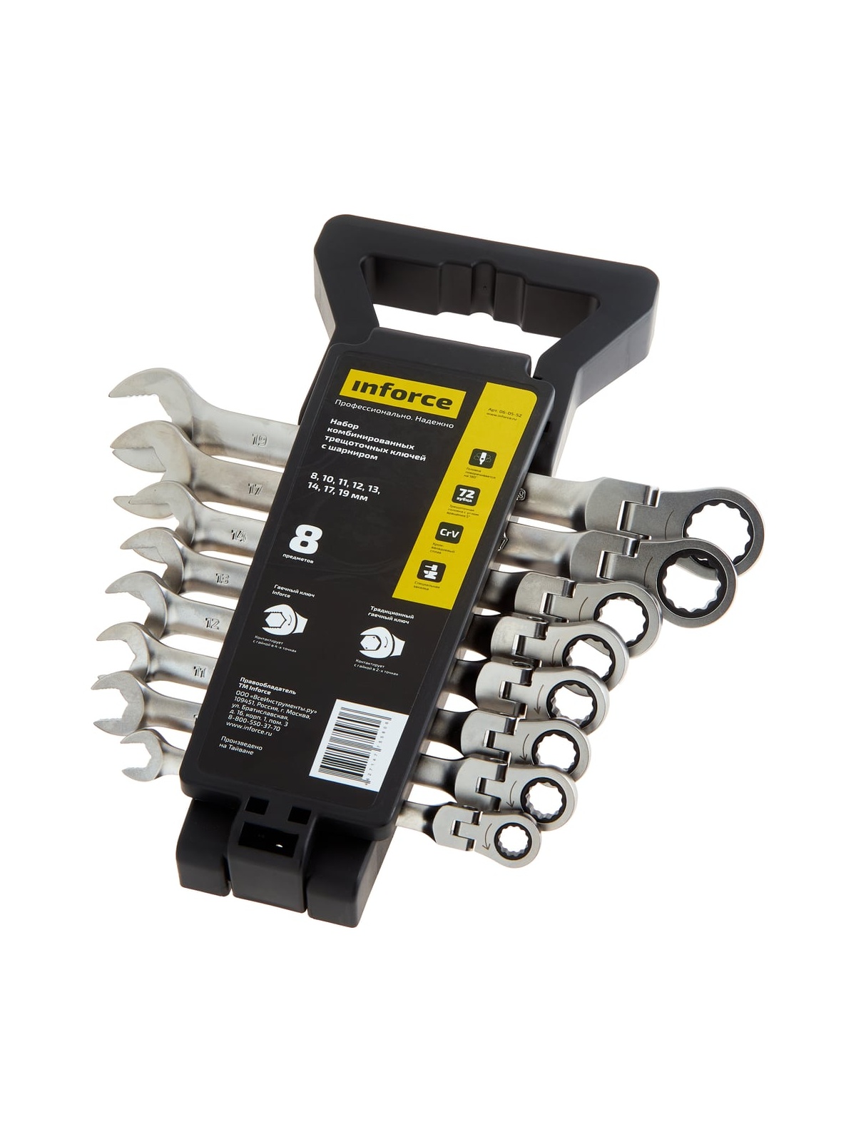 Набор комбинированных шарнирных ключей с трещоткой 8 предметов Inforce 06-05-52 существенно упрощает работу с крепежом. Комплект охватывает типовые размеры. Каждый инструмент имеет оптимальную длину. Для удобства транспортировки есть прочный холдер. Защитное покрытие и закалка металла повышают прочность и увеличивают срок службы.