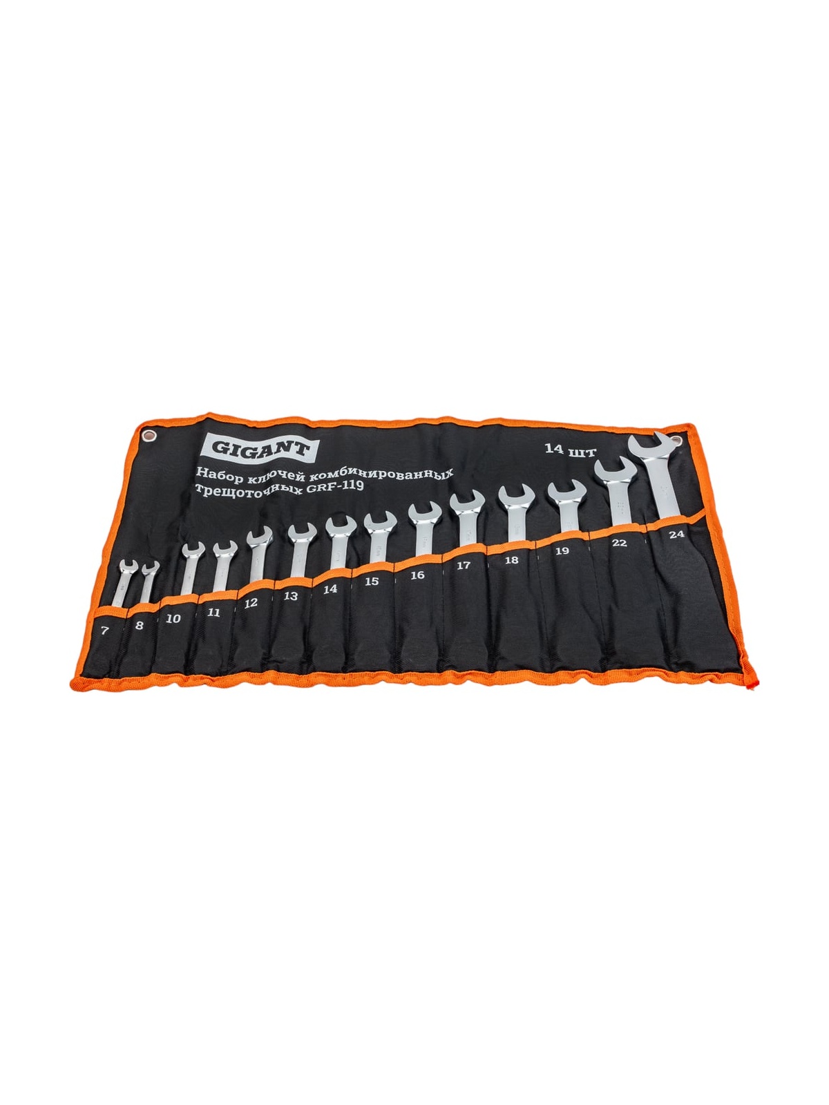 Набор комбинированных трещоточных ключей 14 шт Gigant grf-119 можно использовать в гараже или мастерской при ремонтных работах. Составляющие набора изготовлены из высококачественной хромованадиевой стали, которая устойчива к большим нагрузкам и обладает долгим сроком службы. Ключи поставляются в тетроновой сумке, что удобно для хранения и транспортировки инструмента. Механизм трещотки - 72 зуба.
