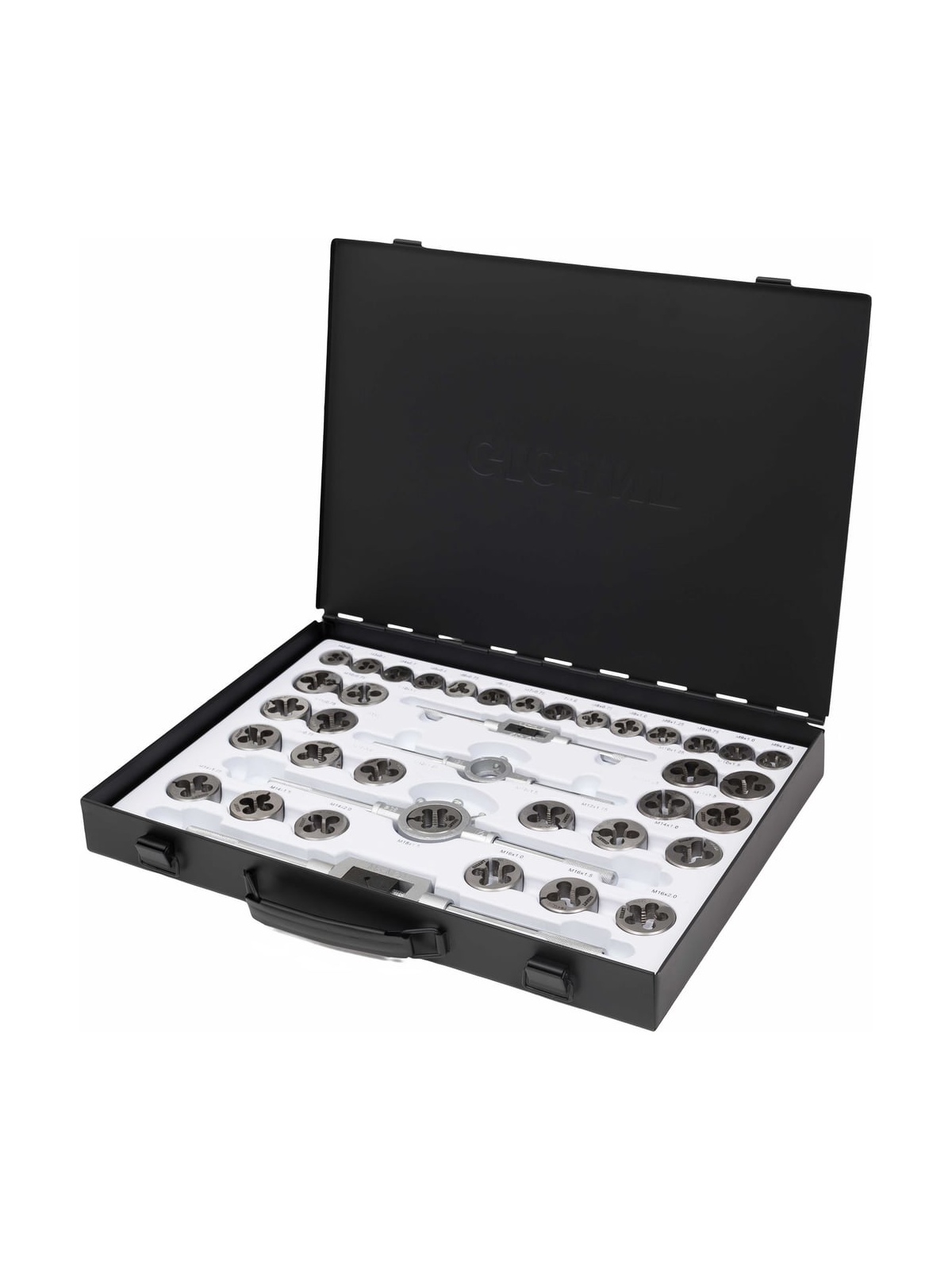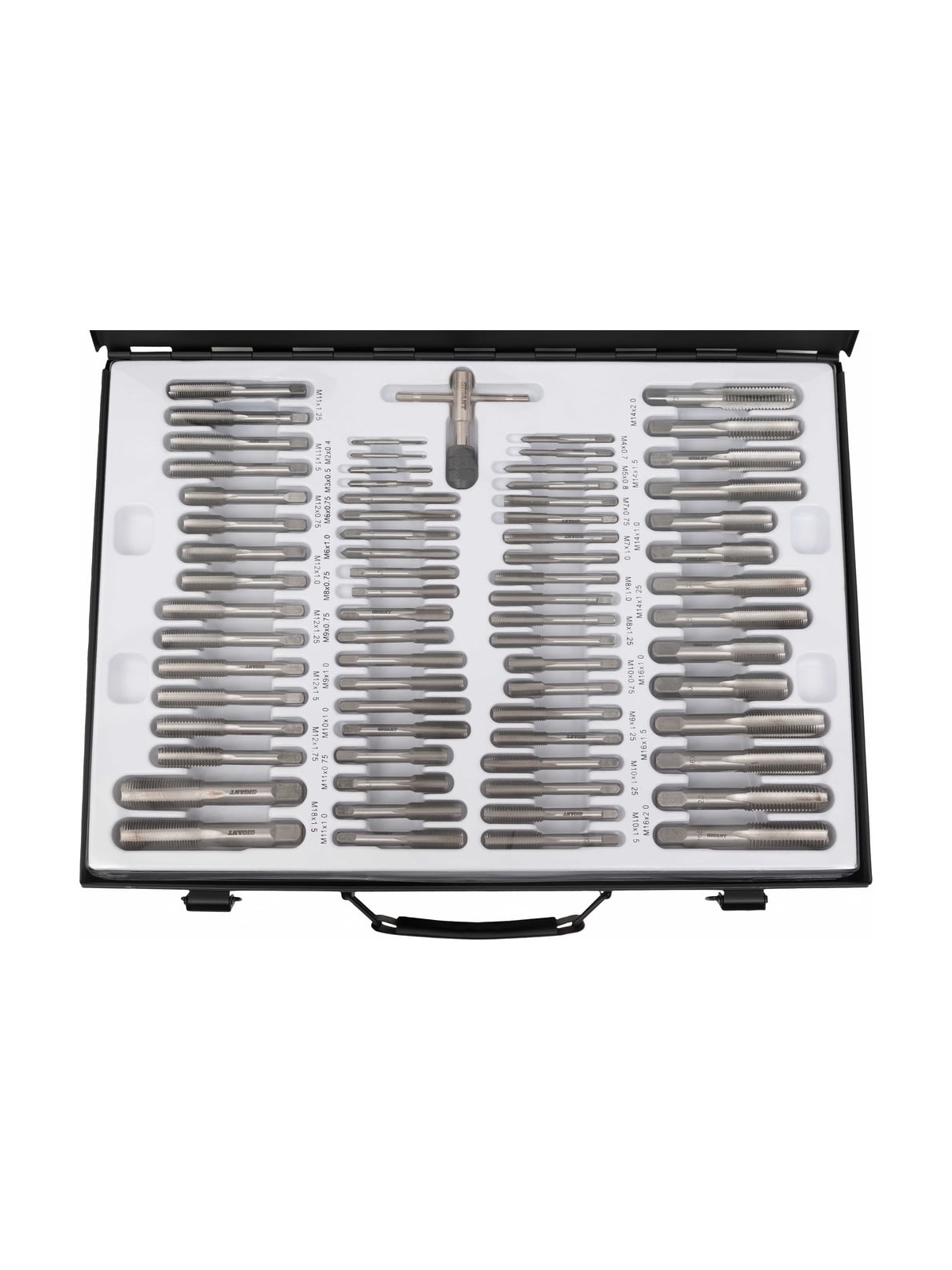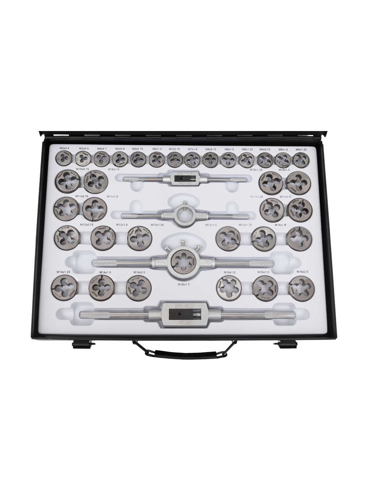 Набор метчиков и плашек, 110 предметов Gigant STD110 применяется для выполнения резьбонарезных работ. Метчики предназначены для создания внутренней резьбы, плашки – для наружной. Все компоненты набора изготовлены из стали марки 9ХС, устойчивой к коррозии. Набор поставляется в удобном кейсе, оснащенном ложементами для каждого предмета. Крепкая защелка на кейсе препятствует случайному открыванию и выпадению приспособлений. Широкая комплектация - в наборе 110 предметов. Продукция представлена профессиональными и бытовыми инструментами, имеет доступную цену и высокое качество. При изготовлении товаров Gigant используется современное оборудование и прочные материалы. Производство осуществляется на современных предприятиях России и Азии. Тестирование товаров осуществляется в два этапа, каждая партия инструментов проходит проверку на соответствие стандартам и заявленным техническим характеристикам. Это является залогом качества и надежности готового продукта. Продукция представлена широкой линейкой инструментов. У нас можно приобрести ручной инструмент, строительный, садовый, сантехнический, климатический, крепежный, автогаражный, а также станки, расходные материалы и многое другое.