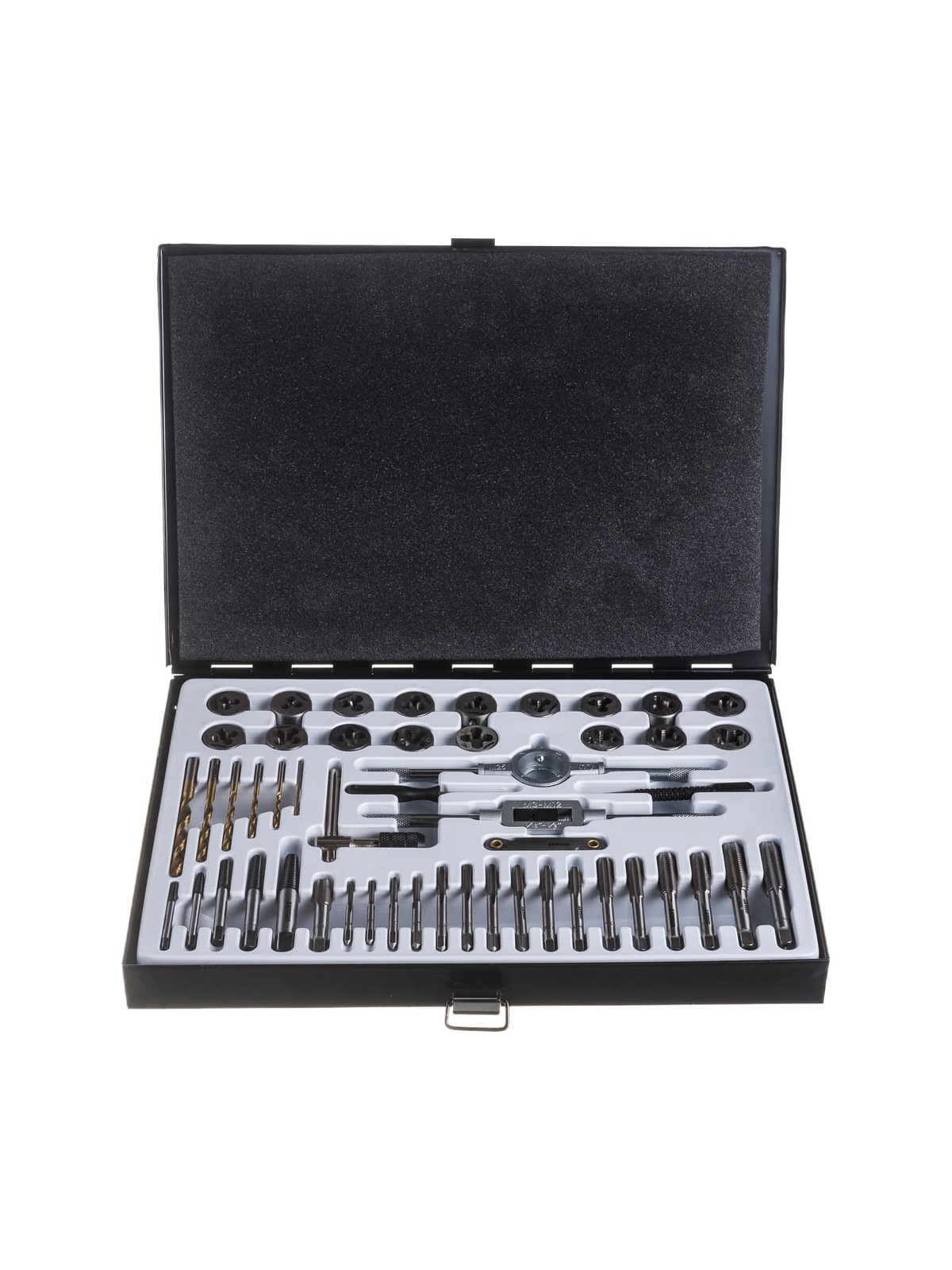 Набор метчиков и плашек, 51 предмета Gigant STD051 представляет собой комплект резьбонарезного инструмента. Все принадлежности выполнены из стали 9ХС и имеют защиту от коррозии. Набор поставляется в кейсе с ложементами для каждого предмета, что обеспечивает удобство хранения и транспортировки. Крепкая защелка на кейсе препятствует случайному открыванию и выпадению приспособлений. Широкая комплектация - в наборе метчики, плашки, экстрактеры, сверла, метчикодержатель, плашкодержатель, т-образный быстрозажимной ключ для метчиков М3 - М6, отвертка, резьбомер. Продукция представлена профессиональными и бытовыми инструментами, имеет доступную цену и высокое качество. При изготовлении товаров Gigant используется современное оборудование и прочные материалы. Производство осуществляется на современных предприятиях России и Азии. Тестирование товаров осуществляется в два этапа, каждая партия инструментов проходит проверку на соответствие стандартам и заявленным техническим характеристикам. Это является залогом качества и надежности готового продукта. Продукция представлена широкой линейкой инструментов. У нас можно приобрести ручной инструмент, строительный, садовый, сантехнический, климатический, крепежный, автогаражный, а также станки, расходные материалы и многое другое.