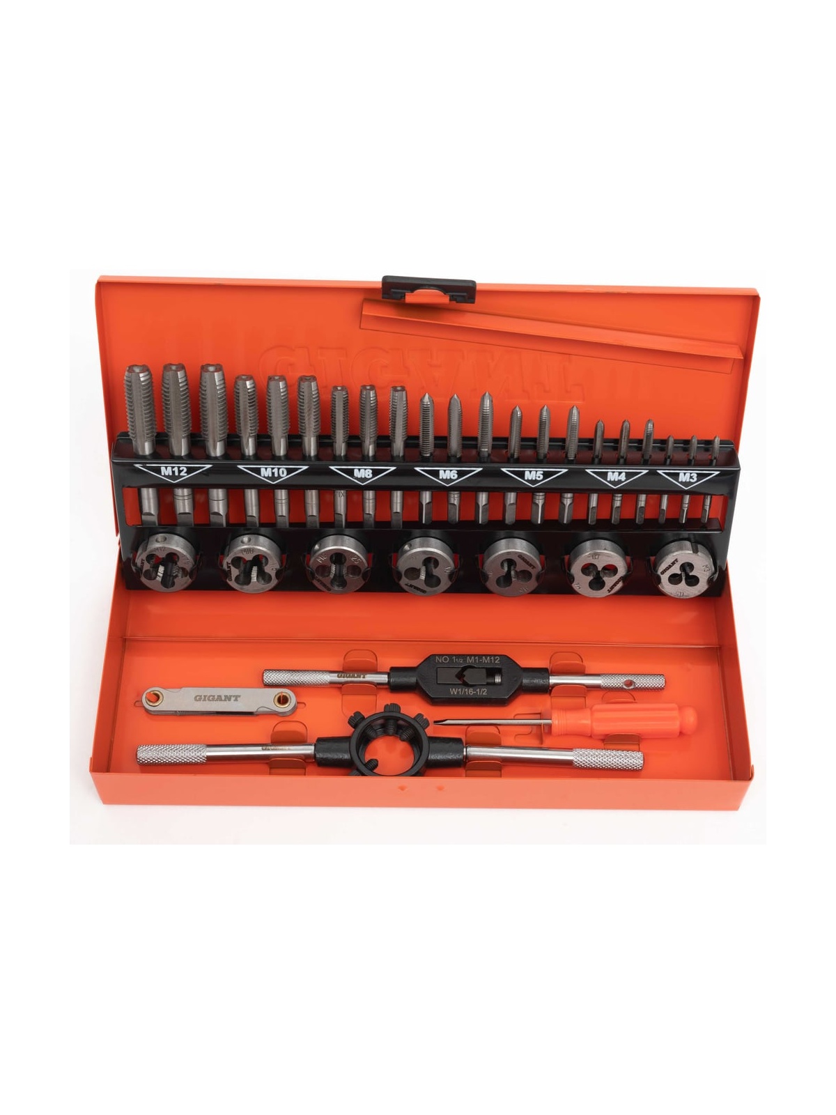 Набор метчиков и плашек Gigant 32 предмета STD32 создан для получения чистой внешней и внутренней резьбы. Метчики и плашки изготовлены из стали, которая отличается высокой прочностью и износостойкостью. Для удобства хранения и транспортировки комплект поставляется в прочном металлическом кейсе.