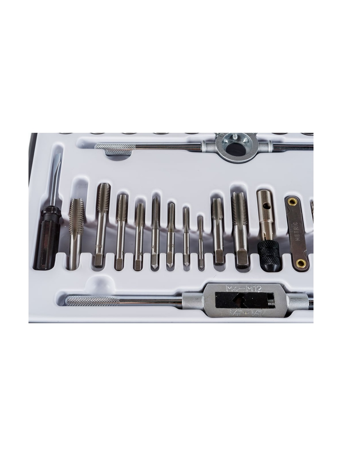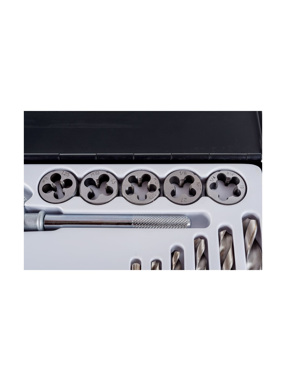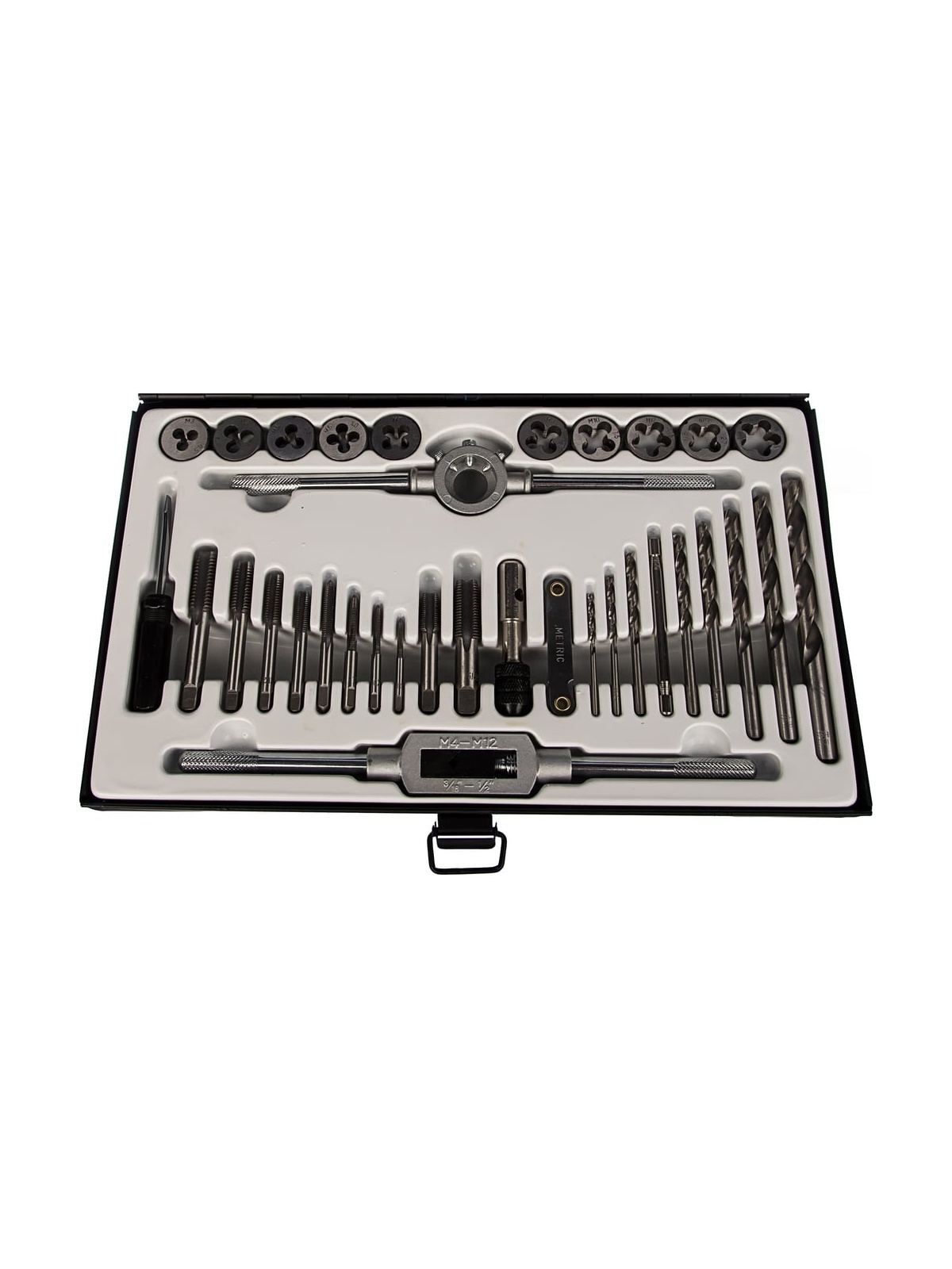 Набор метчиков и плашек, 34 предмета Gigant STD034 применяется для выполнения резьбонарезных работ. Метчики предназначены для создания внутренней резьбы, плашки – для наружной. Все компоненты набора изготовлены из прочной стали, устойчивой к коррозии. Набор поставляется в удобном кейсе, оснащенном ложементами для каждого предмета. Крепкая защелка на кейсе препятствует случайному открыванию и выпадению приспособлений. Широкая комплектация - в наборе метчики, плашки, сверла, метчикодержатель, плашкодержатель, т-образный быстрозажимной ключ для метчиков М3 - М8, отвертка, резьбомер. Продукция представлена профессиональными и бытовыми инструментами, имеет доступную цену и высокое качество. При изготовлении товаров Gigant используется современное оборудование и прочные материалы. Производство осуществляется на современных предприятиях России и Азии. Тестирование товаров осуществляется в два этапа, каждая партия инструментов проходит проверку на соответствие стандартам и заявленным техническим характеристикам. Это является залогом качества и надежности готового продукта. Продукция представлена широкой линейкой инструментов. У нас можно приобрести ручной инструмент, строительный, садовый, сантехнический, климатический, крепежный, автогаражный, а также станки, расходные материалы и многое другое.