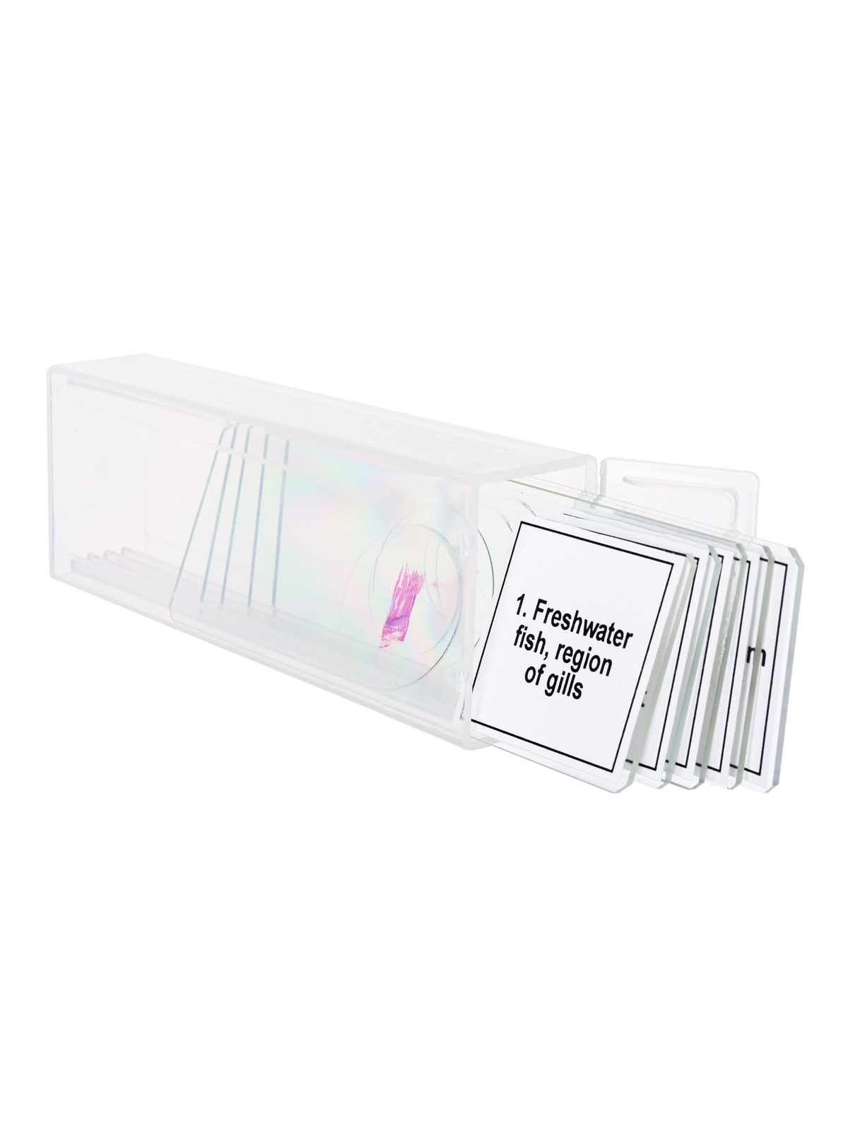 Препарат необходимо зафиксировать на предметном столике микроскопа, после чего можно включать нижнюю подсветку и приступать к наблюдениям. Дополнительная подготовка образцов не требуется. Препараты помещены между предметными и покровными стеклами высокого качества – их материал отличается прочностью и отличной прозрачностью. Это позволяет получать ясное и легкочитаемое изображение препарата на увеличении. Поэтому изучать структуру органов и особенности строения тканей можно во всех деталях.