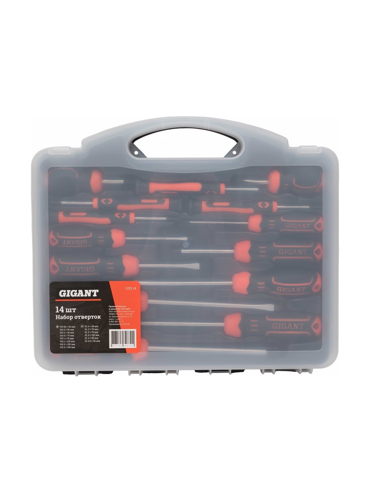 Набор отверток Gigant 14 штук GSS 14 предназначен для эксплуатации при строительных, ремонтных, монтажных и демонтажных работах. Отвертки имеют крестовой или прямой шлицы. Стержни отверток выполнены из хромованадиевой стали, которая гарантирует долгий срок службы. Эргономичные рукоятки выполнены из двухкомпонентного материала, это обеспечивает надежный захват и снижает нагрузку на руку. Набор поставляется в кейсе для удобной транспортировки и хранения. Продукция представлена профессиональными и бытовыми инструментами, имеет доступную цену и высокое качество. При изготовлении товаров Gigant используется современное оборудование и прочные материалы. Производство осуществляется на современных предприятиях России и Азии. Тестирование товаров осуществляется в два этапа, каждая партия инструментов проходит проверку на соответствие стандартам и заявленным техническим характеристикам. Это является залогом качества и надежности готового продукта. Продукция представлена широкой линейкой инструментов. У нас можно приобрести ручной инструмент, строительный, садовый, сантехнический, климатический, крепежный, автогаражный, а также станки, расходные материалы и многое другое.
