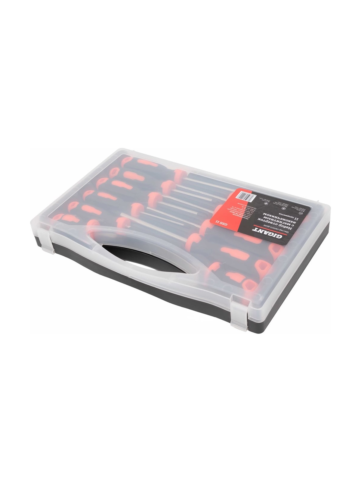 Набор отверток с магнитным наконечником Gigant 11 предметов GSS 11 подойдет для работы с крепежными соединениями. В комплект входят четыре отвертки с прямым шлицем Sl (75 мм, 2 по 100 мм и 38 мм), пять отверток с крестовым шлицем Ph (2 по 75 мм, 100 мм, 125 мм и 38 мм) и две отвертки с шлицем Pz (75 мм и 100 мм). Стержни отверток выполнены из хромованадиевой стали и оснащены магнитным наконечником. Эргономичные рукоятки выполнены из двухкомпонентного материала, это обеспечивает надежный захват и снижает нагрузку на руку. Набор поставляется в кейсе для удобной транспортировки и хранения. Продукция представлена профессиональными и бытовыми инструментами, имеет доступную цену и высокое качество. При изготовлении товаров Gigant используется современное оборудование и прочные материалы. Производство осуществляется на современных предприятиях России и Азии. Тестирование товаров осуществляется в два этапа, каждая партия инструментов проходит проверку на соответствие стандартам и заявленным техническим характеристикам. Это является залогом качества и надежности готового продукта. Продукция представлена широкой линейкой инструментов. У нас можно приобрести ручной инструмент, строительный, садовый, сантехнический, климатический, крепежный, автогаражный, а также станки, расходные материалы и многое другое.