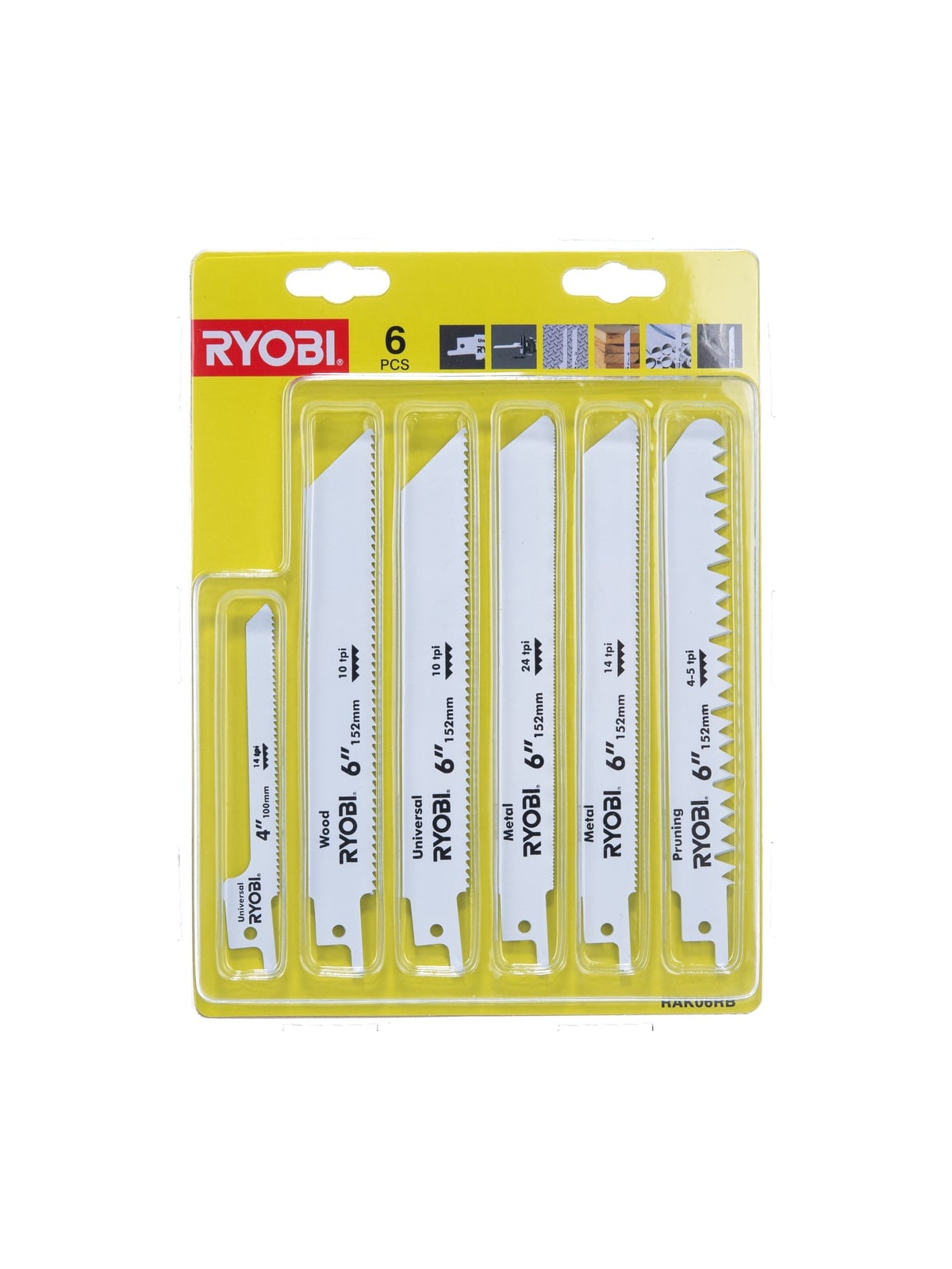 Набор полотен Ryobi RAK06RB 5132002547 подходит для сабельных пил с универсальным креплением. Полотна выполнены из прочного металла и предназначены для распила металла, пластика, древесины. В наборе 6 полотен.