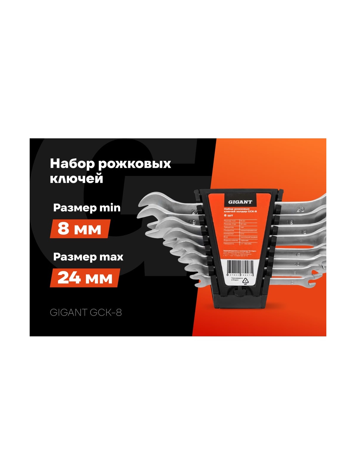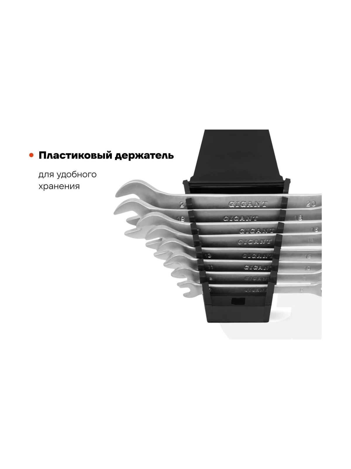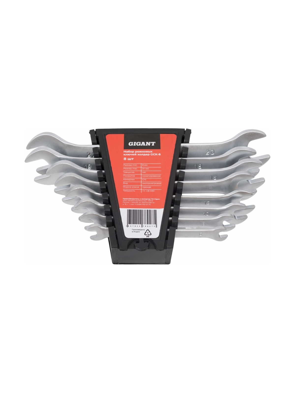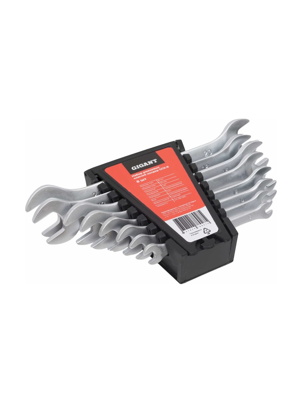 Набор рожковых ключей Gigant холдер 8шт GСK-8 отличается продолжительным сроком службы, так как изготовлен из высококачественной хромванадиевой стали. Защитный лак обеспечивает антикоррозийную стойкость. Ключи используются для монтажа и демонтажа шестигранного крепежа различных размеров.