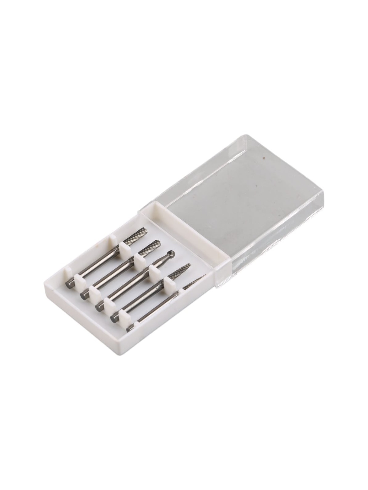 В наборе 5 твердосплавных шарошек по металлу с диаметром хвостовика 3 мм. Шарошки поставляются в пластиковом кейсе для удобного хранения и переноски.