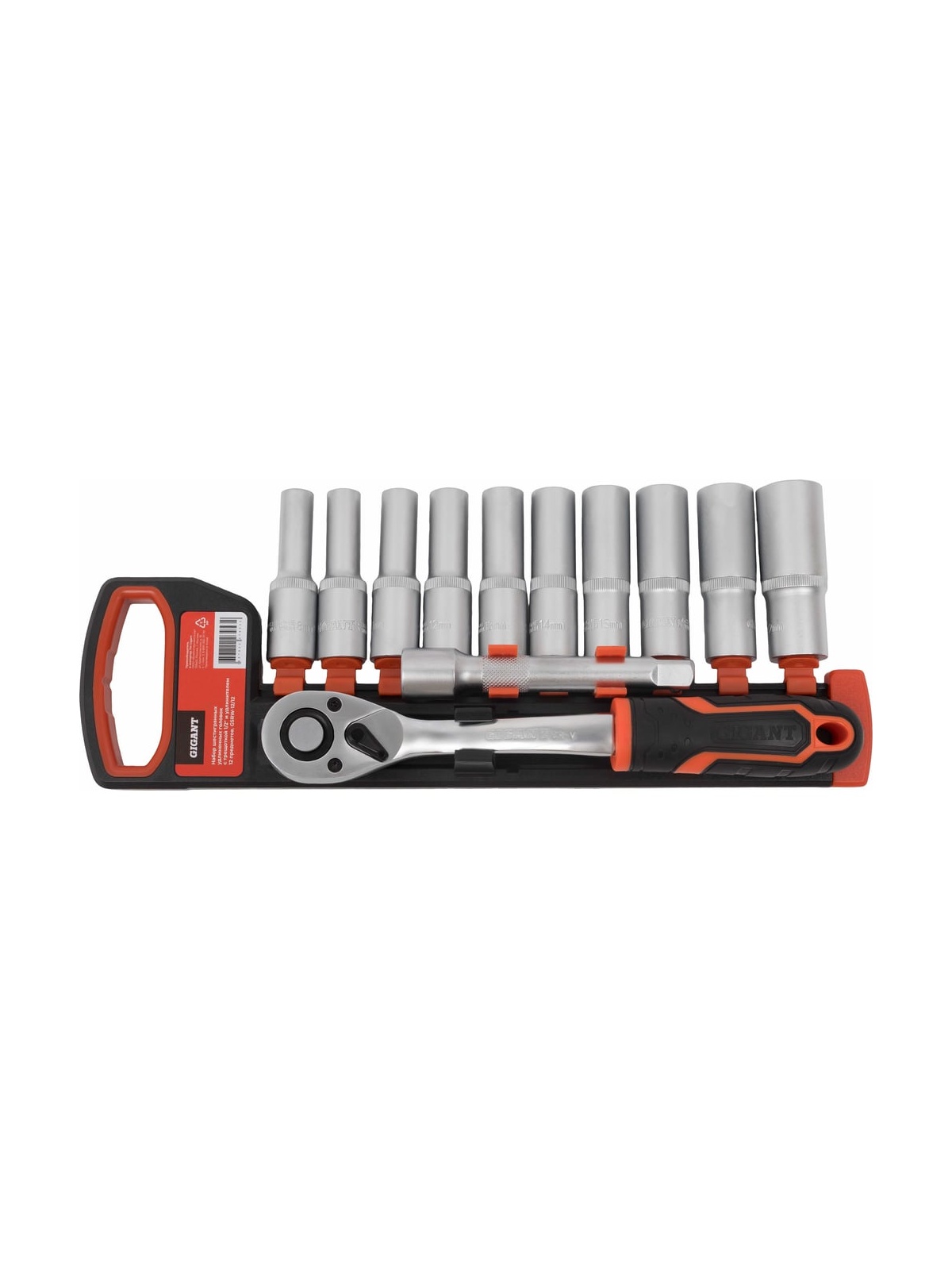 Набор шестигранных удлиненных головок Gigant с трещоткой 1/2" и удлинителем, 12 предметов GSRW-12/12 представляет собой универсальный инструмент для работы с крепежными элементами различных размеров. В комплект входит 12 предметов, что обеспечивает широкий диапазон применения. Головки имеют размеры от 8 до 22 мм, что позволяет использовать их для различных задач. Трещотка с посадочным размером 1/2 дюйма и 72 зубьями обеспечивает плавное и точное вращение, а удлинитель длиной 125 мм позволяет добраться до труднодоступных мест. Набор выполнен в метрической системе измерения и упакован в удобный держатель, что облегчает хранение и транспортировку.