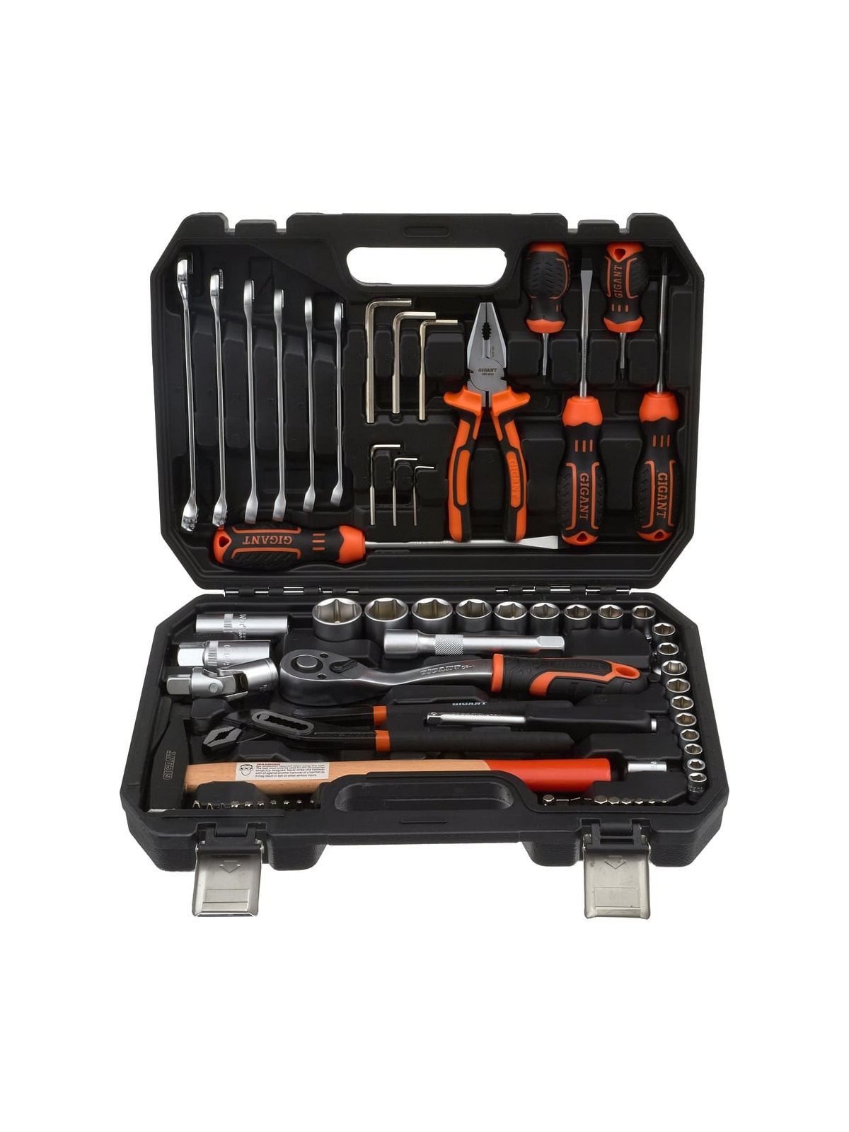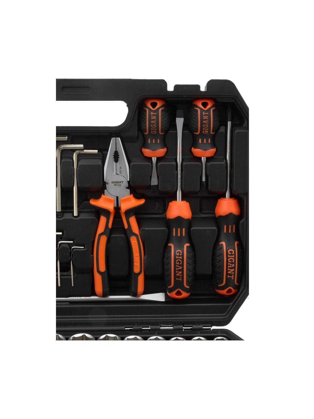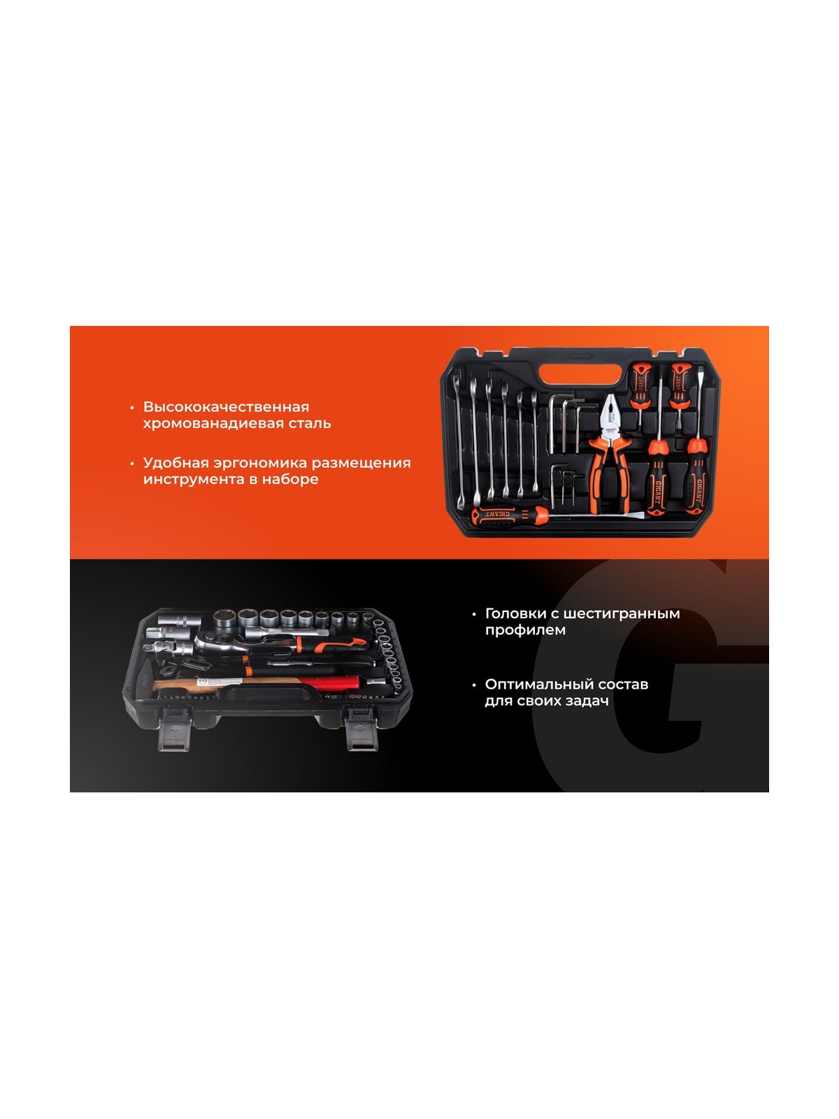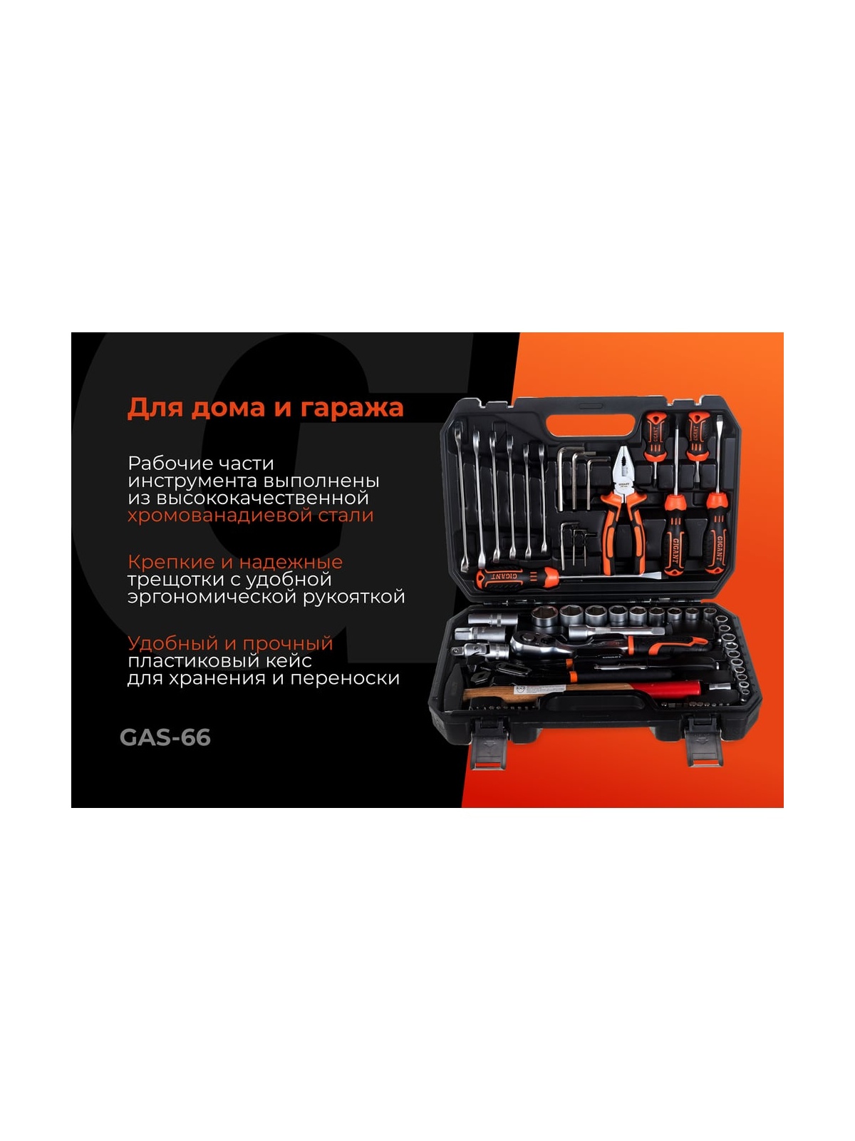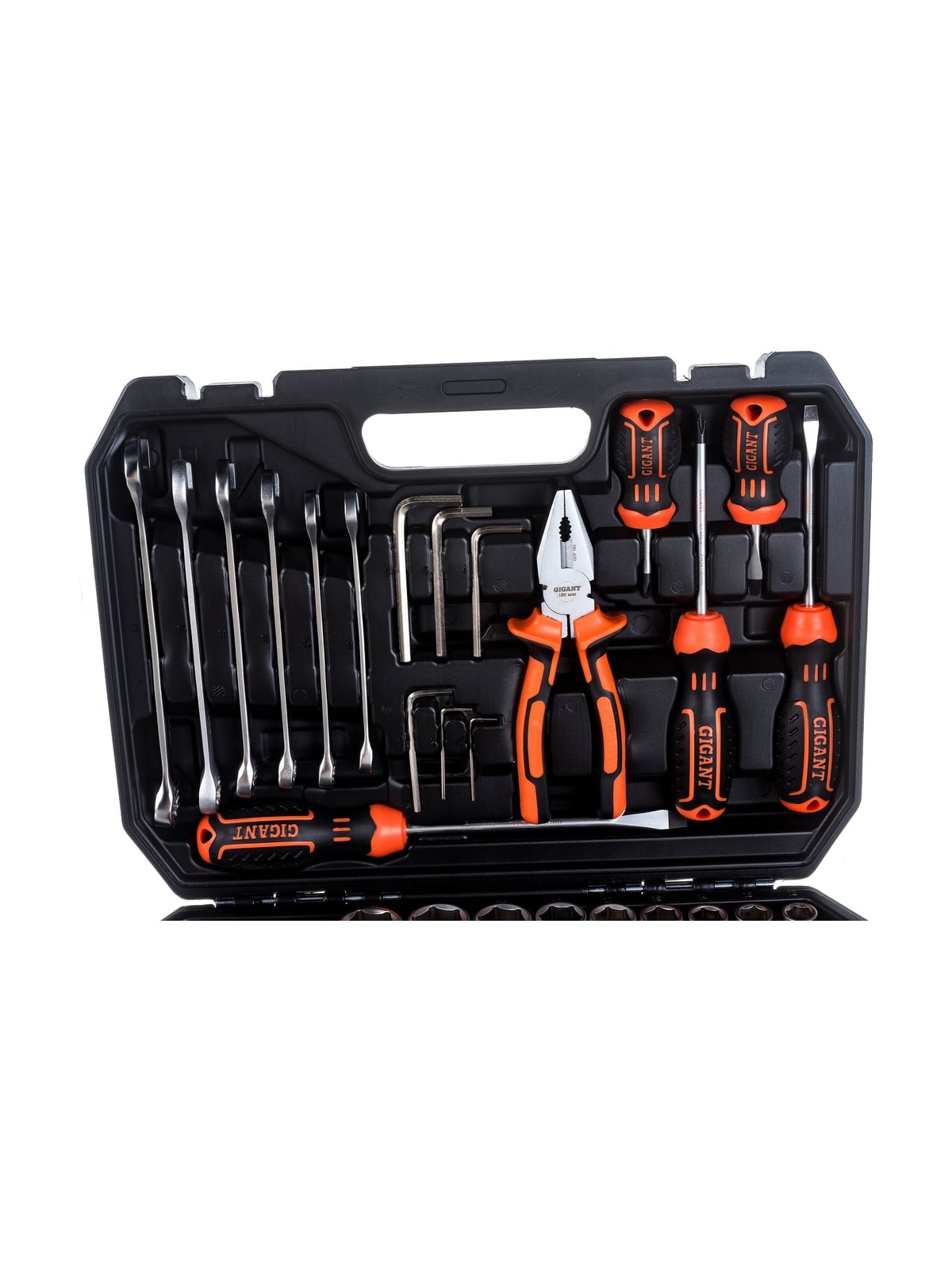 Набор представлен в оптимальной комплектации и включает в себя самые необходимые инструменты и популярные типоразмеры головок и ключей. Это делает данный набор универсальным и незаменимым помощником для выполнения ремонтных работ в гараже и дома. Рабочие части инструмента изготовлены из прочной стали и отличаются высокой стойкостью к износу. Антикоррозийное покрытие надежно защищает инструмент от негативного внешнего воздействия и значительно продлевает его срок службы. Набор поставляется в удобном кейсе, где каждый предмет имеет свое отделение. Это обеспечивает бережное хранение, комфортную транспортировку и удобный поиск необходимой модели во время работы.