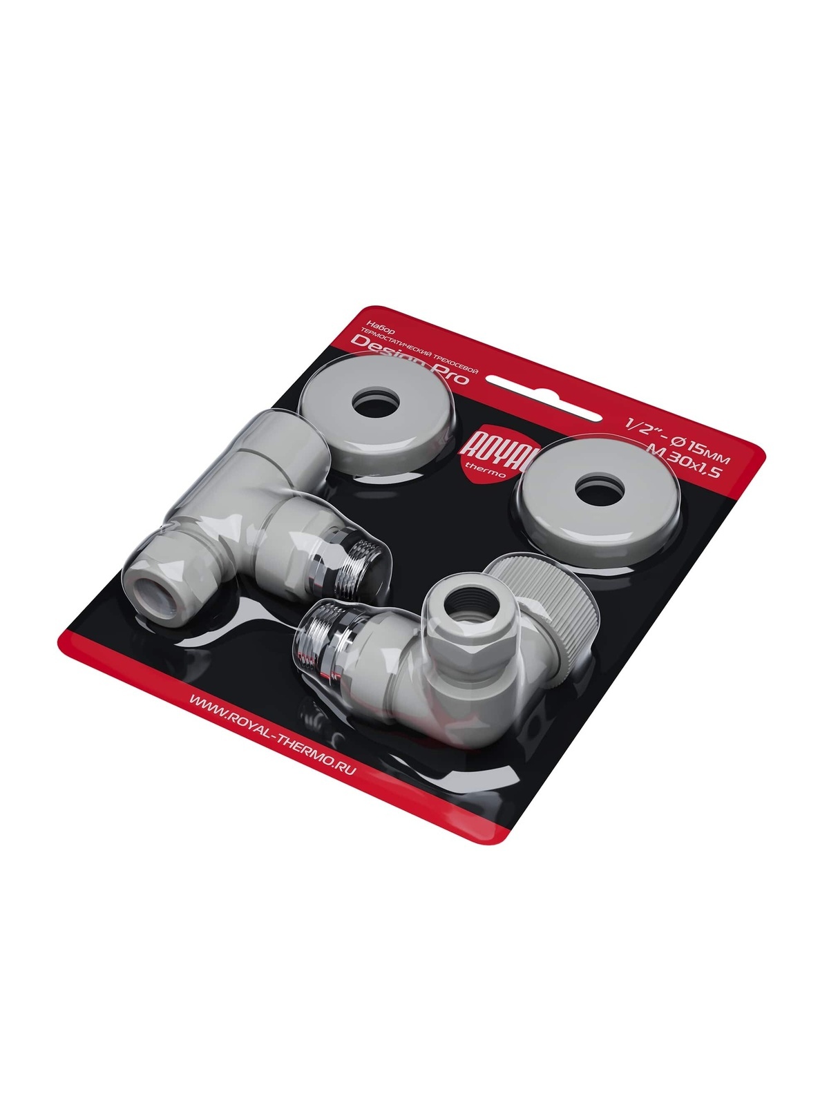 Набор термостатический трехосевой Royal Thermo Design Pro 15мм М30х1,5 (Белый).