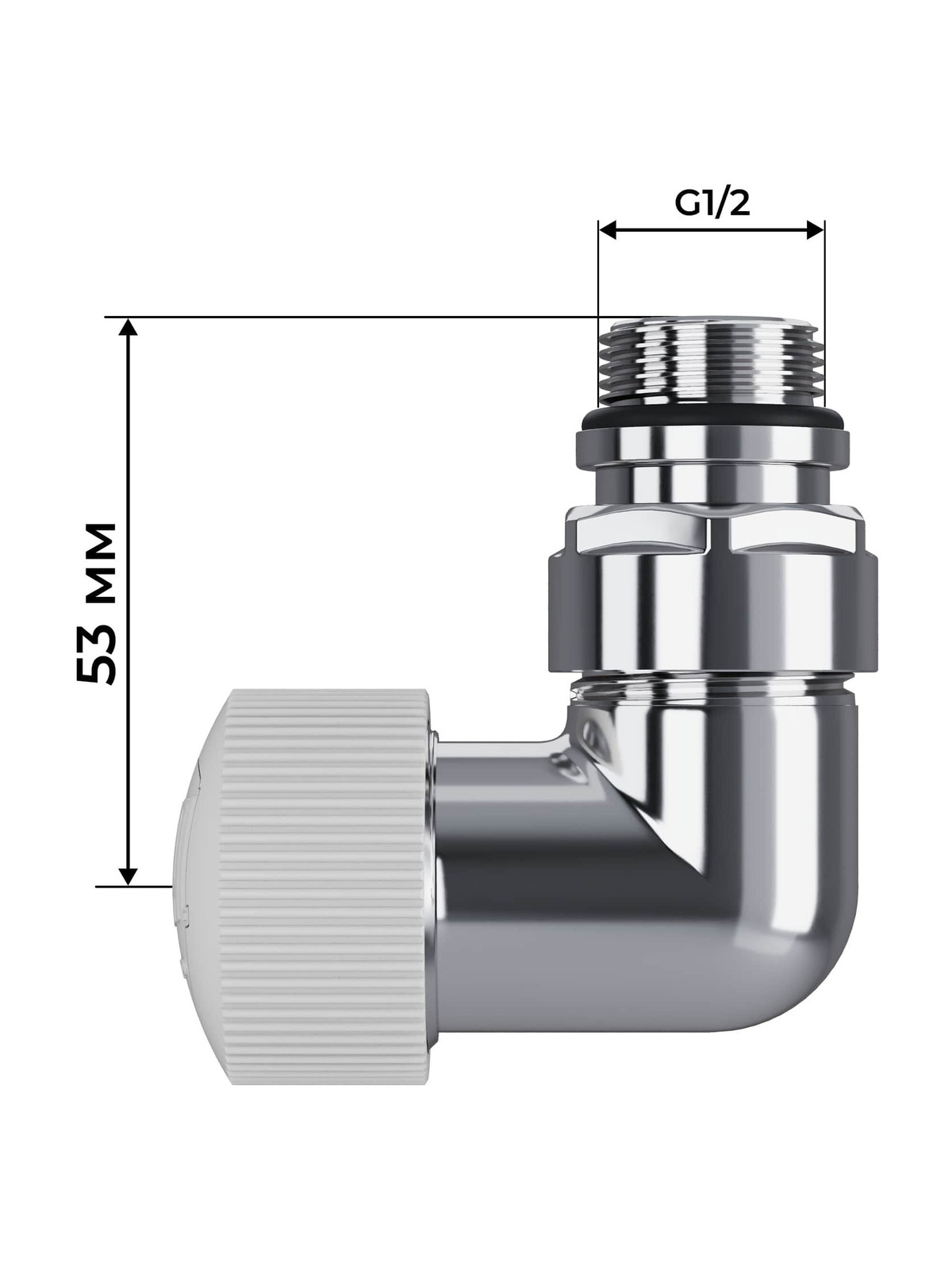 Размер подключения к радиатору 1/2”. К системе отопления набор подключается через монтажную латунную трубку диаметром 15 мм.