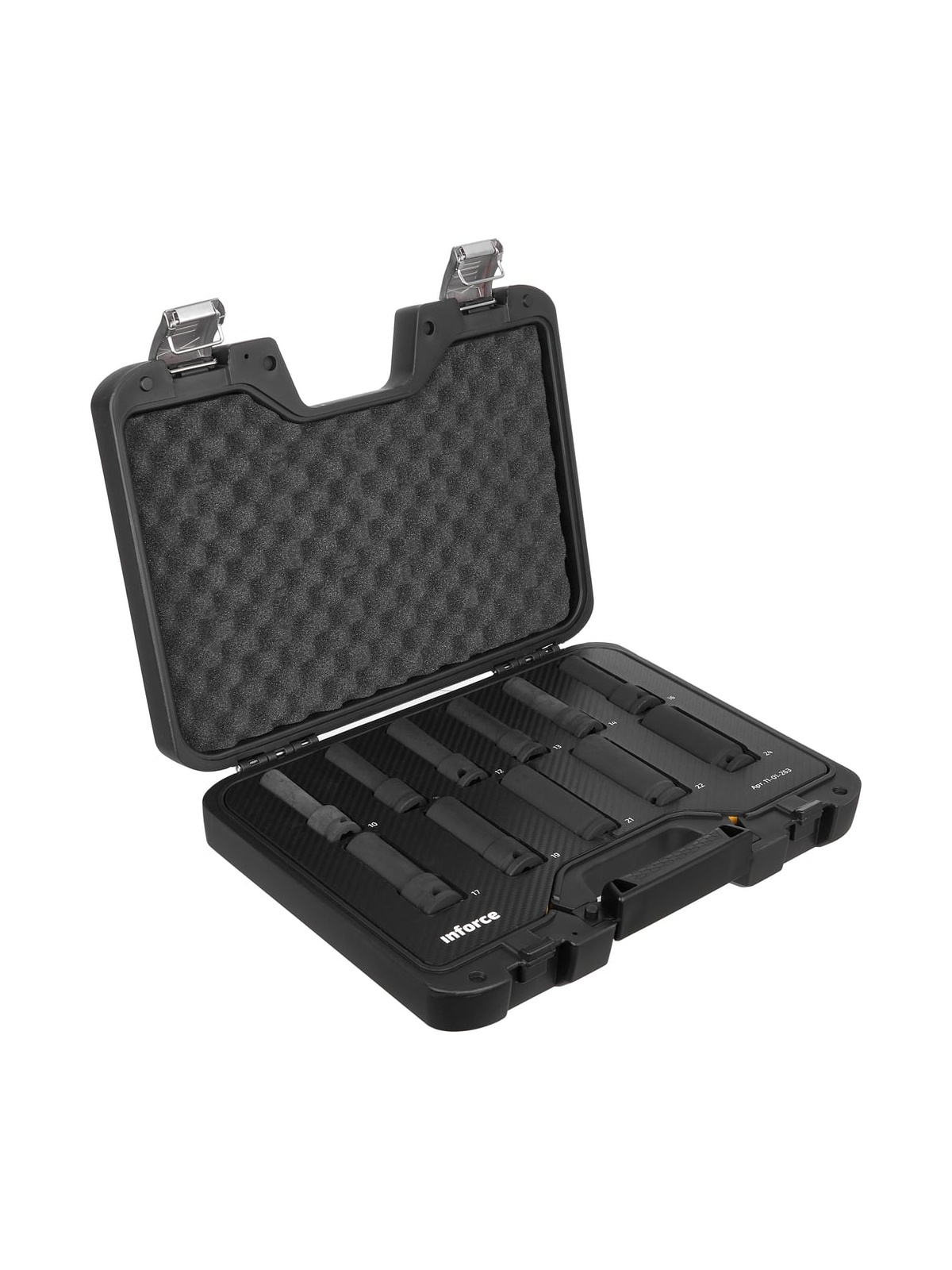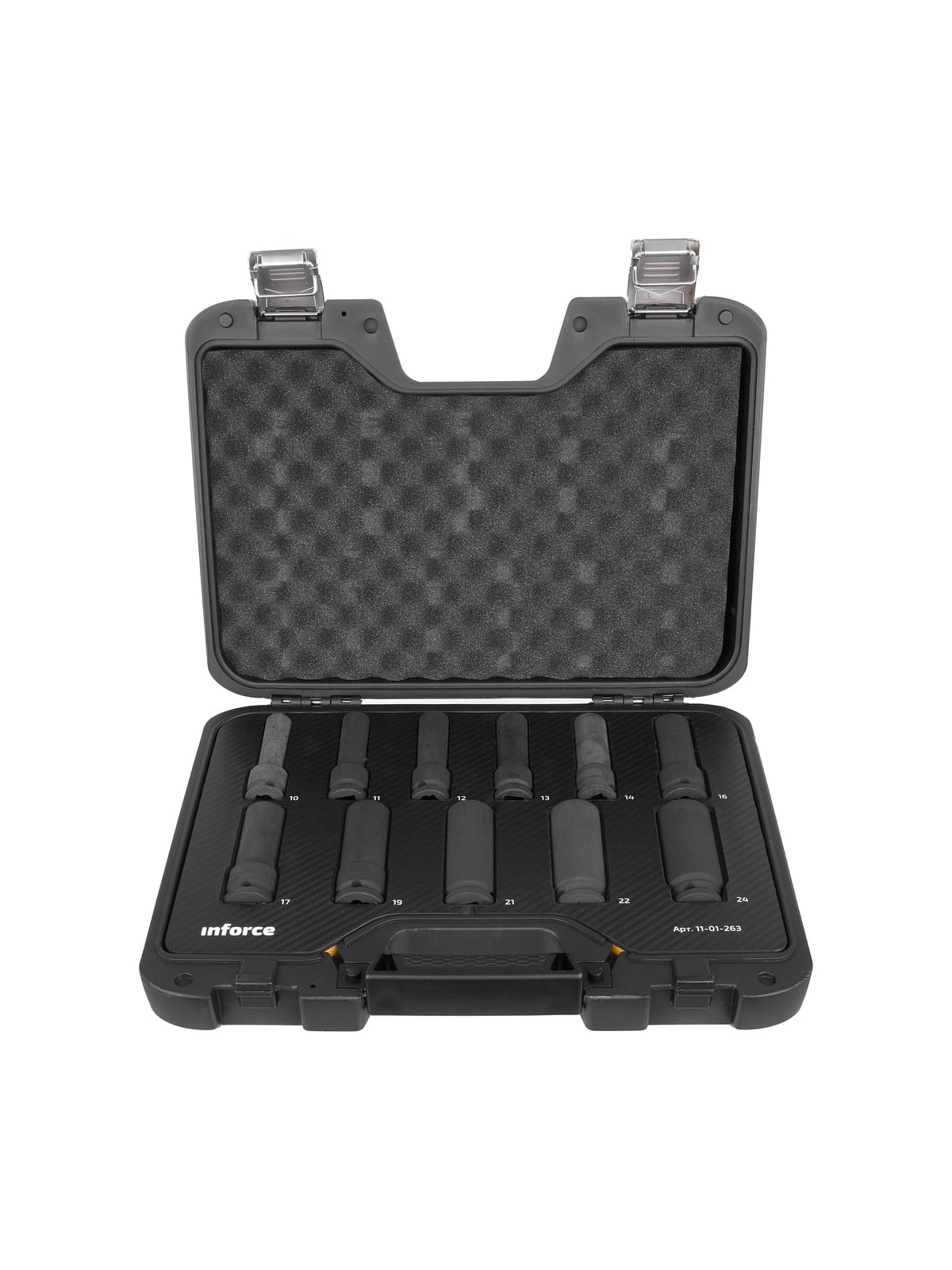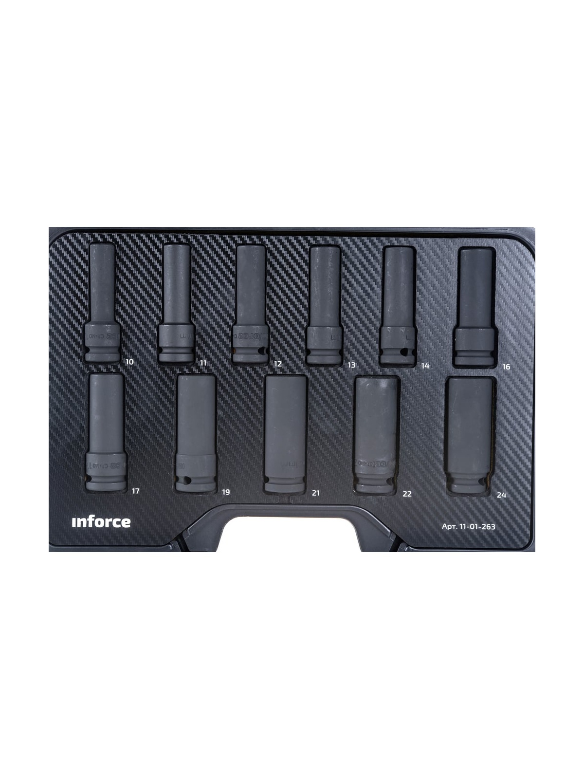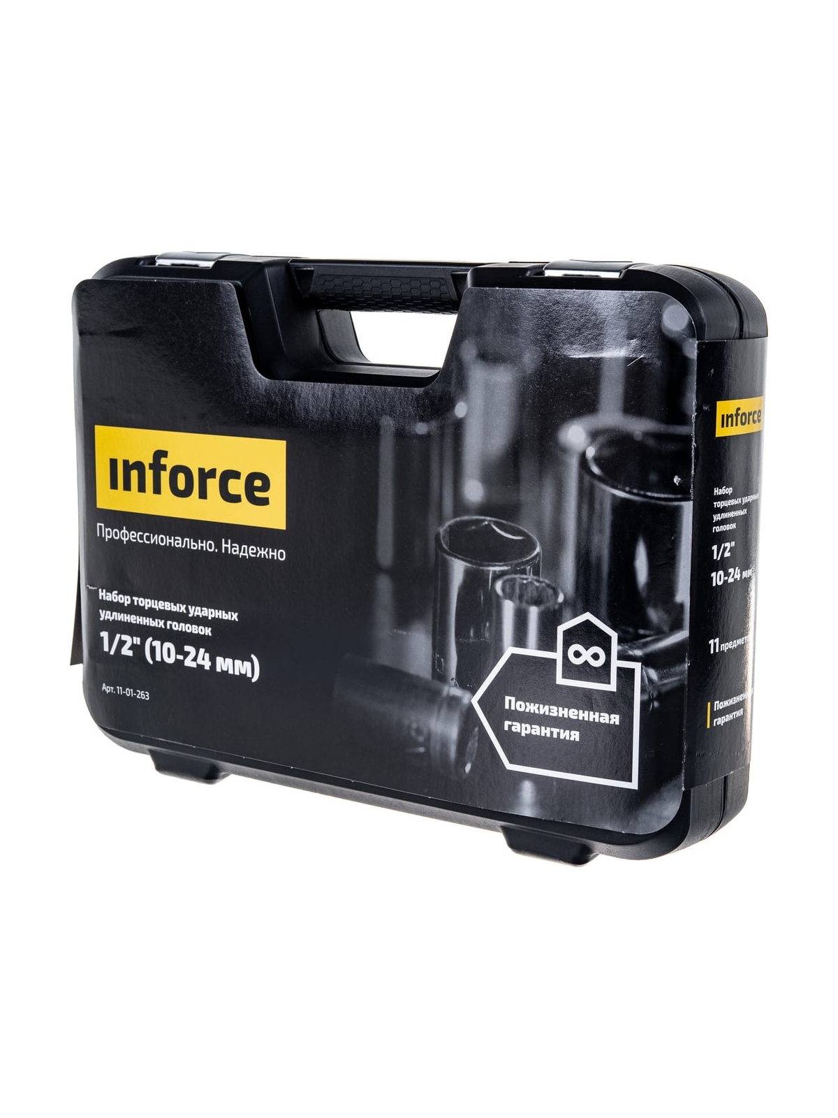 Набор торцевых ударных удлиненных головок Inforce 11-01-263 предназначен для ударных гайковертов. Применяется для работы с крепежом. В наборе 11 предметов. Головки изготовлены из хром-молибденовой стали. Улучшенный профиль головок успешно справляется с крепежом, грани которого деформированы на 85%.