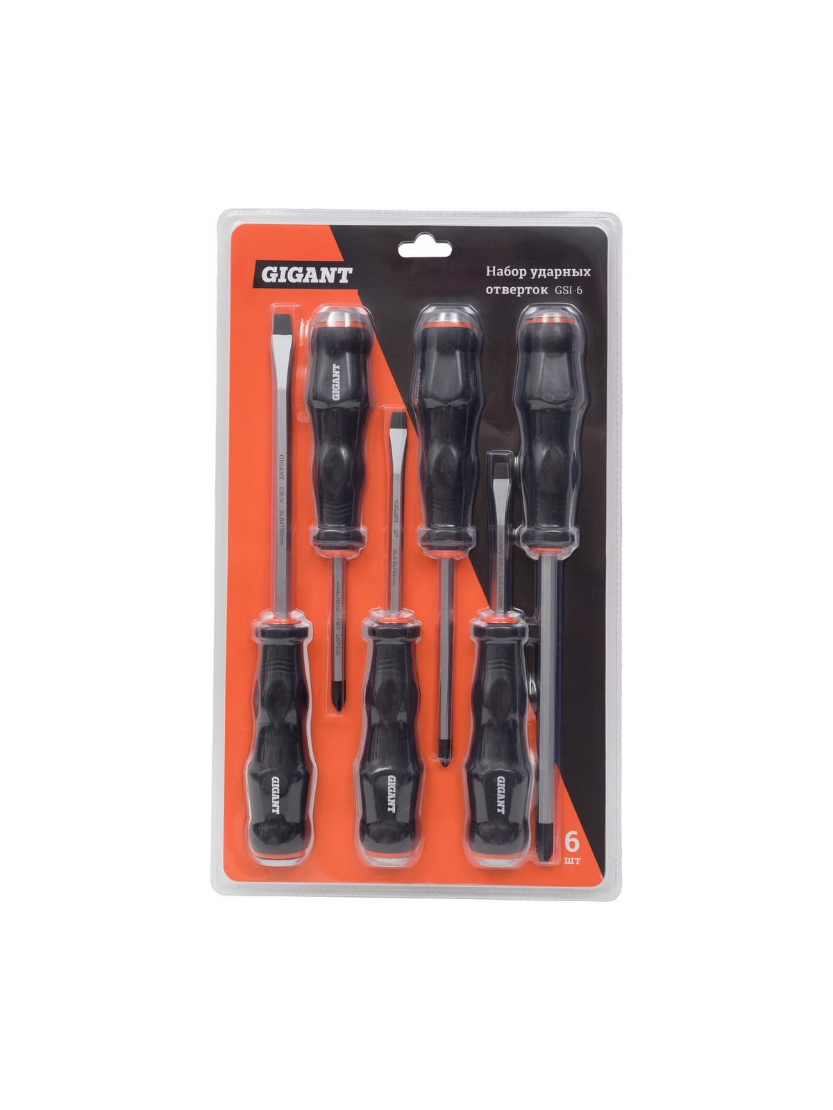 Набор ударных отверток Gigant 6 шт GSI-6 имеет высокую прочность и подходит для тугого и сложного крепежа. Отвертки имеют крестовой или прямой шлицы. Стержни отверток выполнены из хромованадиевой стали, не гнутся и не скручиваются. Усилие максимально передается на крепеж. Удобные противоскользящие рукоятки облегчают удержание. Продукция представлена профессиональными и бытовыми инструментами, имеет доступную цену и высокое качество. При изготовлении товаров Gigant используется современное оборудование и прочные материалы. Производство осуществляется на современных предприятиях России и Азии. Тестирование товаров осуществляется в два этапа, каждая партия инструментов проходит проверку на соответствие стандартам и заявленным техническим характеристикам. Это является залогом качества и надежности готового продукта. Продукция представлена широкой линейкой инструментов. У нас можно приобрести ручной инструмент, строительный, садовый, сантехнический, климатический, крепежный, автогаражный, а также станки, расходные материалы и многое другое.