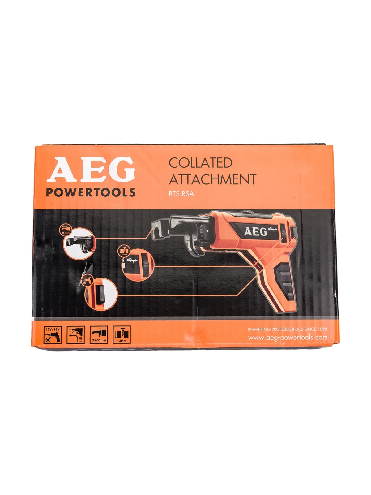 Насадка BTS-BSA AEG 4932459623 предназначена для шуруповертов AEG BTS18BL и BTS12. Применяется для работ по гипсокартону с помощью лент с шурупами. С насадкой используется бита по гипсокартону BTS-LB AEG 4932459716. Характеристики: длина насадки - 238 мм; длина шурупов - от 25 до 55 мм; максимальный диаметр шурупов - 4.2 мм.