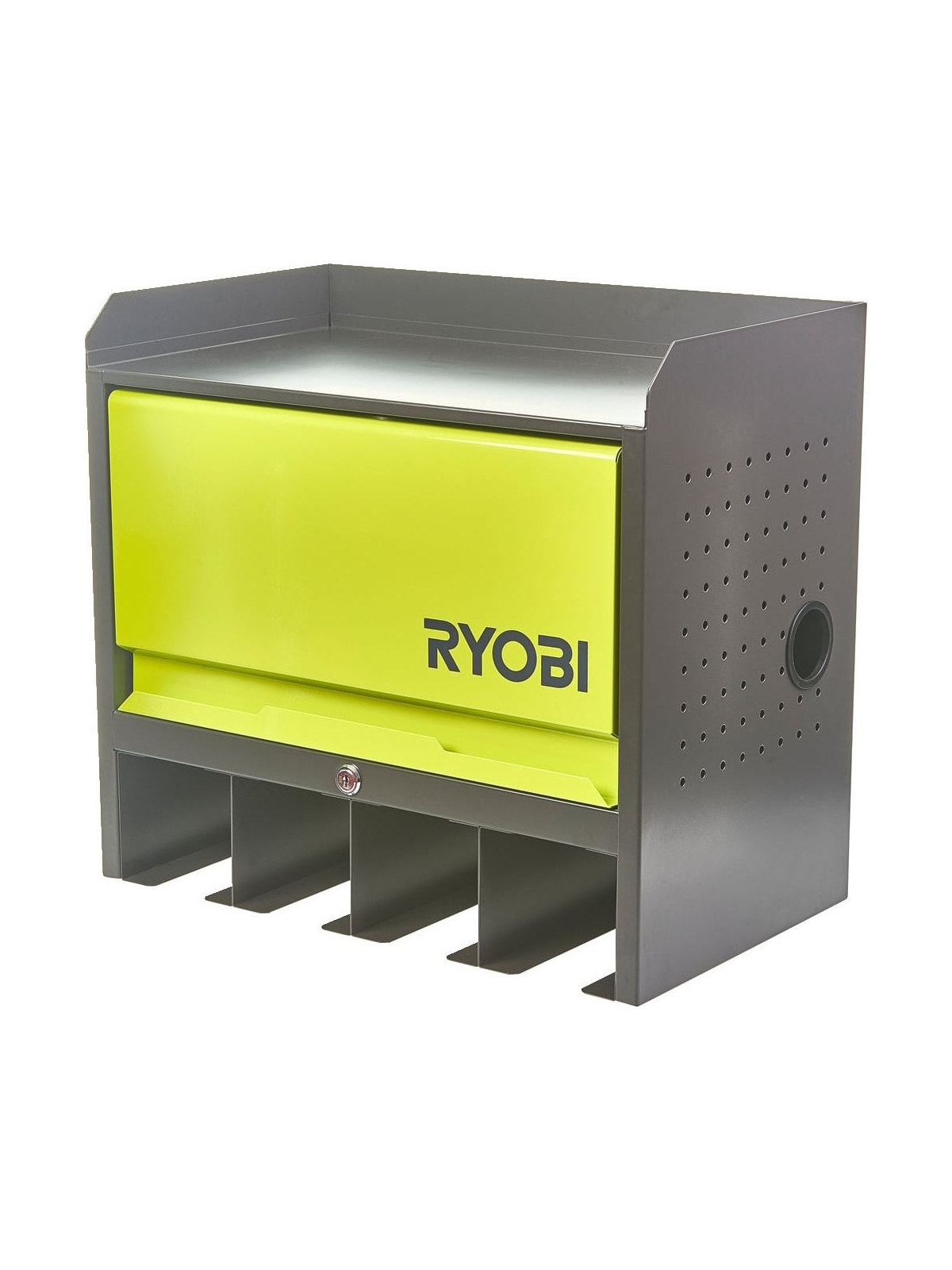 Навесная полка с дверцей Ryobi RHWS-0 5132004358 служит для хранения инструмента, расходных материалов и рабочего инвентаря. Модель позволяет организовать упорядоченное хранение оснастки в гараже или мастерской. В боковых стенках предусмотрены отверстия для вывода проводов.