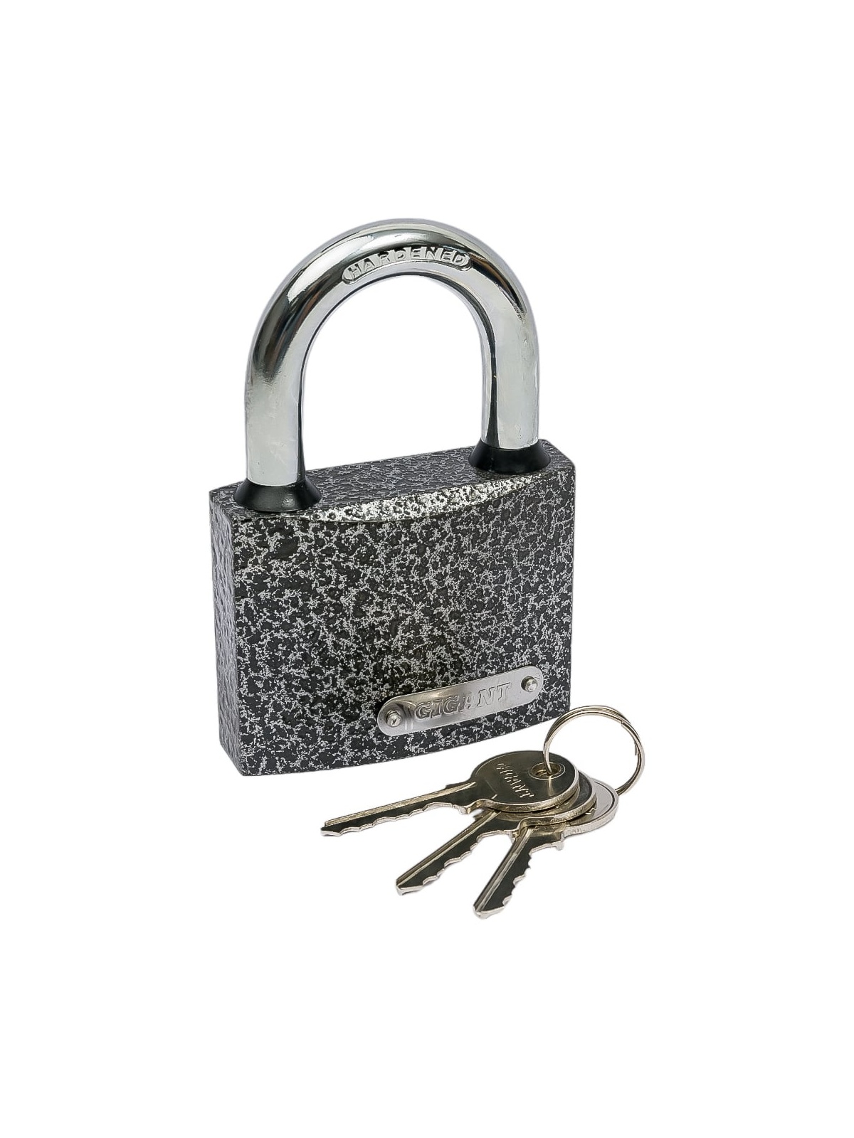 Навесной замок с ключом Gigant GPLK-75 имеет чугунный корпус с порошковым антикоррозийным покрытием и закаленной стальной дужкой. Места стыка дужки и замка защищены от попадания воды резиновыми кольцами.