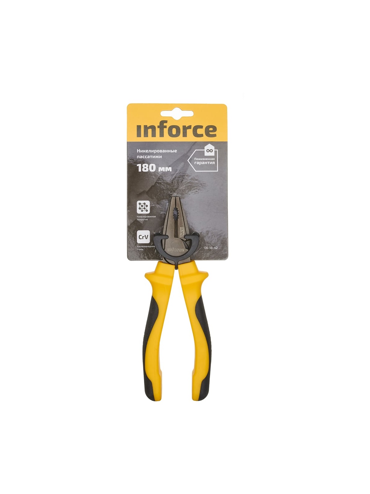 Никелированные пассатижи Inforce 180мм 06-18-42 относятся к ручному инструменту профессионального класса. Оснащены двухкомпонентными рукоятками, которые удобно держать в руке. Губки пассатижей выполнены из прочной стали. Длина инструмента - 180 мм.