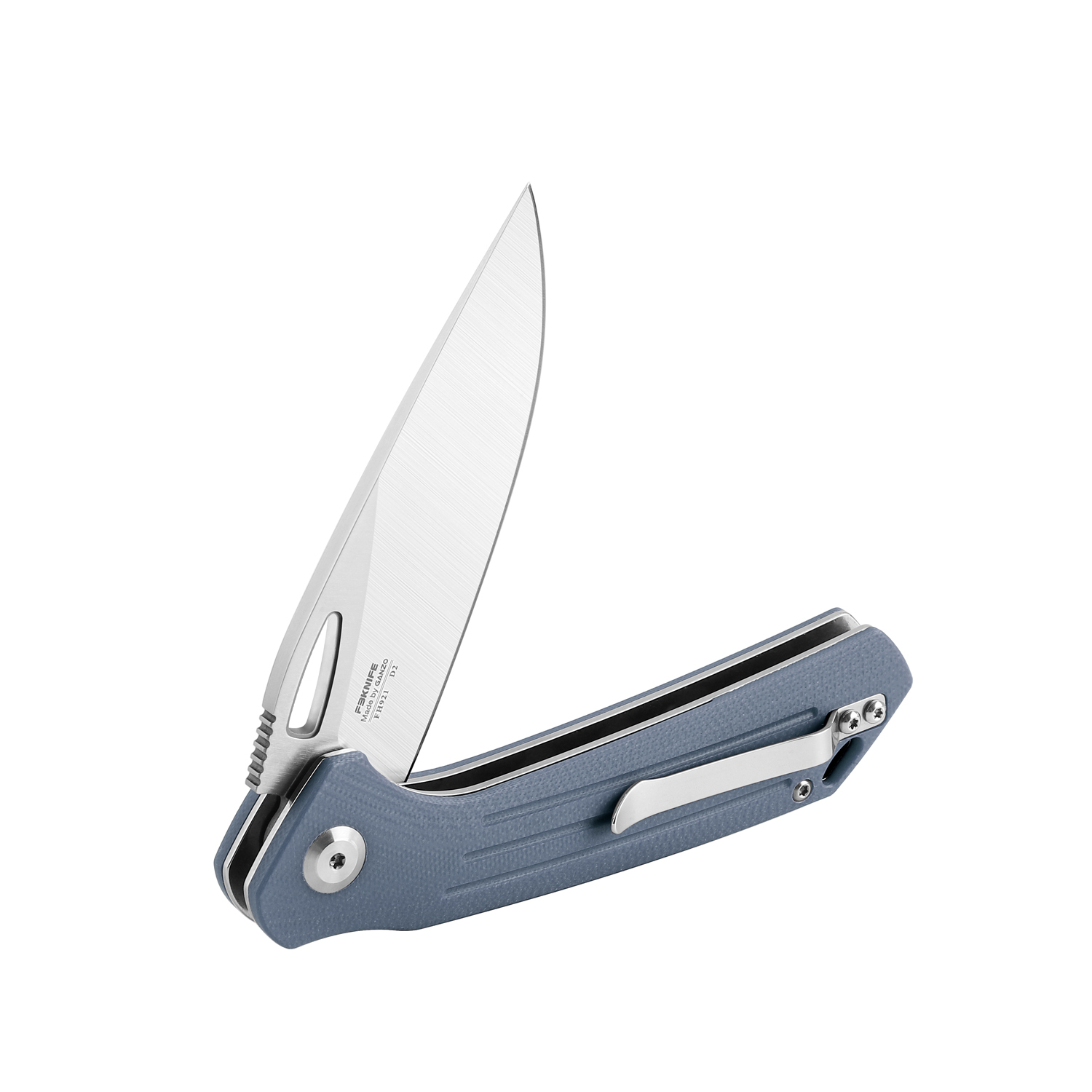 Нож складной Ganzo Firebird FH921 представляет собой карманное изделие, рассчитанное, в том числе, на использование в туризме. Особенность данной модели – в нетипичной форме рукояти, которая имеет выемку в верхней части ближе к обуху. Насечки на обухе способствуют лучшему сцеплению с пальцем пользователя. Другая характерная черта – отверстие в области клинка на месте, где обычно располагается шпенёк. Конструктивный элемент помогает легко открыть изделие рукой. Осевой винт обеспечен круглым металлическим подшипником.