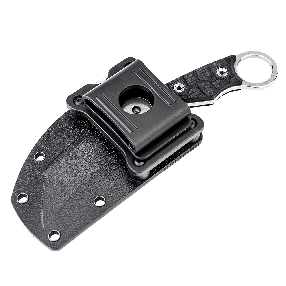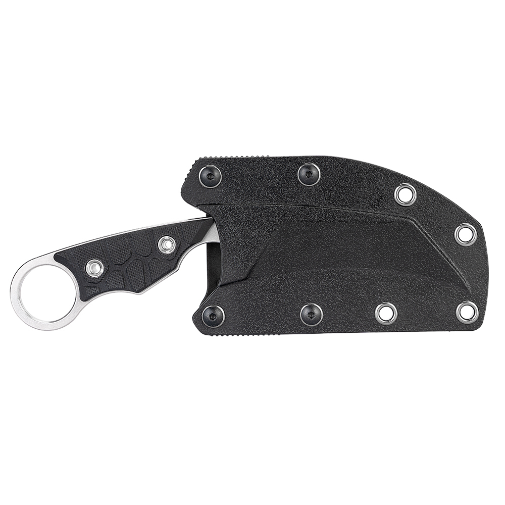 Ножны дополнены креплением к ремню, которое вращается на 360°, что позволяет свободно регулировать положение ножен на ремне. ABS-пластик сохраняет форму и надежно защищает нож от физического износа.