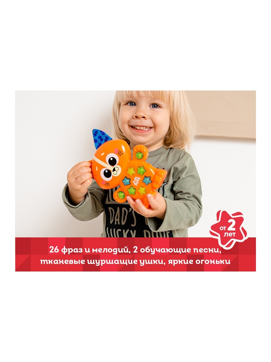 Нажимая на кнопки, юные исследователи смогут погрузиться в увлекательный мир знаний. Эта игрушка предлагает 26 фраз и мелодий, которые не только развлекут, но и познакомят с основами окружающего мира. Забавные стихи о зверушках и познавательные мелодии развивают музыкальные способности, а также логическое мышление. Две обучающие песенки помогут закрепить полученные знания в игровой форме.