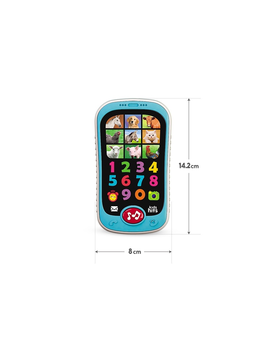 Обучающий телефон Kids Hits Смартфончик Ферма — это идеальный компаньон для вашего малыша, который только начинает свое увлекательное путешествие в мир знаний! С его помощью ваш ребенок сможет познакомиться с яркими и разнообразными цветами, научиться считать до 9, а также погрузиться в волшебный мир животных фермы.