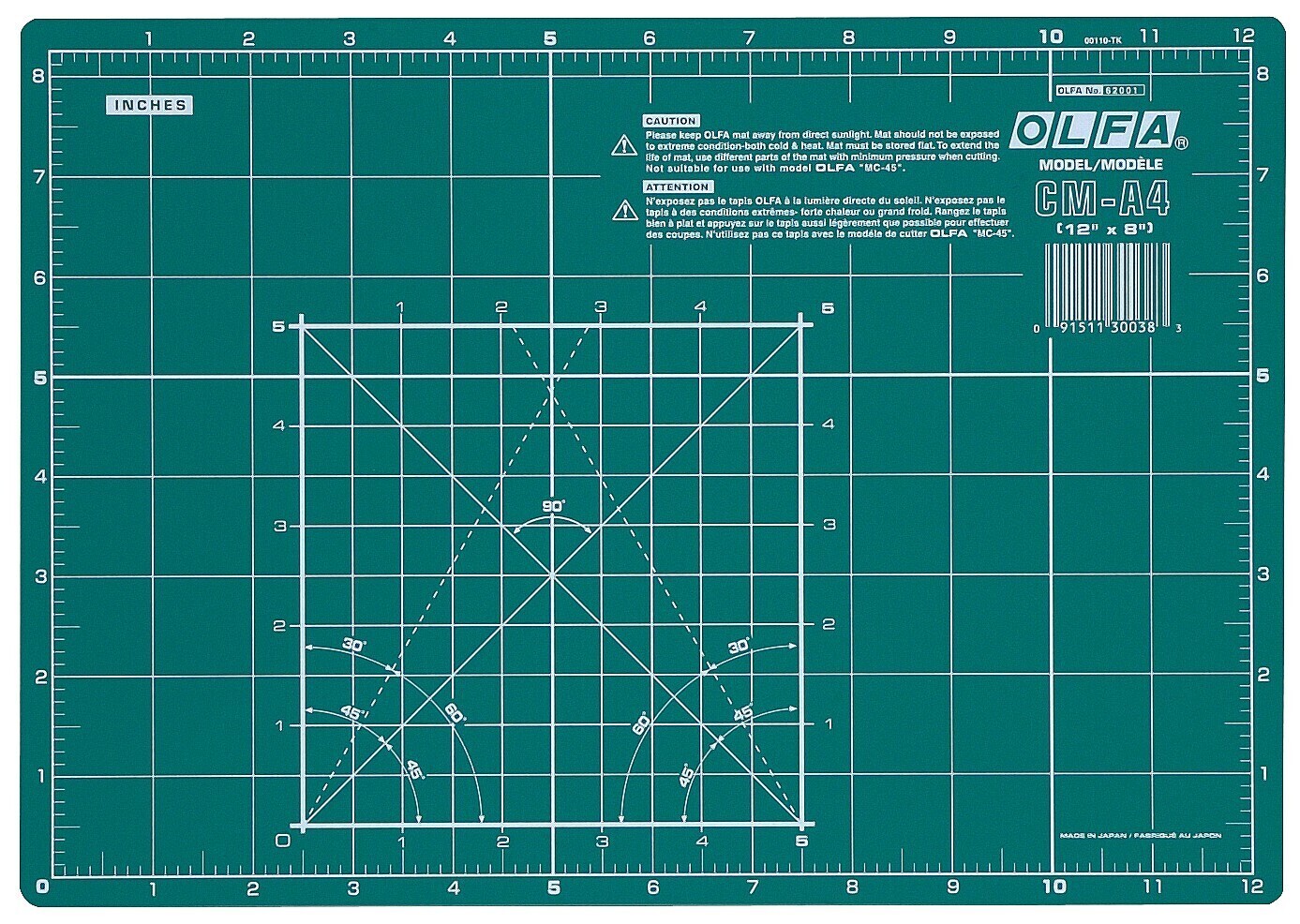 Универсальный двусторонний коврик OLFA CM-A4 — отличное решение для повышения эффективности реза. Приспособление имеет метрическую сетку с одной стороны и дюймовую с другой для удобства в работе. Предназначен для использования со стандартными, художественными, дисковыми и специальными ножами OLFA. Коврик необходимо хранить на ровной поверхности для предотвращения деформации.
