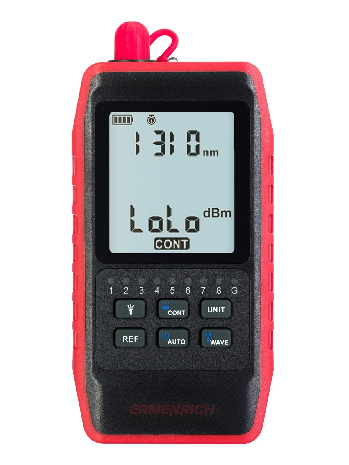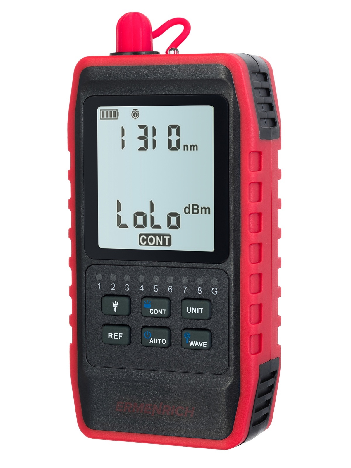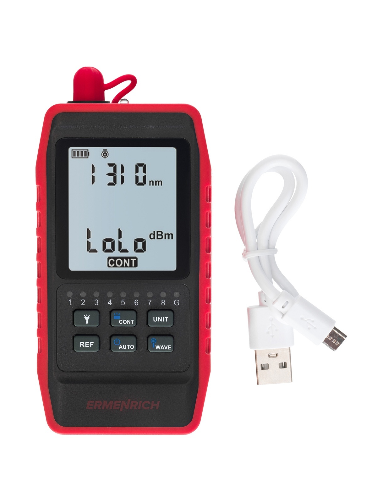 Мультиметр Ermenrich NetGeeks NU20 будет незаменимым инструментом для инженеров оптико-волоконных линий связи (ВОЛС), монтажников телекоммуникационного оборудования, системных администраторов. Прибор работает на 6 длинах волн: 850, 980, 1310, 1490, 1550, 1625 нм. Мощность измеряется в диапазоне от -60 до +8 дБм. Полезная функция в этой модели - тестирование сетевого кабеля для обнаружения обрывов и повреждений. Доступно три интерфейса подключения: FC, SC и ST. Коннектор закрывается пластиковым колпачком, чтобы в него не попадали пыль и вода.