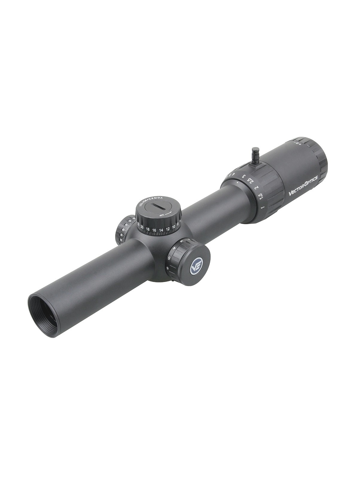 Оптический прицел Vector Optics Constantine 1-10x24 - новая модель с увеличенным диапазоном увеличения предназначена для загонной охоты. Благодаря использованию оптики со сверхнизкой дисперсией и полного просветляющего покрытия достигнута максимальная четкость картинки с минимальными значениями искажения. Светопропускание более 90%. Изображение от края до края без «тоннельного эффекта» вокруг изображения. 10-ти кратное увеличение. Прицельная сетка - Tactical Dot MOA во второй фокальной плоскости, с подсветкой точки и полукруга. Сетка гравирована на стекле, не масштабируется с изменением кратности. Кольцо регулировки кратности оборудовано рычагом-упором, с помощью которого можно вести настройку одним пальцем. При необходимости упор легко откручивается Широкое поле зрения позволяет целиться обеими глазами. Узел поправок оснащен барабанчиками с закрывающимися крышками. Удобная, боковая регулировка подсветки. Окуляр с быстрой фокусировкой. В комплекте с прицелом поставляются защитные крышки. Прицел держит сильную отдачу и рекомендован к установке на огнестрельное оружие до калибра 338 Lapua Magnum включительно. Особенности: Оптика с полным просветлением, без «тоннельного эффекта». Большой вынос выходного зрачка — до 95 мм. Монолитный алюминиевый корпус, посадочный диаметр 30 мм. Реальное 1х увеличение позволяет целится двумя глазами. Закрытые пристрелочные барабанчики, цена деления — 1/2MOA. Заводская отстройка от параллакса на 100 яродов (91,4 метров). Гравированная прицельная метка Tactical Dot MOA, II фокальная плоскость. Красная подсветка центральной точки, 11 уровней яркости. Ударная стойкость на оружии — калибр .338 Lapua Magnum включительно. Водонепроницаемость (до 1 м), заполнение сухим азотом. Прицельная сетка:Размер: Технические характеристики Диаметр объектива 24 мм Увеличение 1-10 x Прицельная сетка Tactical Dot MOA Крепление Кольца 30 мм Фокальная плоскость Вторая (SFP) Диаметр выходного зрачка 10.0-3.0 мм Поле зрения 113.9.6-11.5 футов на 100 ярдов Удаление выходного зрачка 95 мм Вес 530 г Материал Алюминий 6061 T6 Длина 277 мм Подсветка сетки Да, 11 уровней яркости Питание CR2032 Тип барабанов Закрытые Шаг ввода поправок 1/2 MOA Диапазон ввода поправок 120 MOA Отстройка от параллакса Заводская 100 ярдов Покрытие линз Многослойное просветление Заполнение азотом Да Покрытие Матовое анодированное