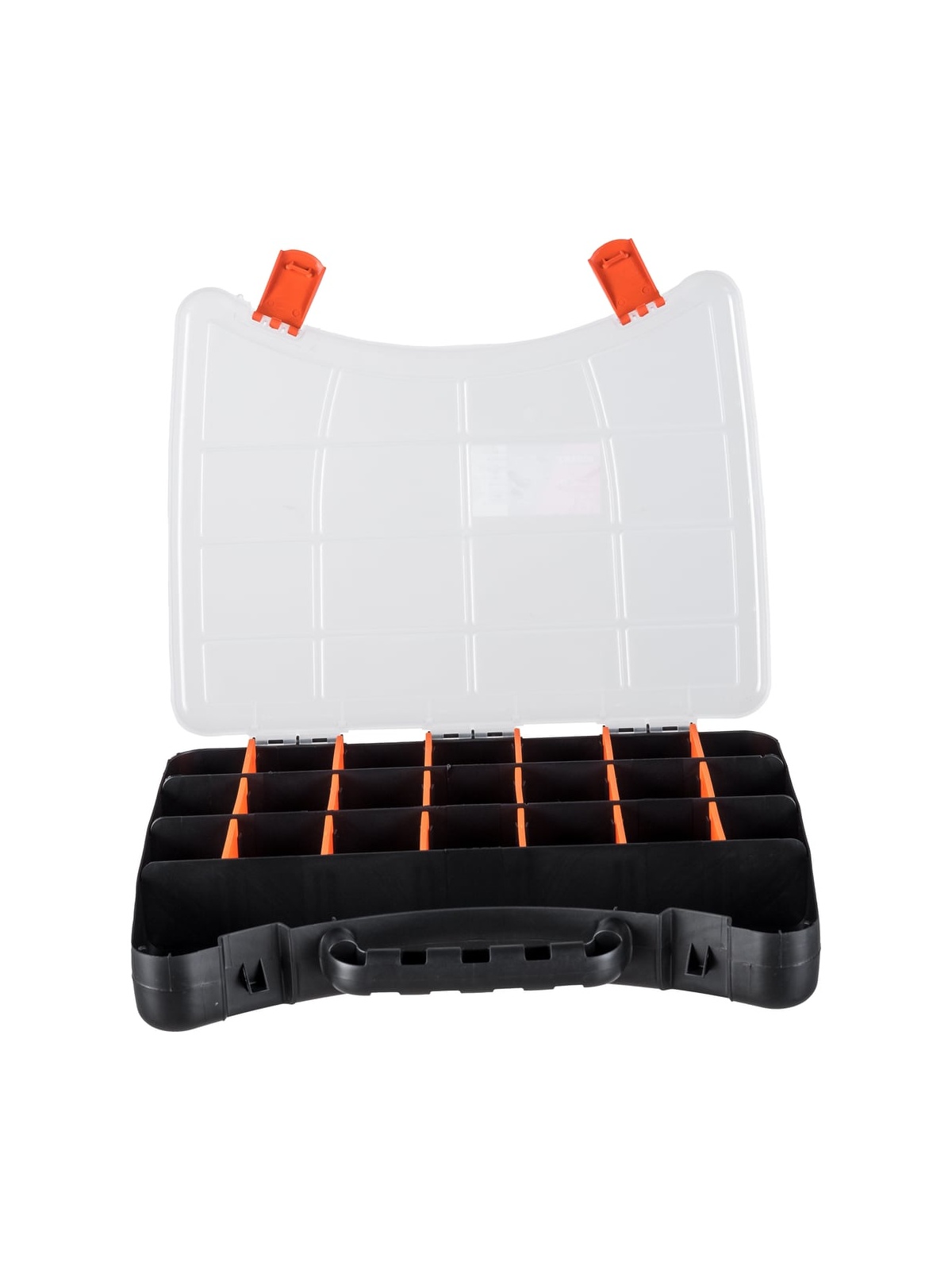 Органайзер для крепежа 12" Gigant GR-12 удобно использовать для транспортировки и хранения мелочей и метизов. Выполнен из прочного пластика, поэтому прослужит долгое время. Оснащен прозрачной крышкой - для удобного визуального осмотра содержимого. Надежно закрывается крышкой во избежание потери крепежа. Имеет 14 отделений разного размера для упорядоченного хранения. Продукция представлена профессиональными и бытовыми инструментами, имеет доступную цену и высокое качество. При изготовлении товаров Gigant используется современное оборудование и прочные материалы. Производство осуществляется на современных предприятиях России и Азии. Тестирование товаров осуществляется в два этапа, каждая партия инструментов проходит проверку на соответствие стандартам и заявленным техническим характеристикам. Это является залогом качества и надежности готового продукта. Продукция представлена широкой линейкой инструментов. У нас можно приобрести ручной инструмент, строительный, садовый, сантехнический, климатический, крепежный, автогаражный, а также станки, расходные материалы и многое другое.