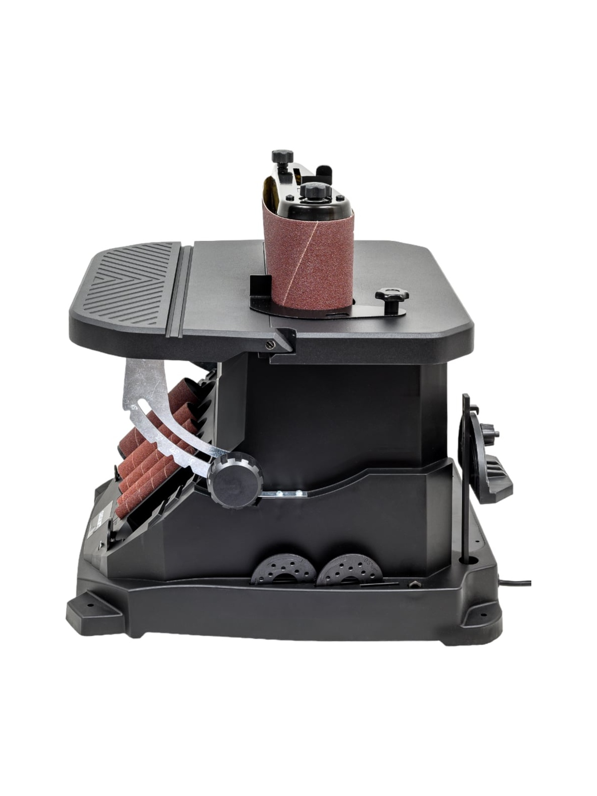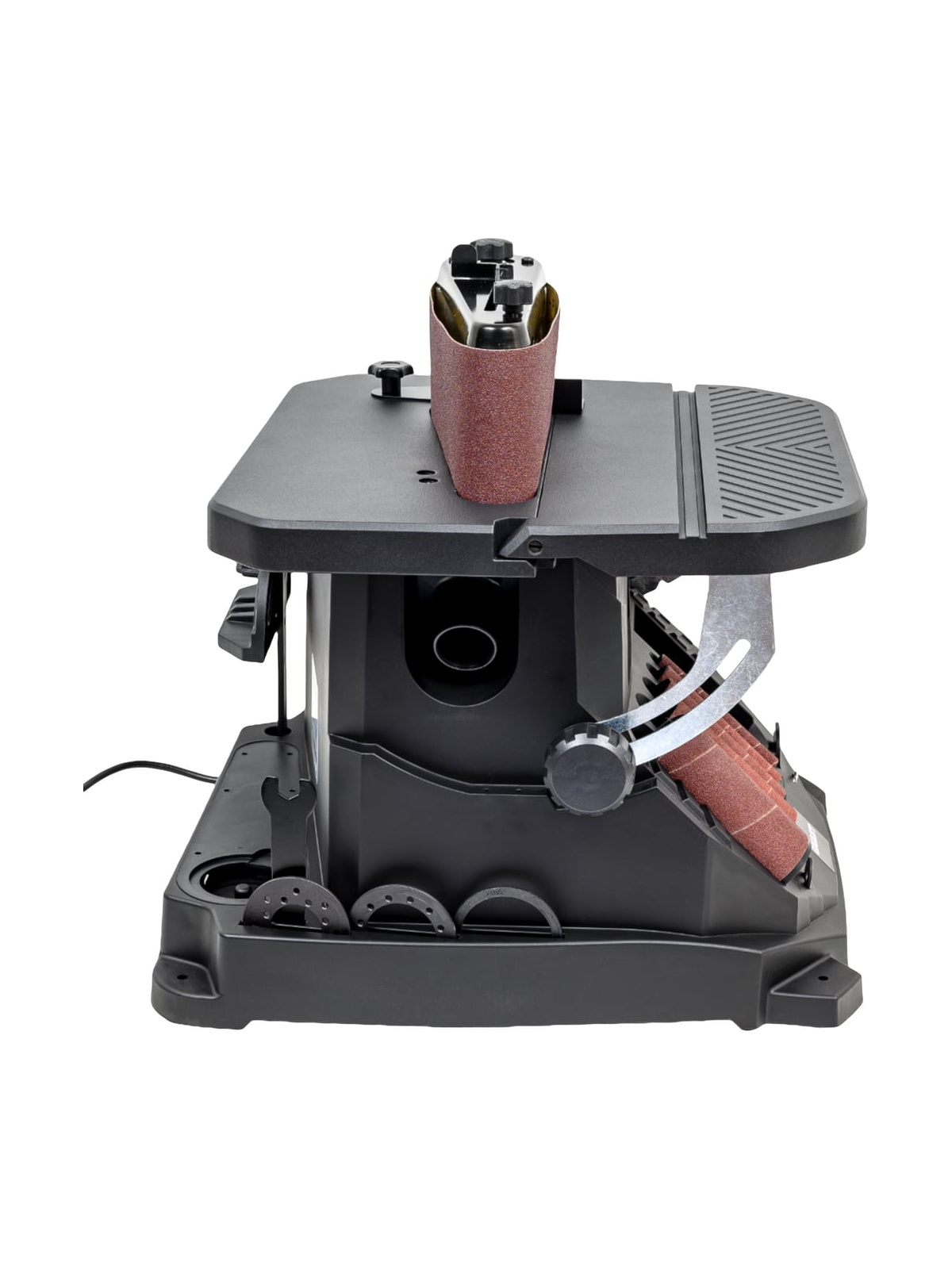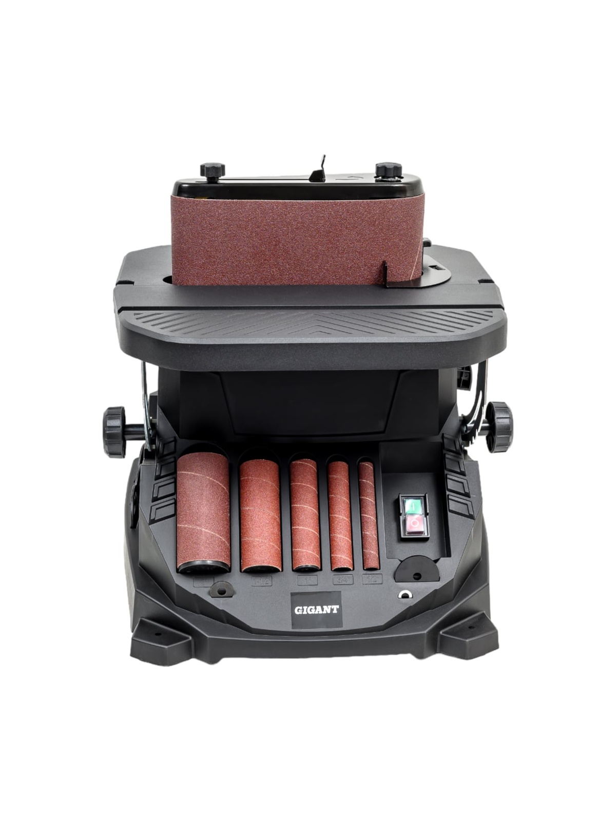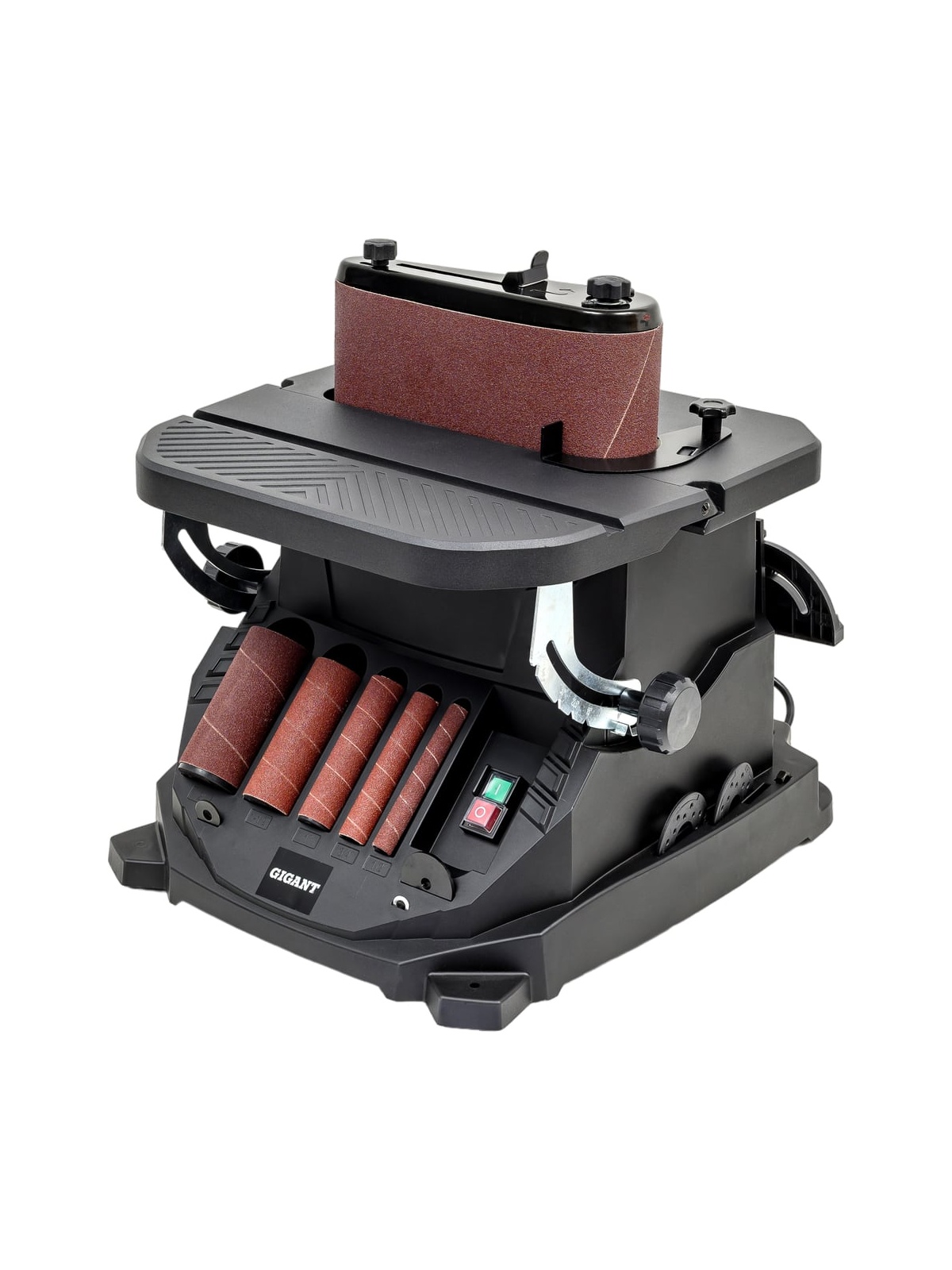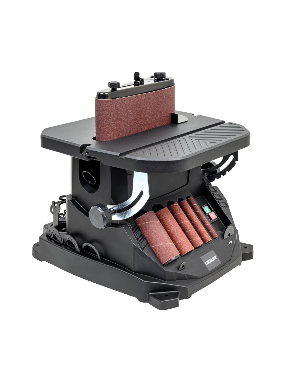 Осцилляционный шпиндельно-ленточный шлифовальный станок Gigant OSBSJ-450 применяется в штучном и мелкосерийном деревообрабатывающем производстве. Станок предназначен для окончательной обработки шлифованием криволинейных и прямолинейных поверхностей, кромок и фасок деревянных заготовок путем вращательно-колебательных движений абразивной ленты или втулки. В зависимости от кривизны обрабатываемой поверхности подбирается диаметр абразивной втулки (13, 19, 26, 38, 51 мм). Высокая эффективность при использовании оснастки с такой рабочей поверхностью достигается за счет осцилляции – вертикального перемещения вала – оно увеличивает линейную скорость абразива и предотвращает возникновение продольных царапин из-за дефектов оснастки. Ленточный узел имеет два обводных ролика разного диаметра, вокруг которых можно работать с вогнутыми поверхностями и прямой участок с металлической подложкой для плоских деталей из дерева. Движение ленты также происходит с осцилляцией, что повышает производительность и качество шлифования. Небольшие габариты и вес обеспечивают легкость размещения станка, а также рациональное хранение и транспортировку. В основании станка расположены ложементы для хранения всей оснастки.