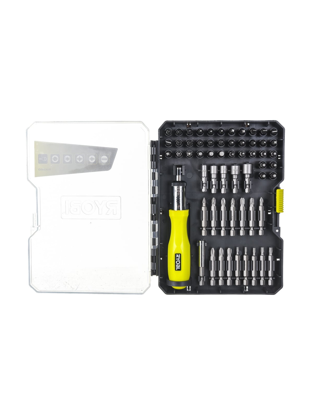 Набор Ryobi RAK59SD 5132002251 включает в себя разнообразную оснастку для выполнения различных видов ремонтных и сборочных работ. Данный комплект состоит из торцевых головок, бит длинной 25 мм, бит длинной 50 мм, магнитного держателя и ручной отвертки с трещоточным механизмом. Набор удобно хранить и транспортировать в прилагающемся пластиковом кейсе.