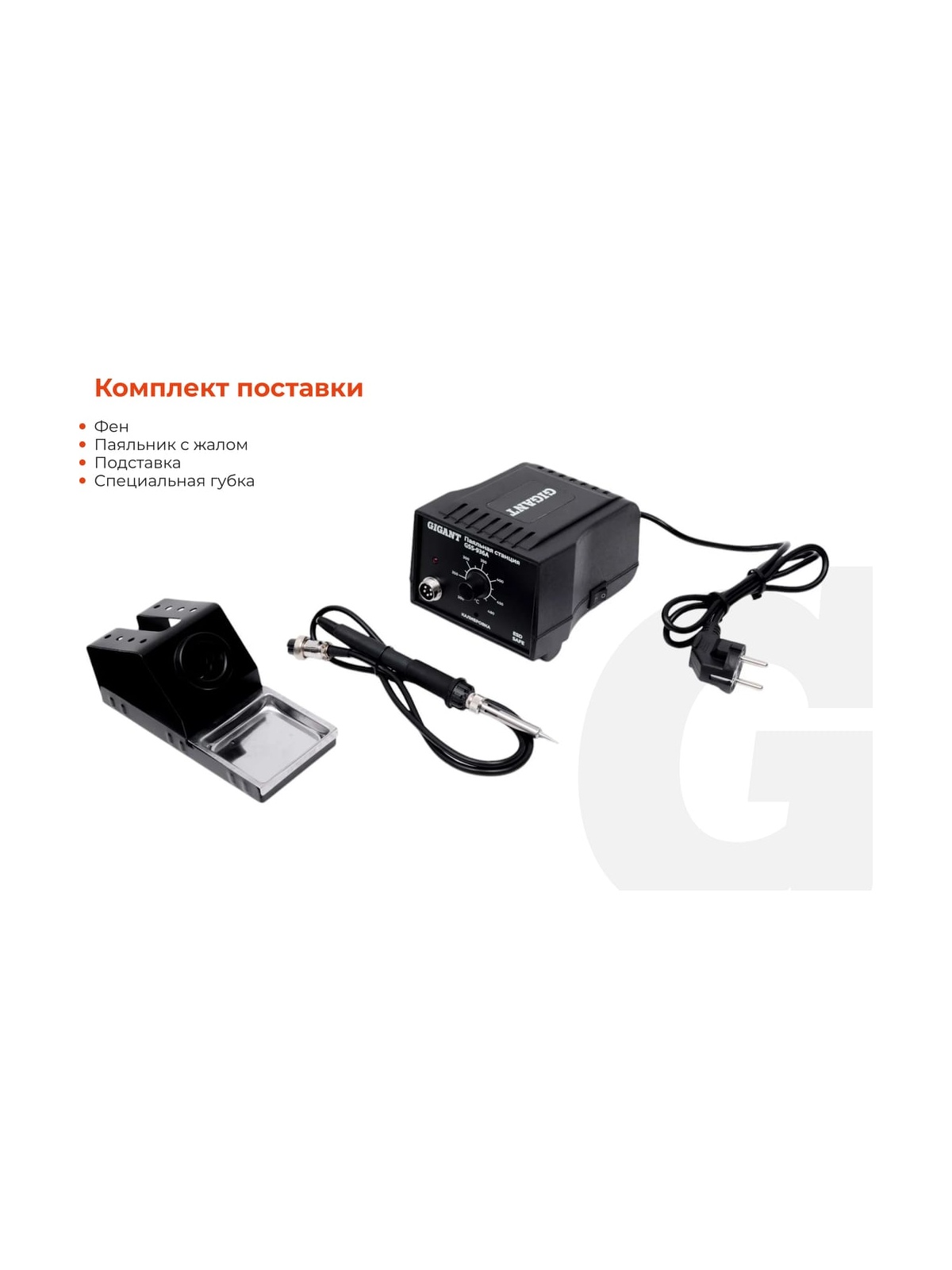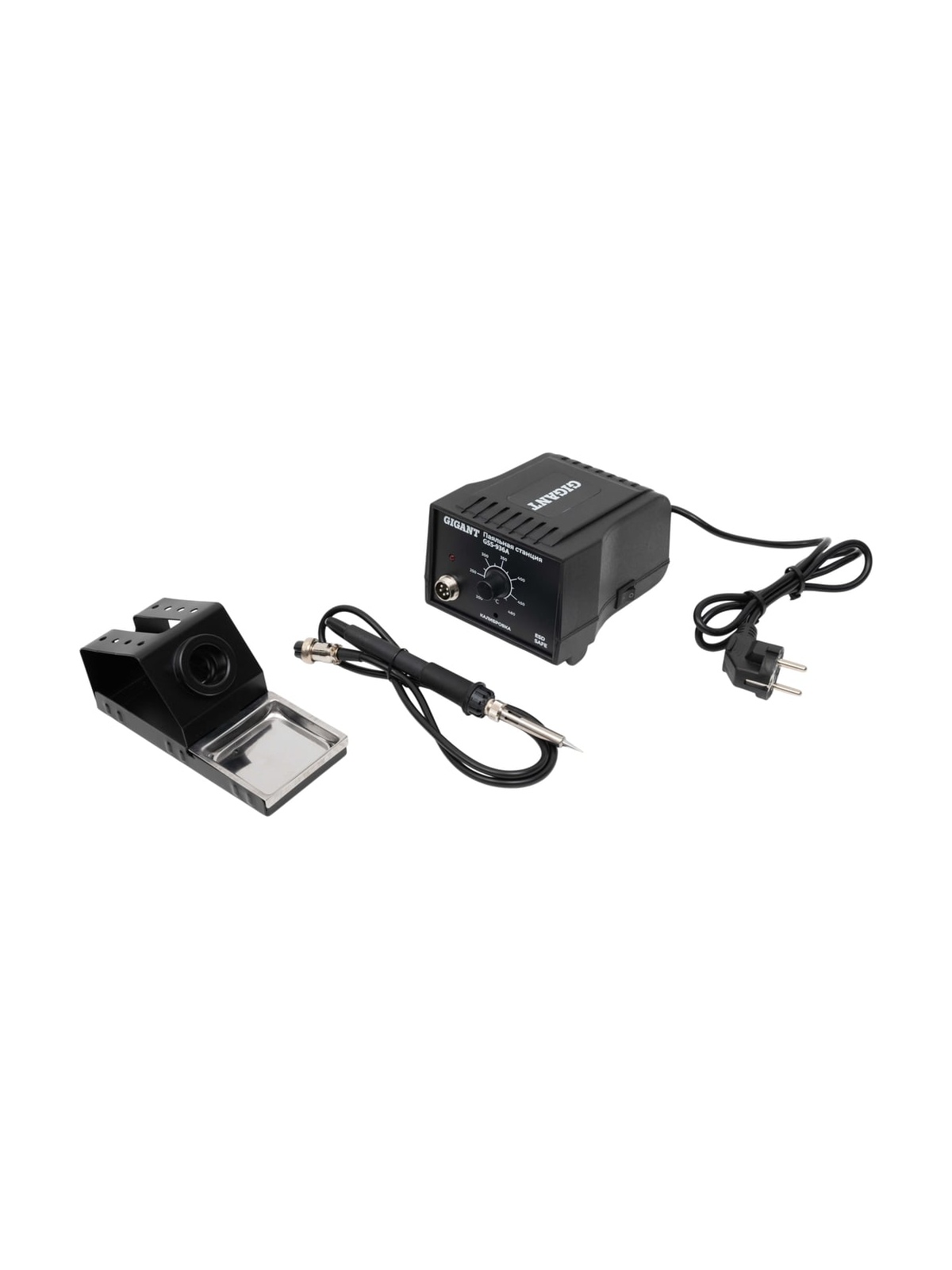 Паяльная станция Gigant 50Вт GSS-936A обеспечивает стабильный и быстрый нагрев, обладает регулировкой температуры, что позволяет использовать его с различными типами паяльных жал. Станция подойдет как радиолюбителям, для ремонта и изготовления электронного оборудования, так и профессионалам. Паяльная станция поддерживает точный контроль температуры с минимальной погрешностью. Диапазон температур для пайки: от 200 до 500°C. Настройка температуры происходит с помощью аналогового регулятора. Наличие индикатора нагрева позволяет легко отслеживать состояние станции. В комплект поставки входит всё необходимое для работы: подставка со специальной губкой, сам паяльник с жалом. Использование качественных материалов, таких как сталь, нержавеющая сталь, керамика и термостойкие пластики, обеспечивает долгий срок службы оборудования. Паяльные станции Gigant проходят специальное тестирование на старение, что гарантирует ее надежность в эксплуатации. Небольшие габариты паяльной станции (150x115x91 мм) и легкий вес (1.38 кг) позволяют легко её переносить и хранить. Длина кабеля паяльника - 1.1 м достаточна для удобной работы. Дополнительные характеристики: Степень защиты: IP20 Рабочий ток: 0.054 А (без нагрузки), 0.195 А (под нагрузкой) Точное поддержание температуры ±1С° Напряжение питания: 220-240V AC.
