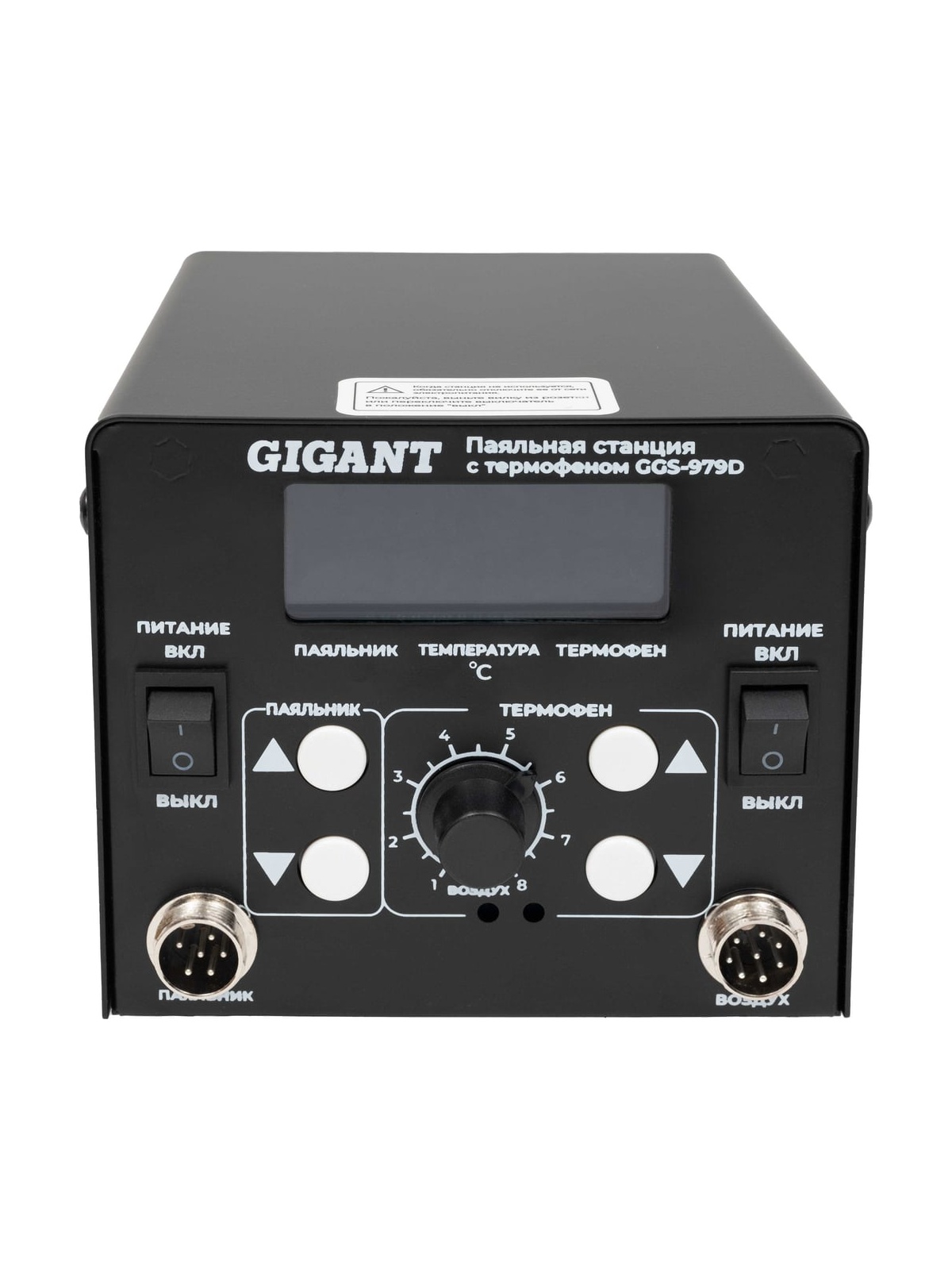 Паяльная станция Gigant с термофеном 650Вт GGS-979D предназначена профессиональных работ по демонтажу и пайки различных компонентов, включая SOIC, PLCC, QFP, BGA и т.д. Это надежный, удобный и производительный инструмент для профессионалов и любителей в области электроники. Высокая точность и стабильность температуры: Паяльная станция поддерживает точный контроль температуры с минимальной погрешностью. Диапазон температур для пайки: от 200 до 480 °C, а для фена от 100 до 500 °C. Функция памяти температурных настроек позволяет сохранять до 3 наборов настроек паяльника и фена, что упрощает работу с различными материалами. Специальный датчик точно поддерживает выбранную температуру. Надежность и долговечность: Использование качественных материалов, таких как медь, сталь, нержавеющая сталь, керамика и термостойкие пластики, обеспечивает долгий срок службы оборудования. Паяльные станции Gigant проходят специальное тестирование на старение, что гарантирует ее надежность в эксплуатации. Удобство и эргономика: Эргономичная конструкция ручки паяльника и фена обеспечивает комфортную работу. Наличие трех сменных насадок для фена с разными диаметрами (4.5 мм, 7.3 мм, 11.3 мм) позволяет адаптировать станцию под различные задачи. Функция сна для фена автоматически активируется при установке его на подставку, что повышает безопасность и экономит энергию. Простота управления: Интуитивно понятная панель управления с LCD-дисплеем, на котором отображаются текущие параметры (температура пайки, температура воздуха, скорость воздушного потока). Регулировка этих параметров осуществляется с помощью специальных кнопок. Компактность и мобильность: Небольшие габариты паяльной станции (173x131x116 мм) и легкий вес (1.91 кг) позволяют легко её переносить и хранить. Длина кабелей (паяльник - 1.1 м, фен - 1.3 м) обеспечивает удобство работы на рабочем месте. Продув воздухом после выключения прибора продлевает срок его службы. Дополнительные характеристики: 1 светодиодный дисплей Три сменных наконечника для термофена в комплекте Степень защиты: IP20 Рабочий ток: 0.026 А (без нагрузки), 2.5 А (под нагрузкой) Напряжение питания: 220-240V AC.
