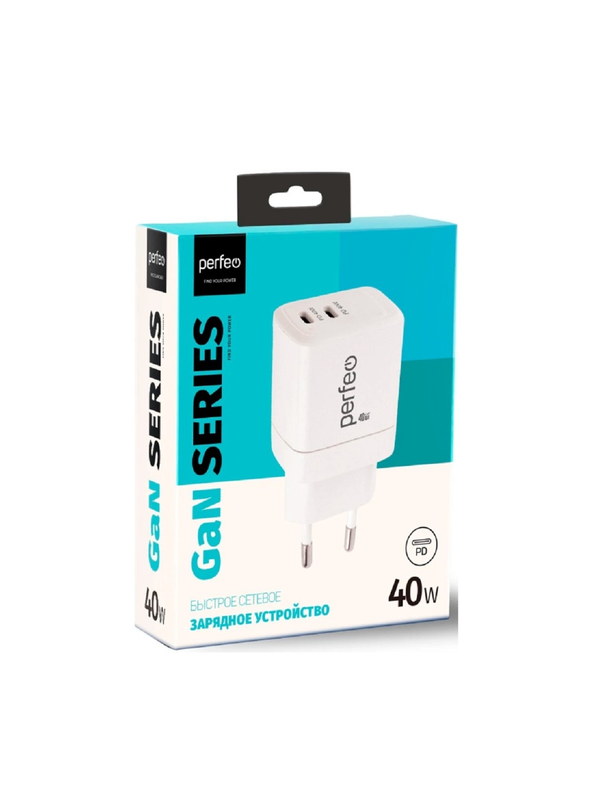 PERFEO Сетевое зарядное устройство с двумя разъемами TYPE-C, GaN, 40W, белый (I4662)
