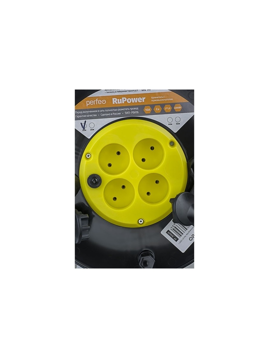 Perfeo удлинитель на катушке без заземления "RU POWER",PF_B4669 (20м 4гн с т/з 10А ПВС 2х1 IP44 (РБК16))