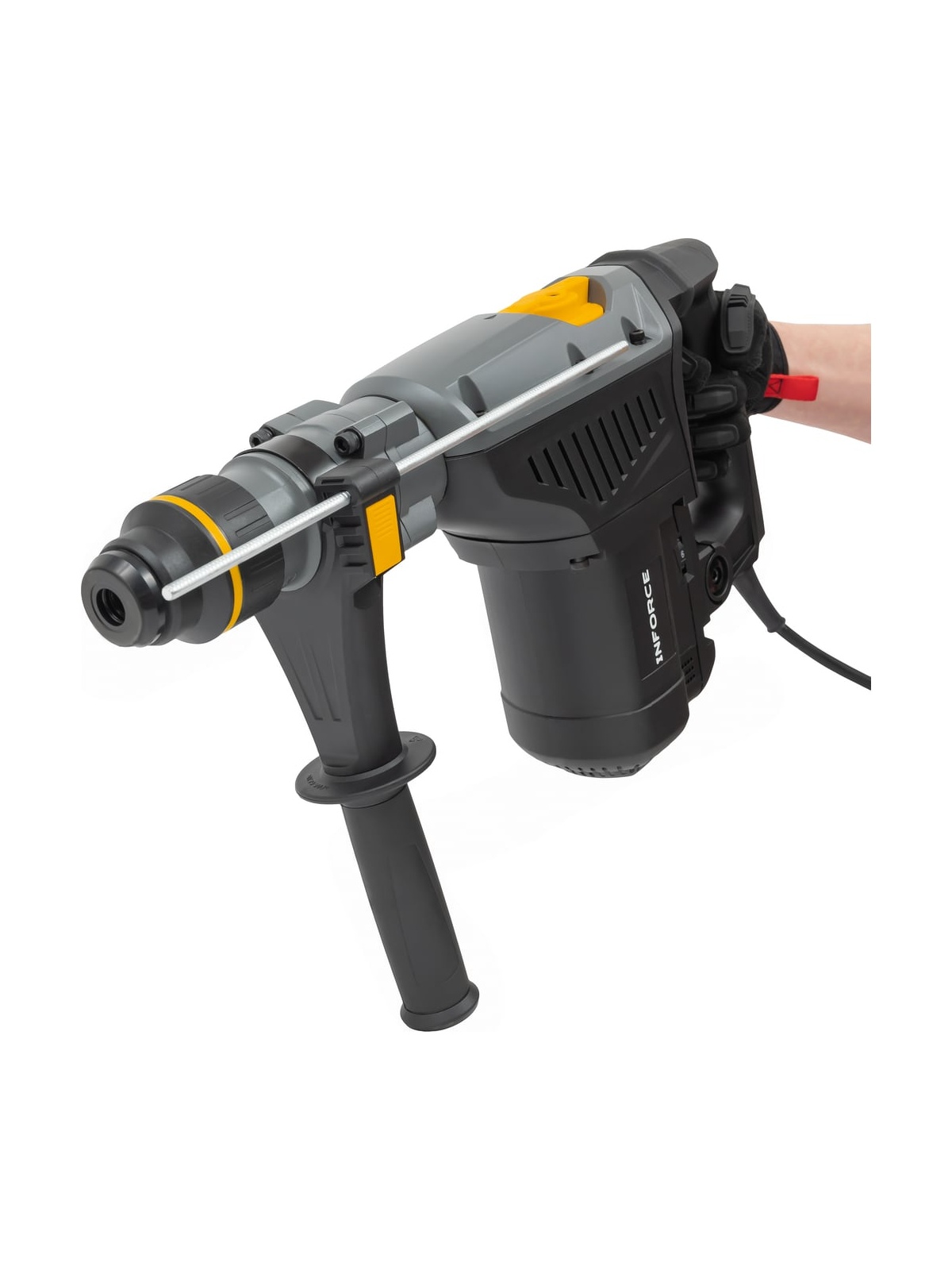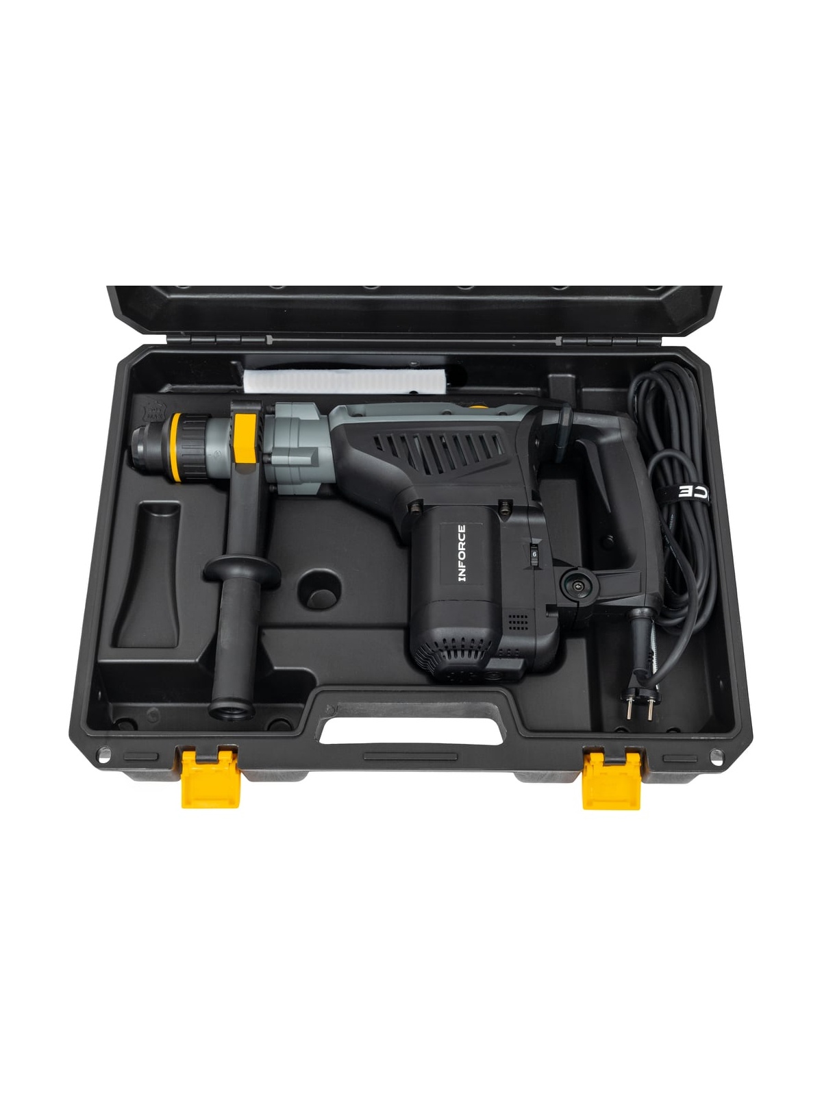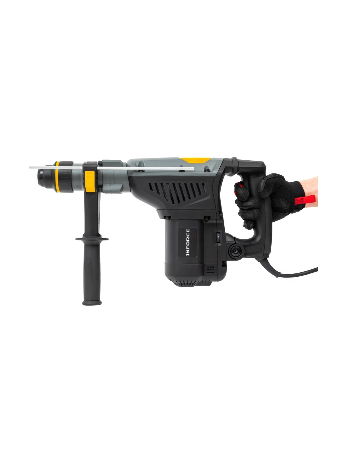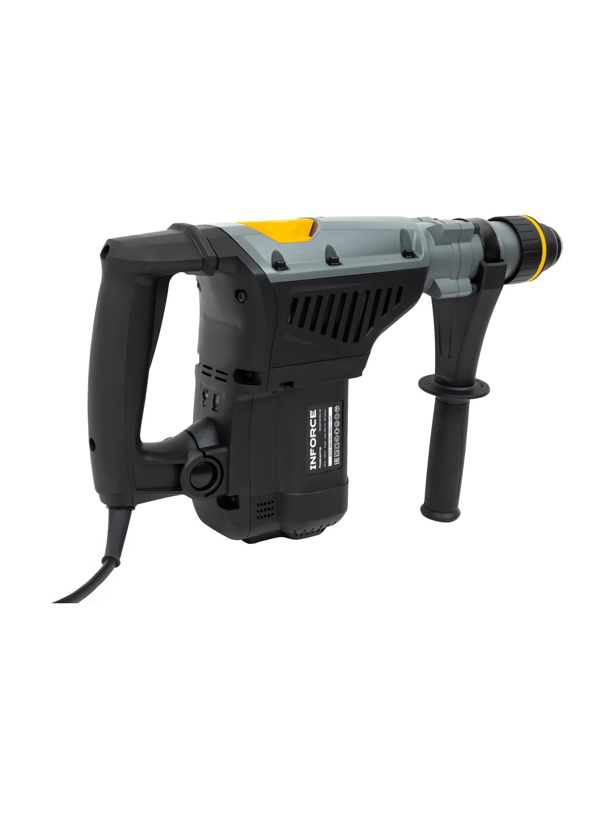 Перфоратор Inforce RH4014CSV-M - это мощный перфоратор с системой виброзащиты для тяжелых работ. SDS-MAX хвостовик, плавный пуск и большая сила удара позволяют работать с бетоном и армированными конструкциями. Функция постоянной скорости (не замедляется и не ускоряется при изменении нагрузки.) Светодиодная индикация необходимости замены угольных щеток и неисправности кабеля питания. Кабель питания длиной 5 метров. Поставляется в ударопрочном пластиковом кейсе для транспортировки и безопасного хранения инструмента и буров. В комплекте смазка для буров и ветошь. Шарнирный (поворотный) ввод кабеля / Кабельный шарнир - снижает нагрузку на кабель предотвращая перегиб и повреждение.