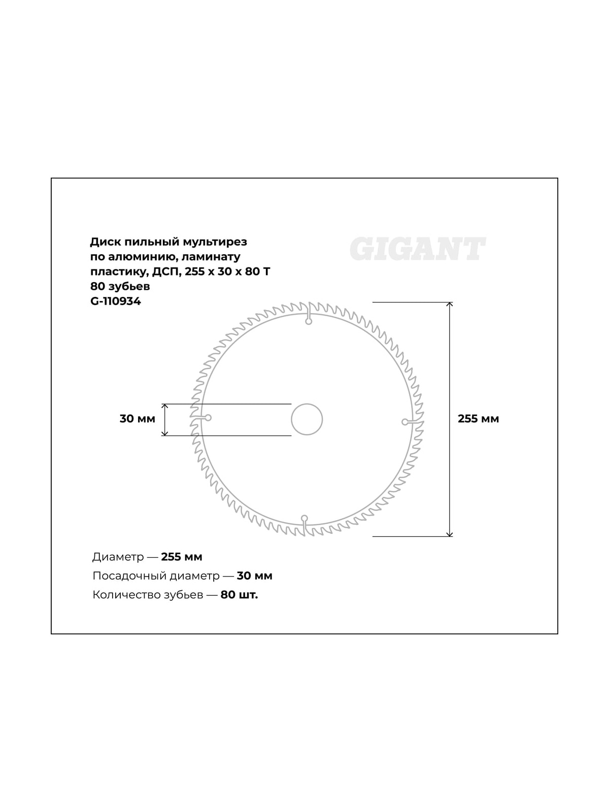 Пильный диск мультирез по алюминию, ламинату, пластику, ДСП 255x30 мм, 80 зубьев Gigant G-110934 используется с циркулярными пилами. Предназначен для пиления пластика, алюминия, ламината, ДСП и др. С помощью диска осуществляется поперечная и продольная обработка заготовок. Универсальный пильный диск удобен в использовании, так как нет необходимости постоянно менять оснастку при обработке различных материалов. Отшлифованные зубья оснащены твердосплавными пластинами (ВК8), за счет чего появляется возможность распиливать даже особо прочные материалы, не теряя при этом качество реза. Твердосплавные зубья диска выполнены в форме трапеции. Заточка зубьев с трех сторон гарантирует эффективную работу.