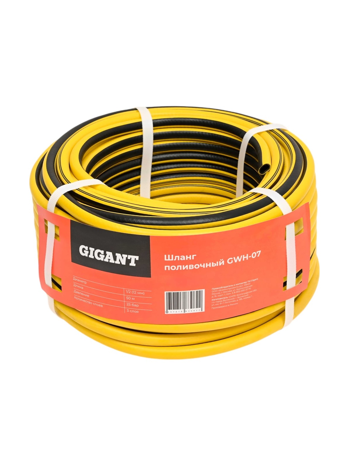 Поливочный шланг Gigant 1/2, 50м, 25 бар, 3 слоя GWH-07 предназначен для подведения воды к месту полива. Он армирован специальным материалом, выдерживающим давление до 25 бар, устойчив к УФ-излучению и температурам до +65 °С. Шланг крепится к крану с помощью штуцера. Штуцер приобретается отдельно. Диаметр 1/2 дюйма.