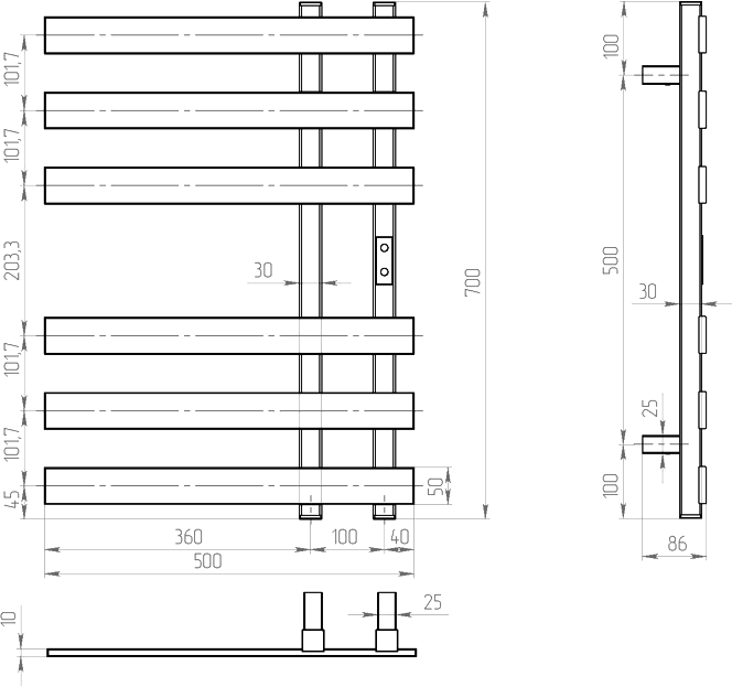 Размеры_полотенцесушители, см - 70x50