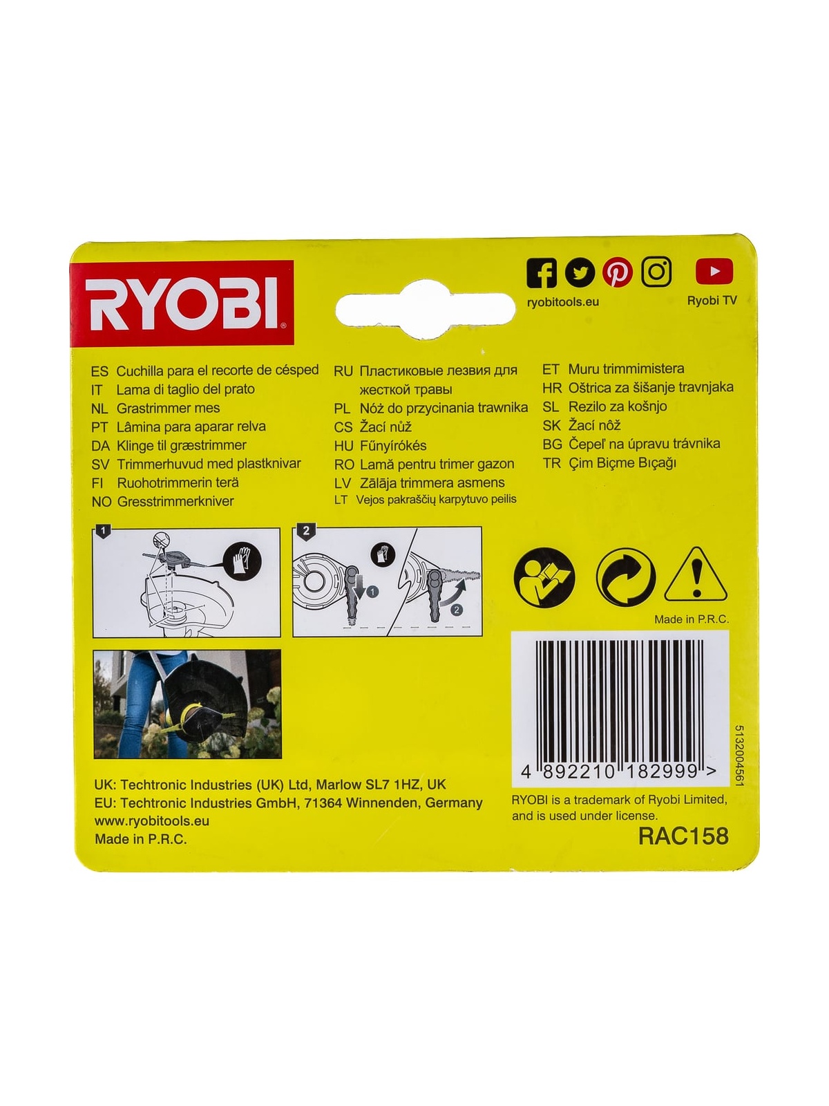 Полотна Ryobi RAC158 5132004561 подходят к триммерам RAC155 и RAC157.