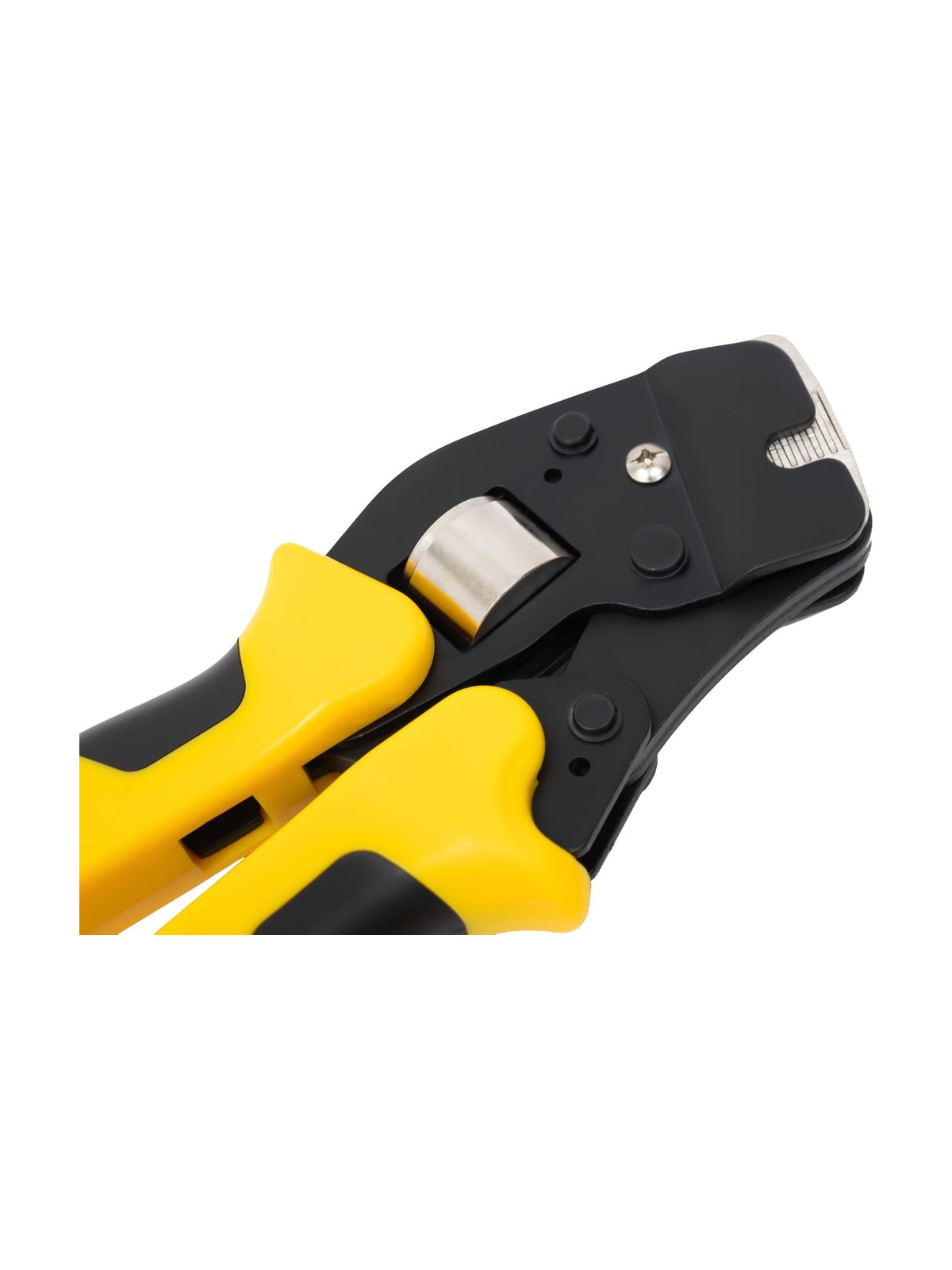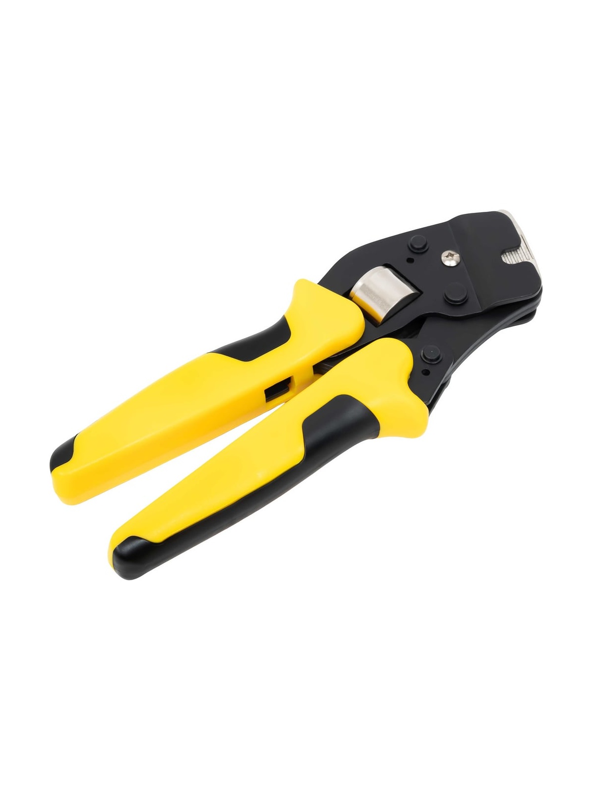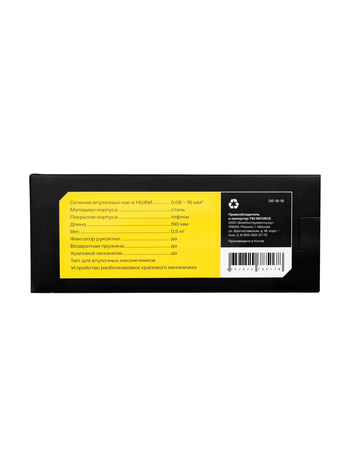 Пресс-клещи Inforce торцевые 0,08 – 16 мм2 06-19-16 оснащены универсальной саморегулирующейся матрицей, которая позволяет работать сразу с 19 размерами наконечников. Предназначены для профессионального использования и выдерживают повышенные нагрузки. Инструмент легко регулируется под конкретный диаметр, имеется переключатель прижимного усилия матрицы. Удобные прорезиненные рукоятки с упорами обеспечивают достаточную передачу усилия. Храповый механизм обеспечивает полный цикл опрессовки, гарантируя правильный обжим наконечников. Есть устройство разблокировки храпового механизма.. Преимущество инструмента заключается в небольшой длине и оптимальном наклоне головки по отношению к рукояткам. Дополнительные характеристики: Материал корпуса: сталь Покрытие корпуса: тефлон Длина: 190 мм Фиксатор рукоятки для удобства транспортировки Возвратная пружина Храповый механизм Устройство разблокировки храпового механизма