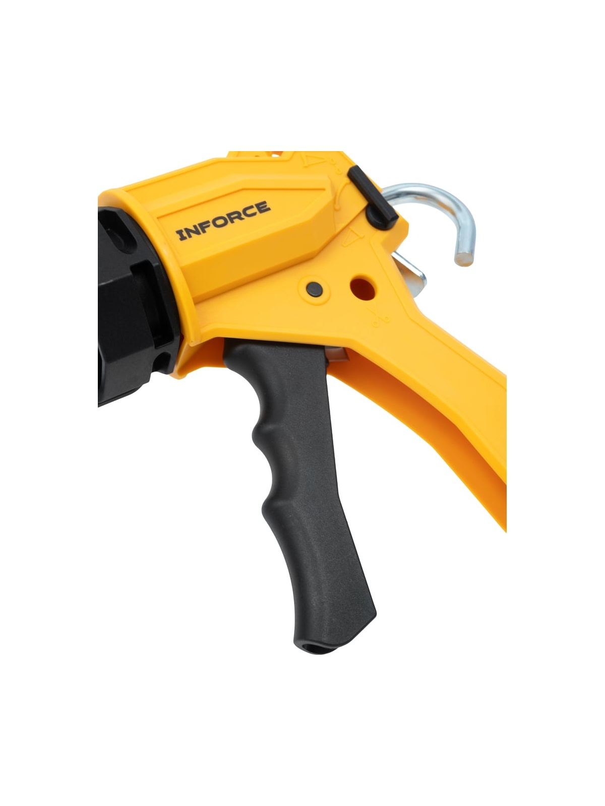 Профессиональный поворотный пистолет для герметика Inforce 01-13-10 представляет собой надежный инструмент для работы с герметиками. Его полузакрытая конструкция обеспечивает удобство и безопасность в использовании. Пистолет оснащен защитой от капель, что позволяет избежать нежелательных подтеков и обеспечивает аккуратность при нанесении герметика. Корпус устройства выполнен из прочного АБС-пластика, что обеспечивает долговечность и устойчивость к повреждениям.